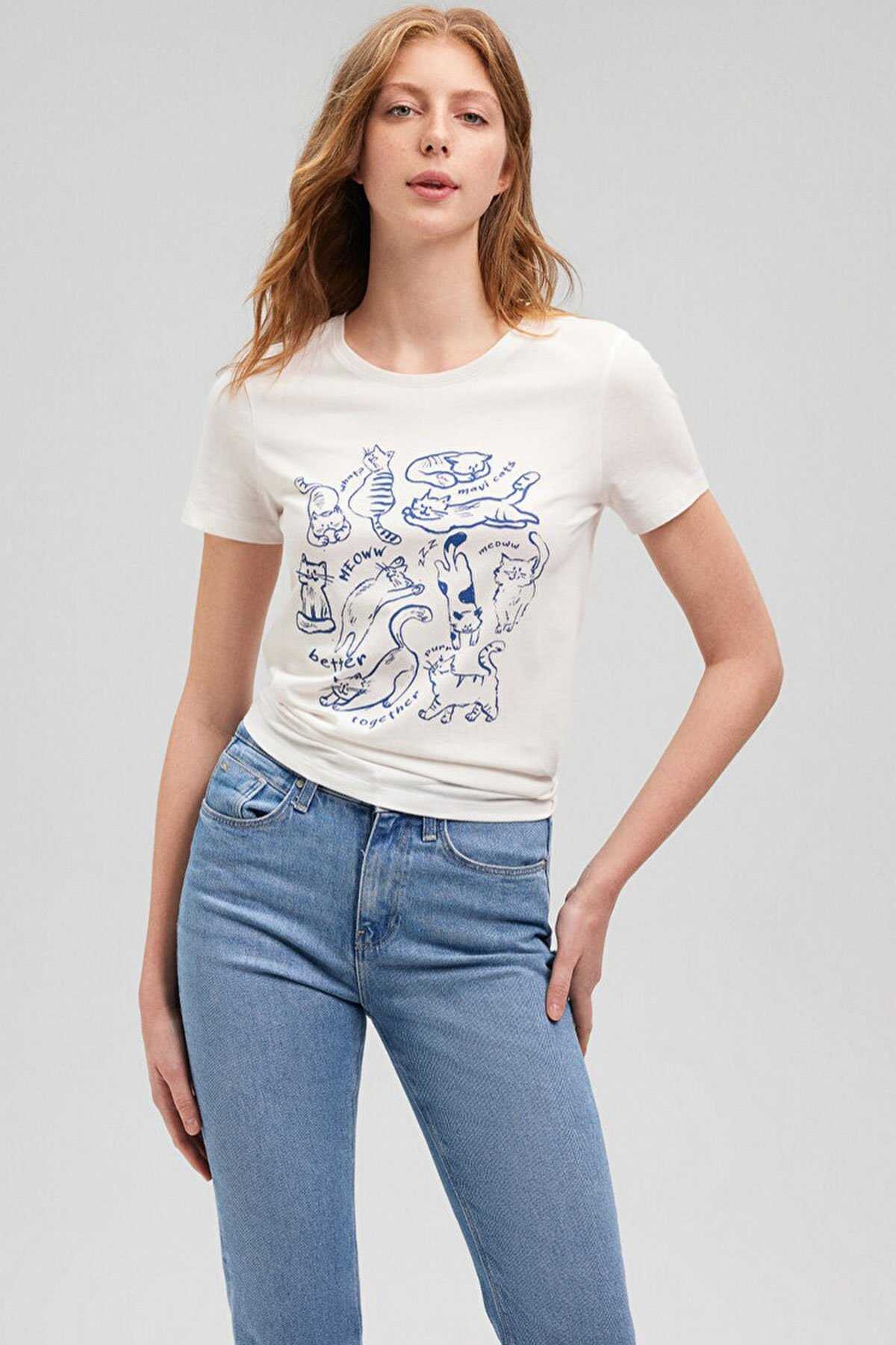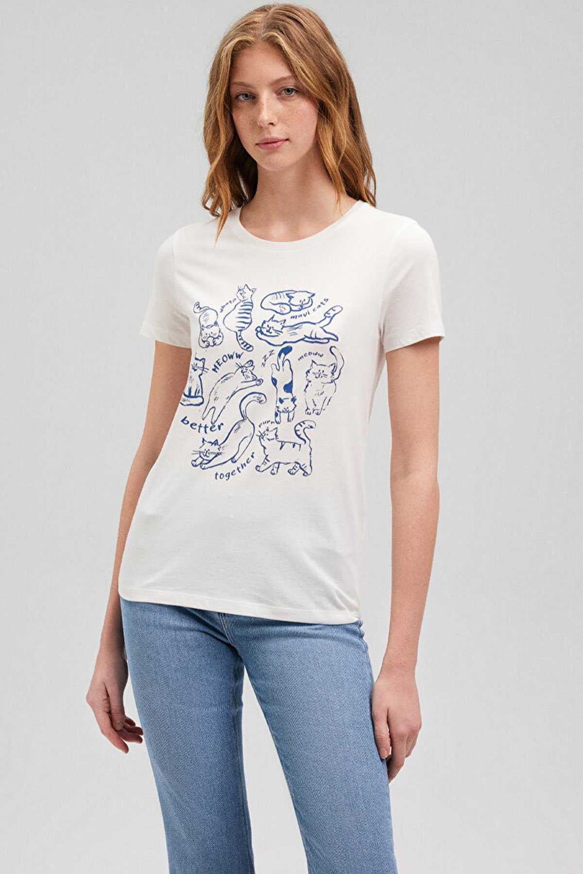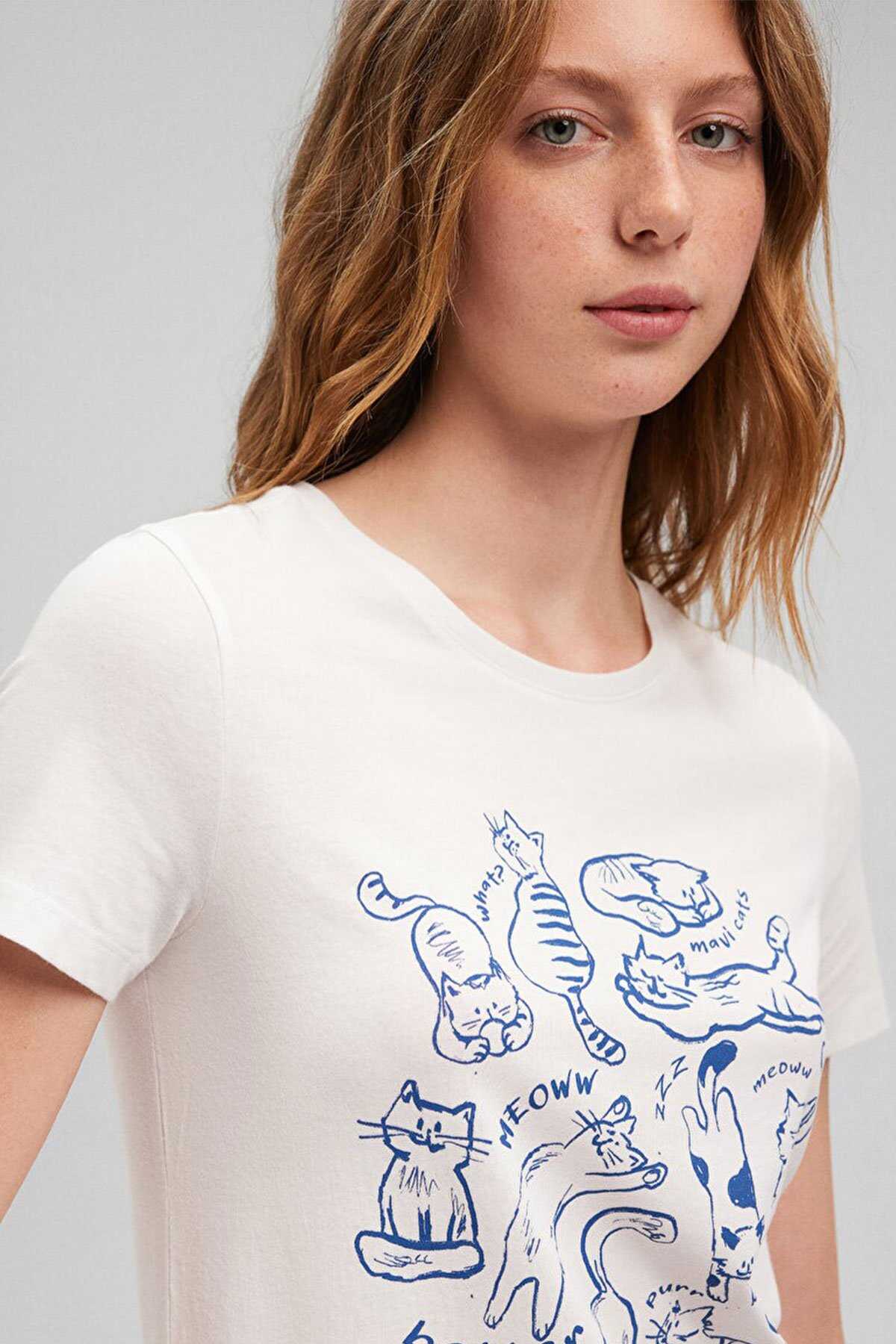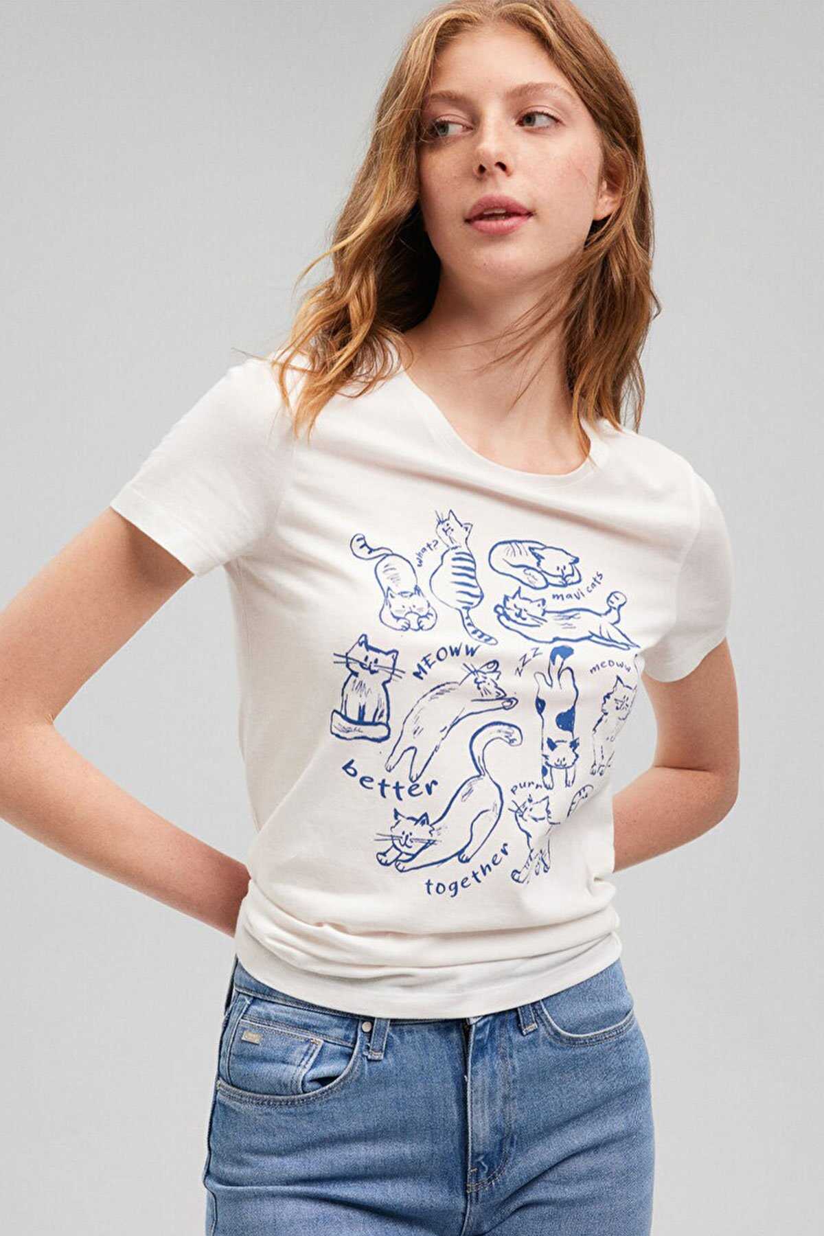 Mavi nin kadın koleksiyonundan Kedi Baskılı Beyaz Tişört.-Ürün Kodu: 1612206-70057-Kumaş Bilgileri-%100 Pamuk-Manken Ölçüleri-Boy: 180 cm Bel: 60 cm Göğüs: 82 cm Kalça: 89 cm
