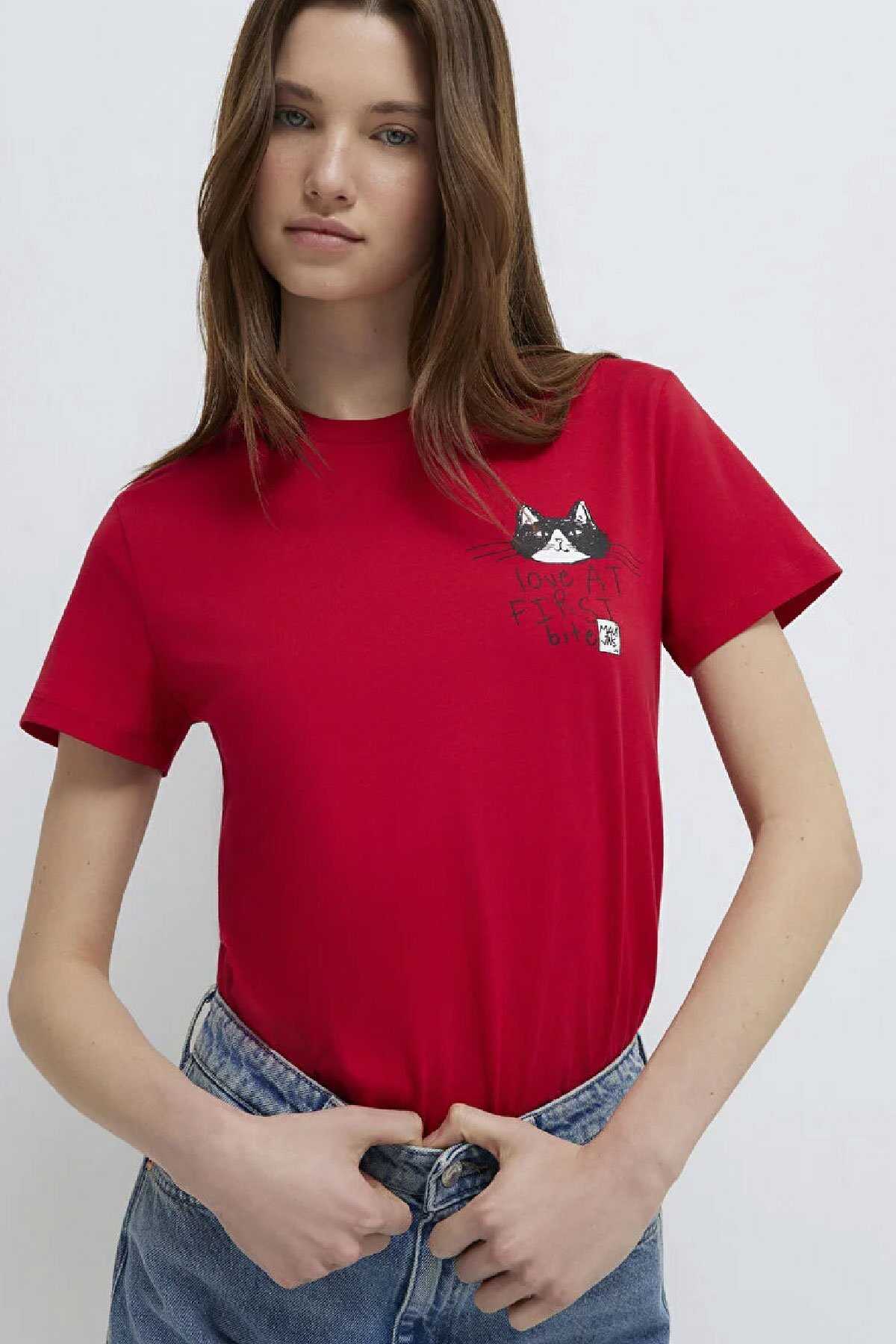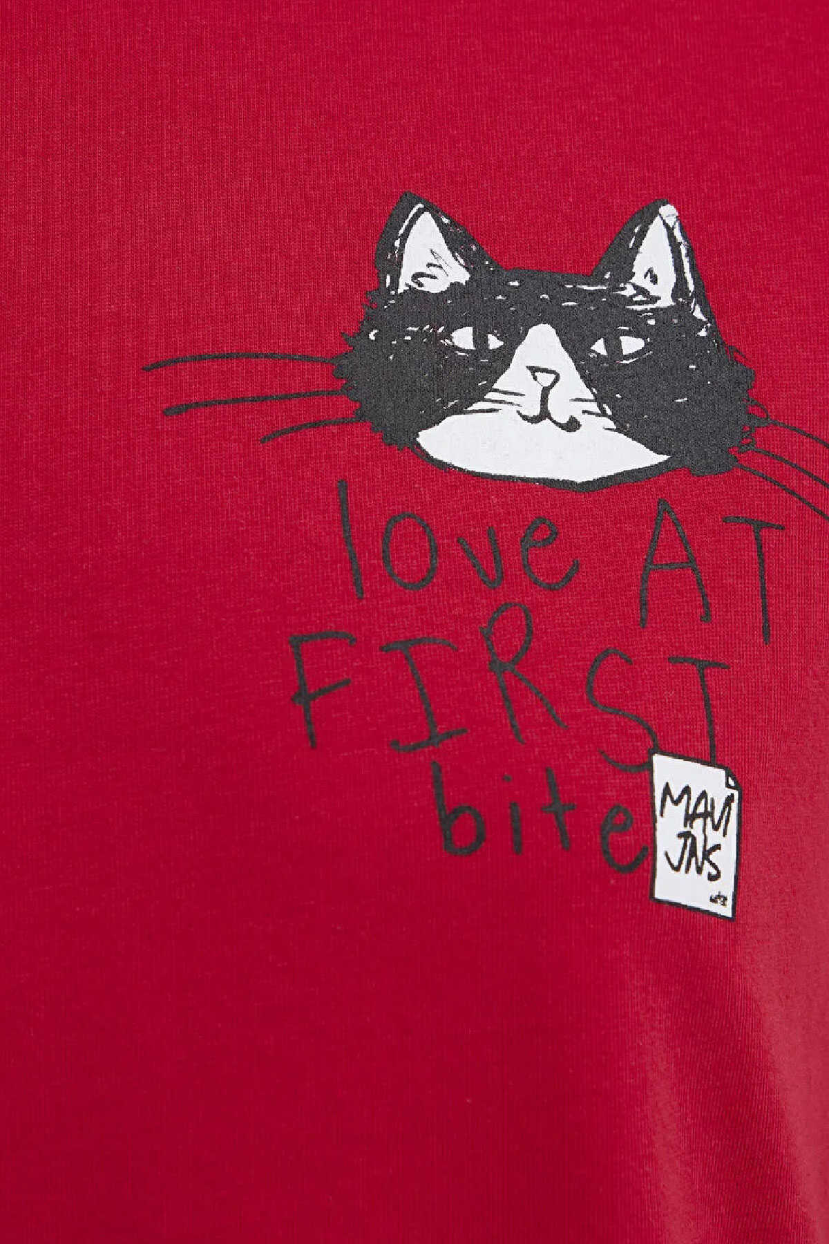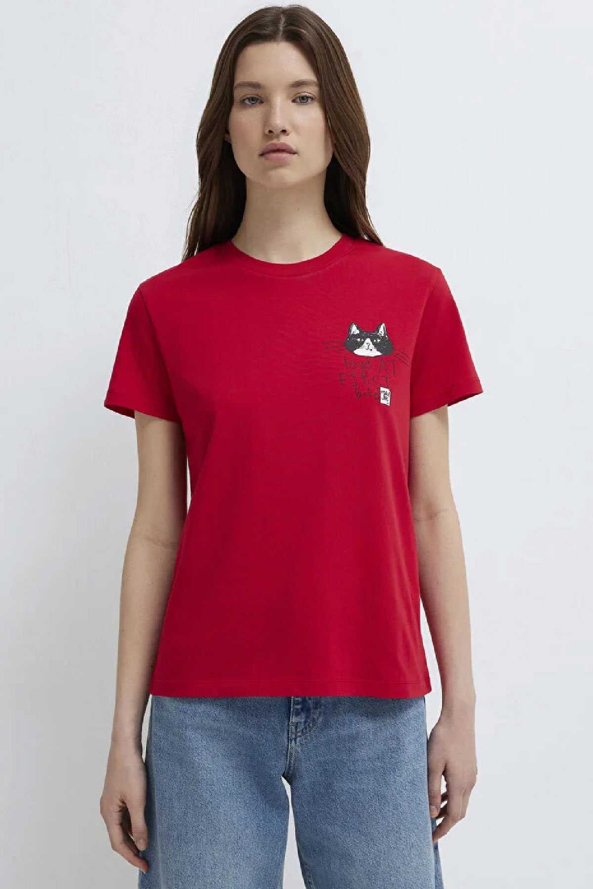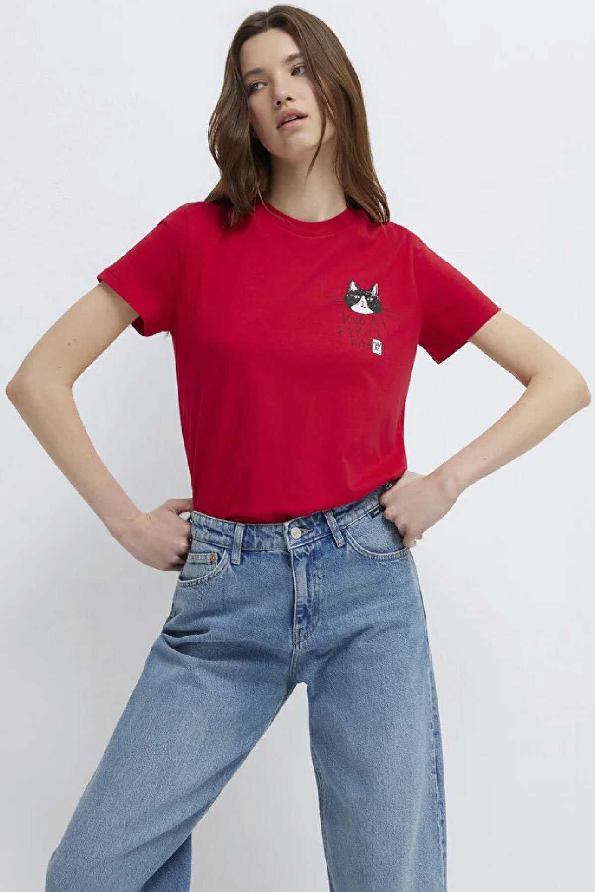 Mavi nin kadın koleksiyonundan Kedi Baskılı Kırmızı Tişört.-Semi Slim Fit Yarı Dar Kesim-%100 Pamuk-Manken Ölçüleri-Jean: Bel: 26 Boy: 34 Üst: S-Boy: 178 cm Bel: 61 cm Göğüs: 81 cm Kalça: 89cm-Ürün Kodu: 1613723-70935-Menşei: Mısır