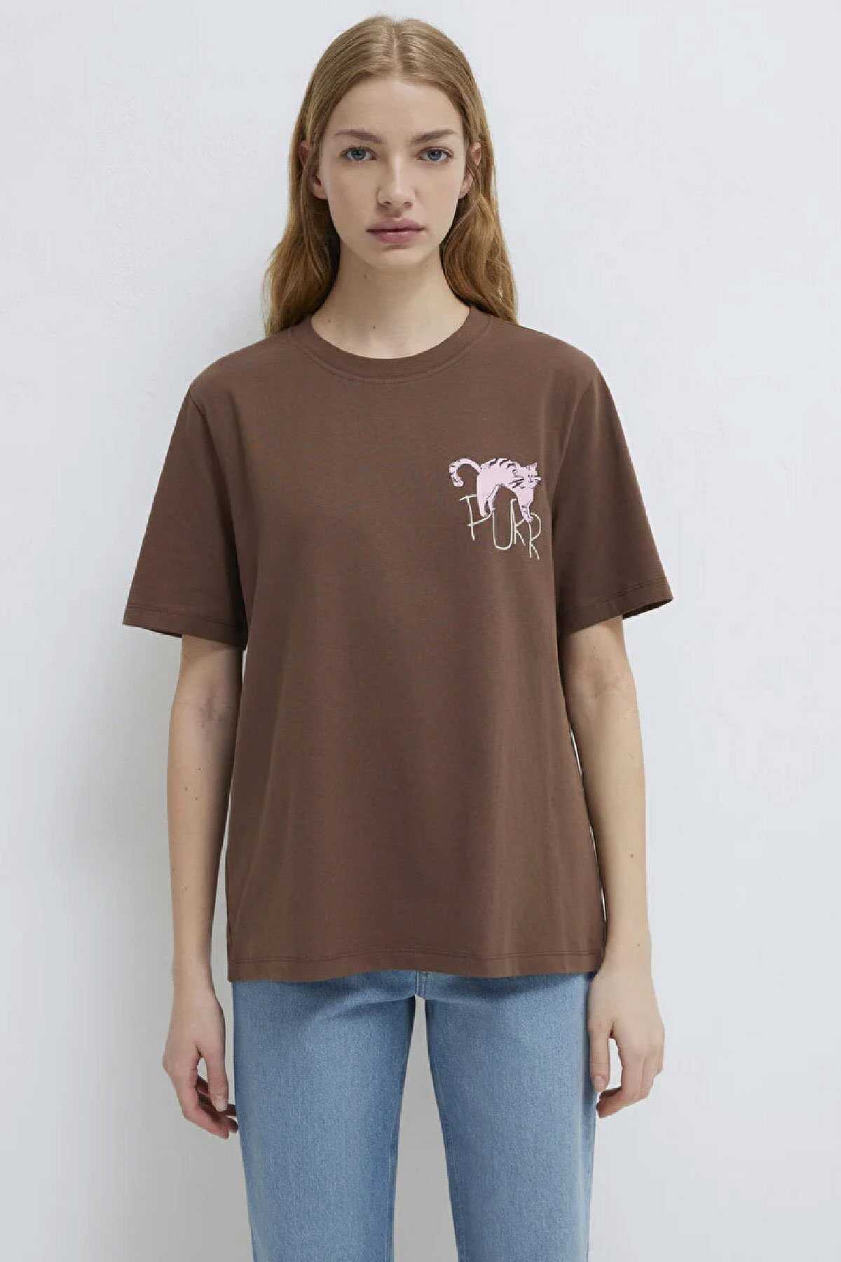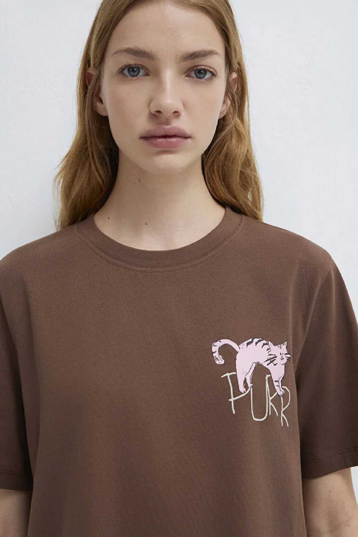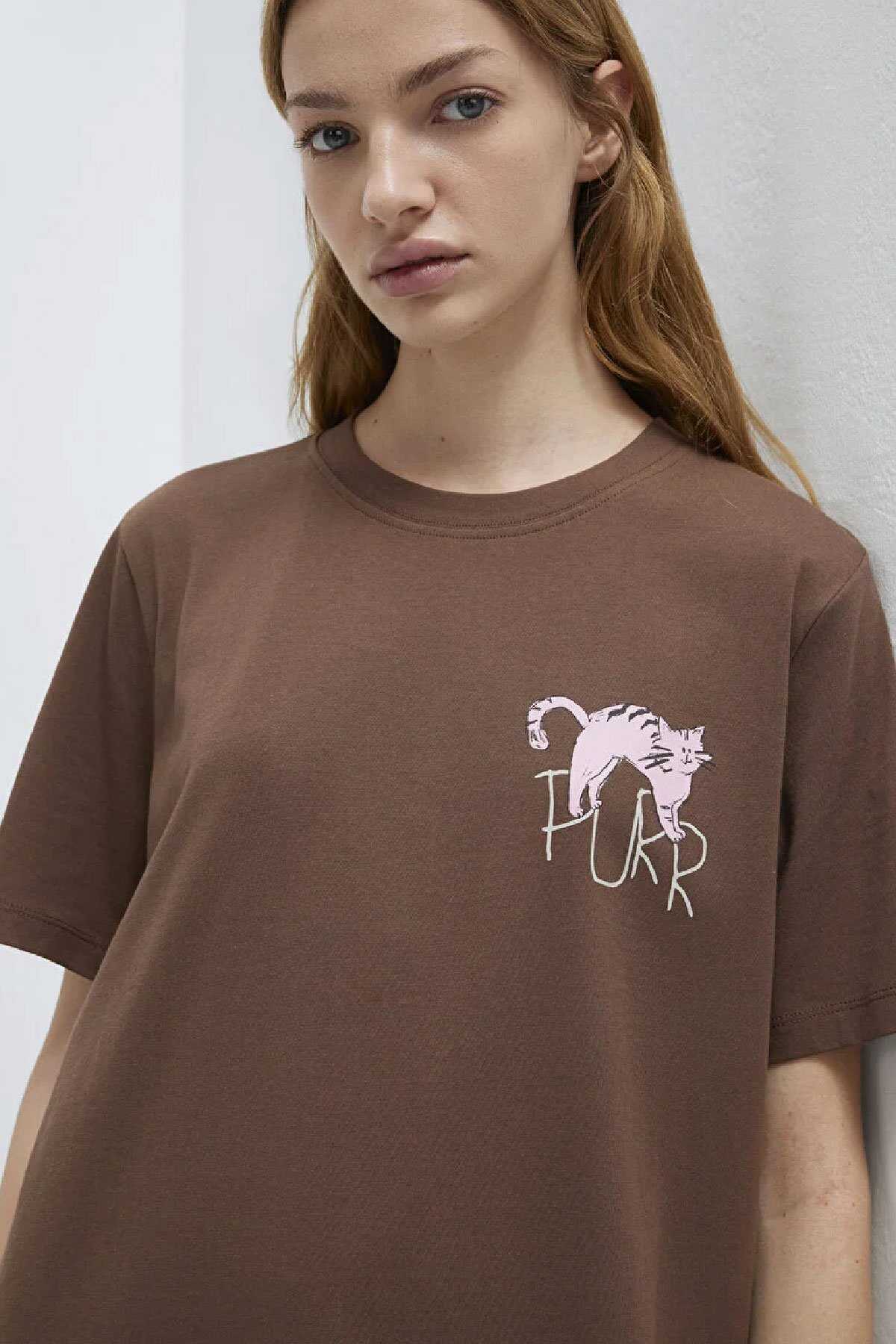Mavi nin kadın koleksiyonundan Kedi Baskılı Kahverengi Tişört.-Regular Fit Normal Kesim-%100 Pamuk-Manken Ölçüleri-Jean: Bel: 26 Boy: 32 Üst: S-Boy: 174 cm Bel: 60 cm Göğüs: 84 cm Kalça: 88 cm-Ürün Kodu: 1613726-81959