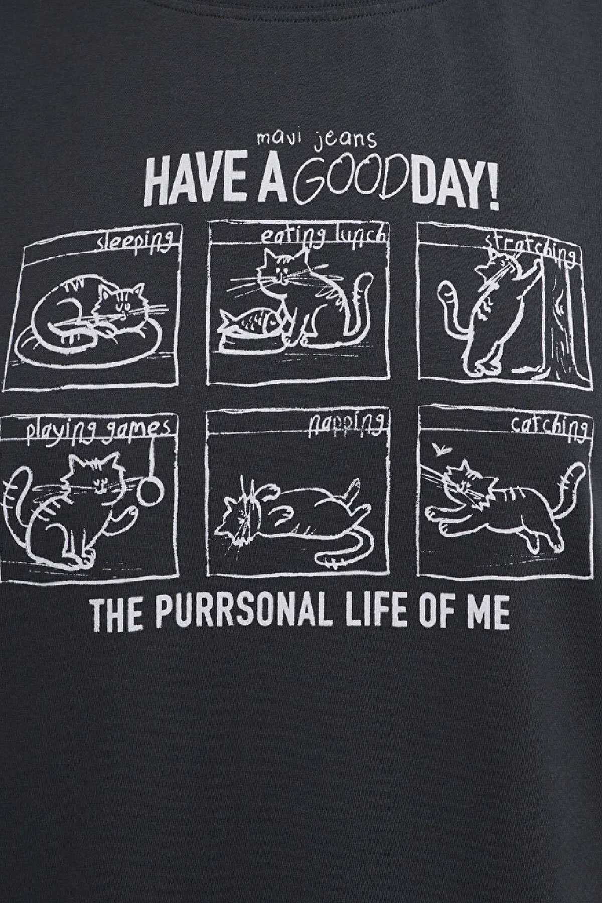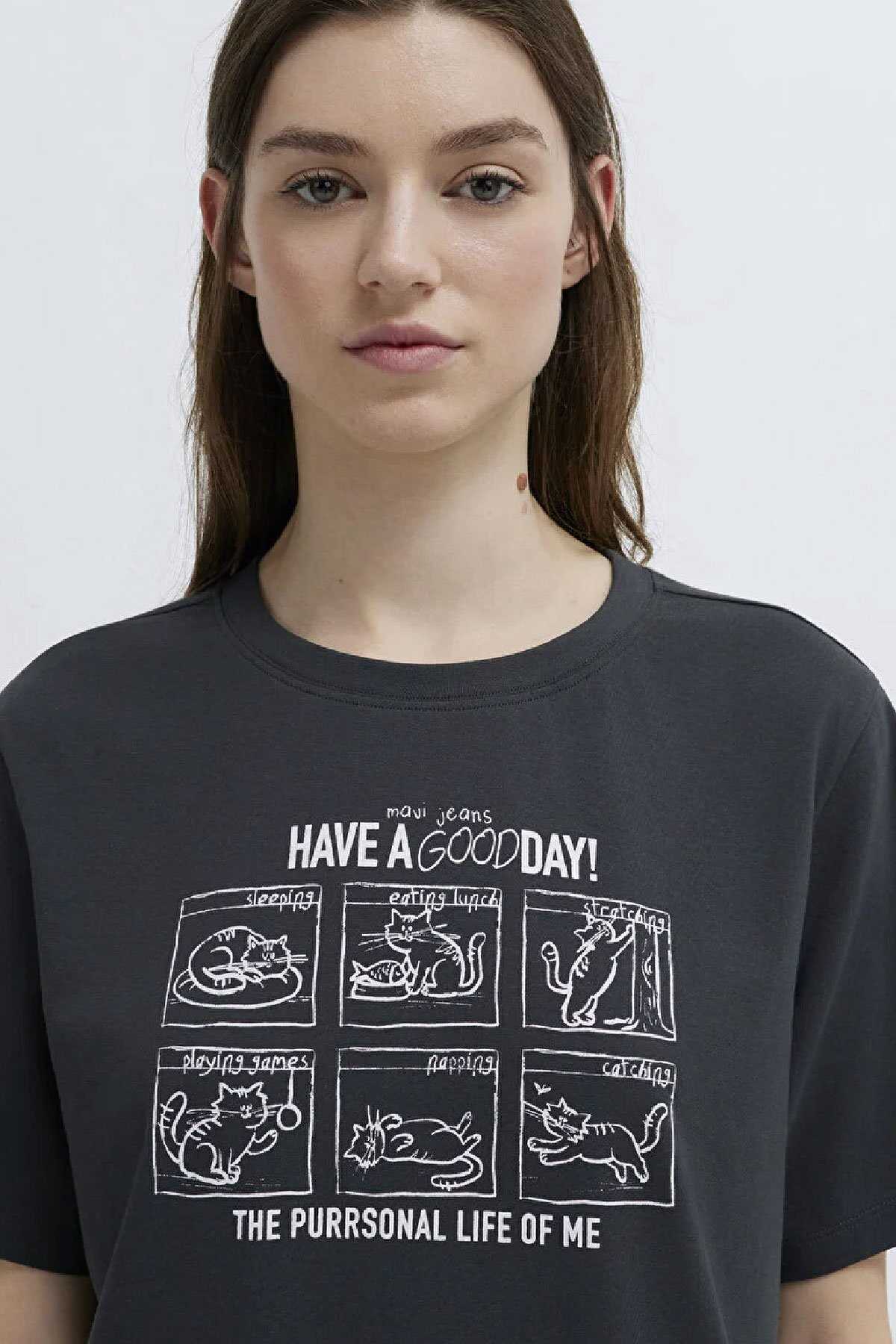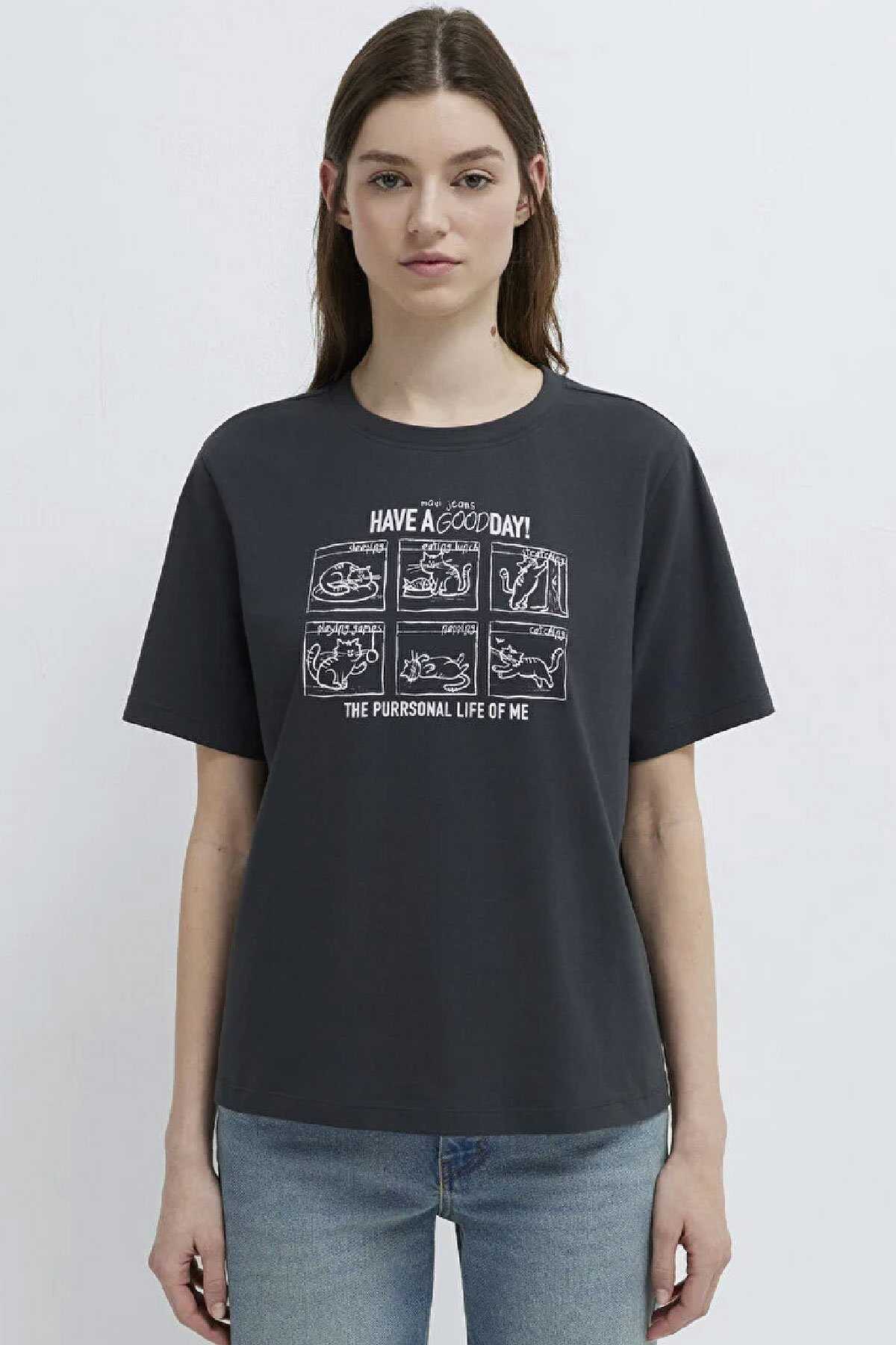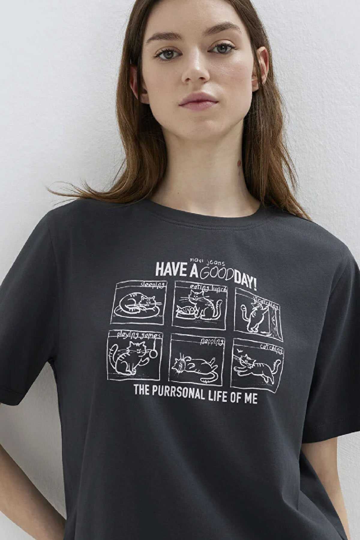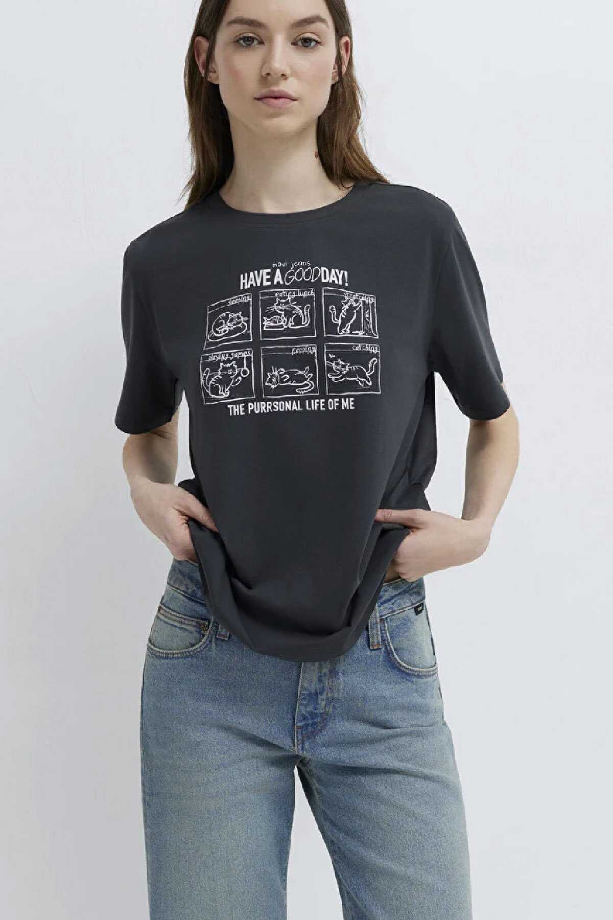 Mavi nin kadın koleksiyonundan Kedi Baskılı Antrasit Tişört.-Regular Fit Normal Kesim-%100 Pamuk-Manken Ölçüleri-Jean: Bel: 26 Boy: 32 Üst: S-Boy: 178 cm Bel: 64 cm Göğüs: 80 cm Kalça: 90.5 cm-Ürün Kodu: 1613876-83620