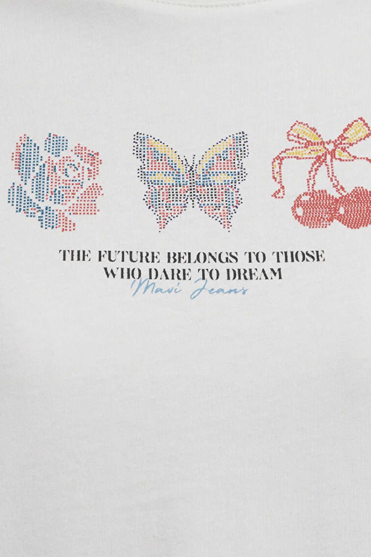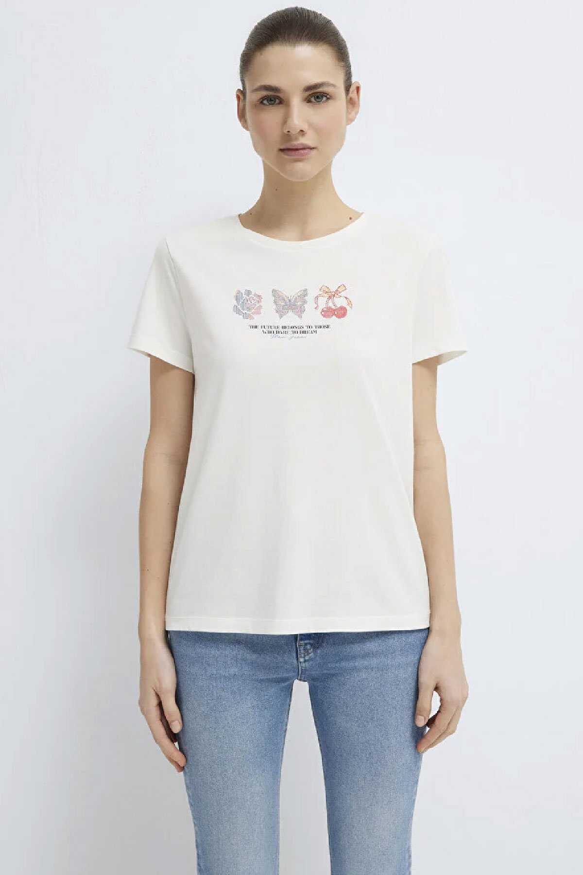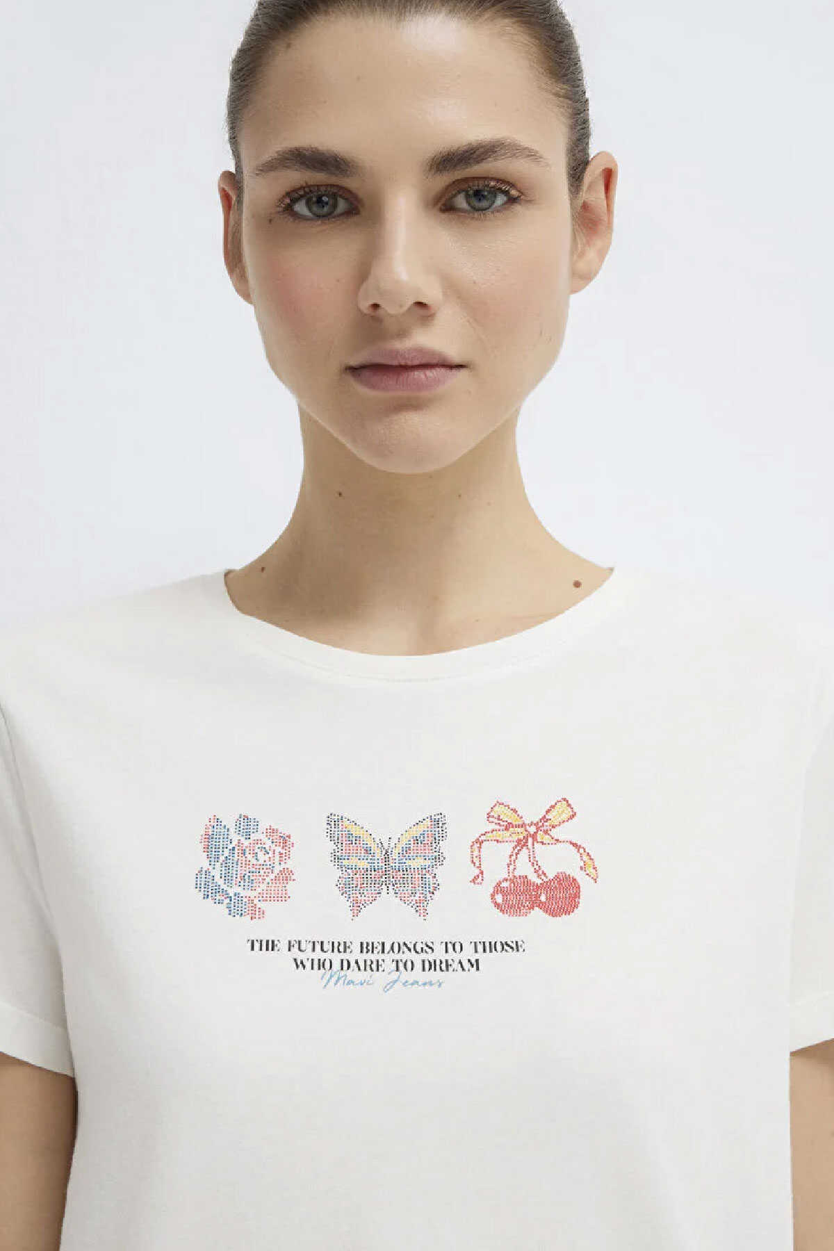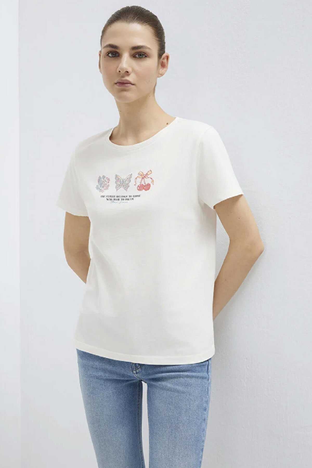 Mavi nin kadın koleksiyonundan Kelebek Baskılı Ekru Tişört.-Semi Slim Fit Yarı Dar Kesim-%100 Pamuk-Manken Ölçüleri-Jean: Bel: 26 Boy: 32 Üst: S-Boy: 176 cm Bel: 63 cm Göğüs: 81 cm Kalça: 93 cm-Ürün Kodu: 1613744-80194