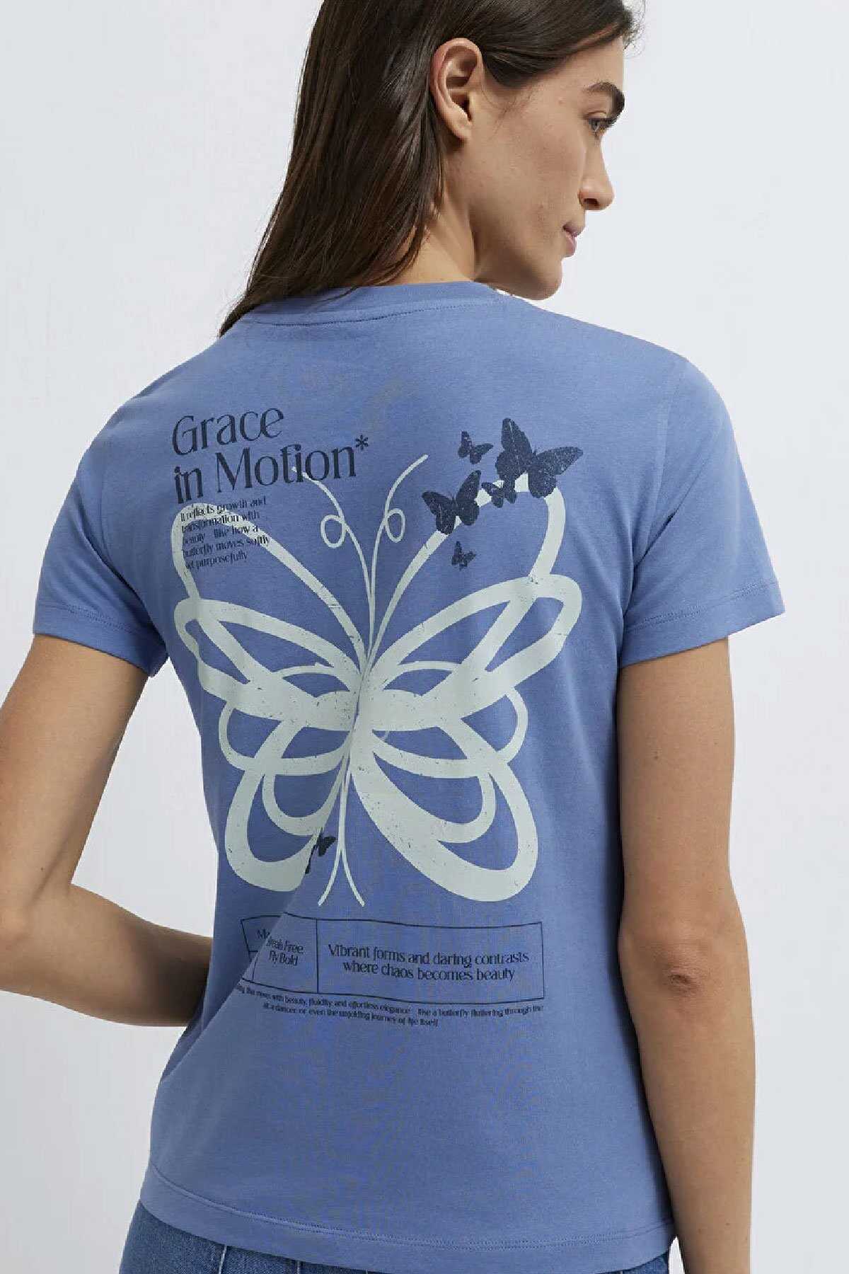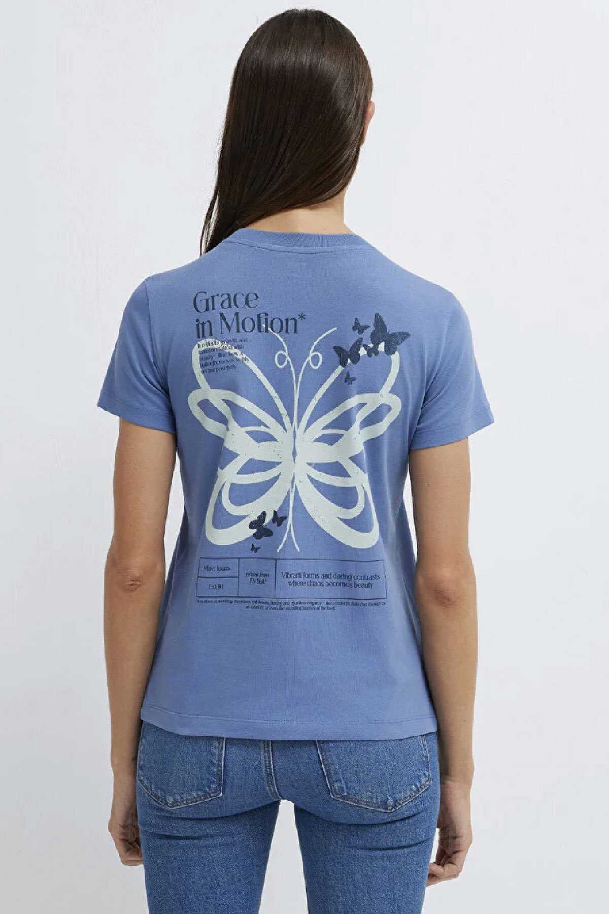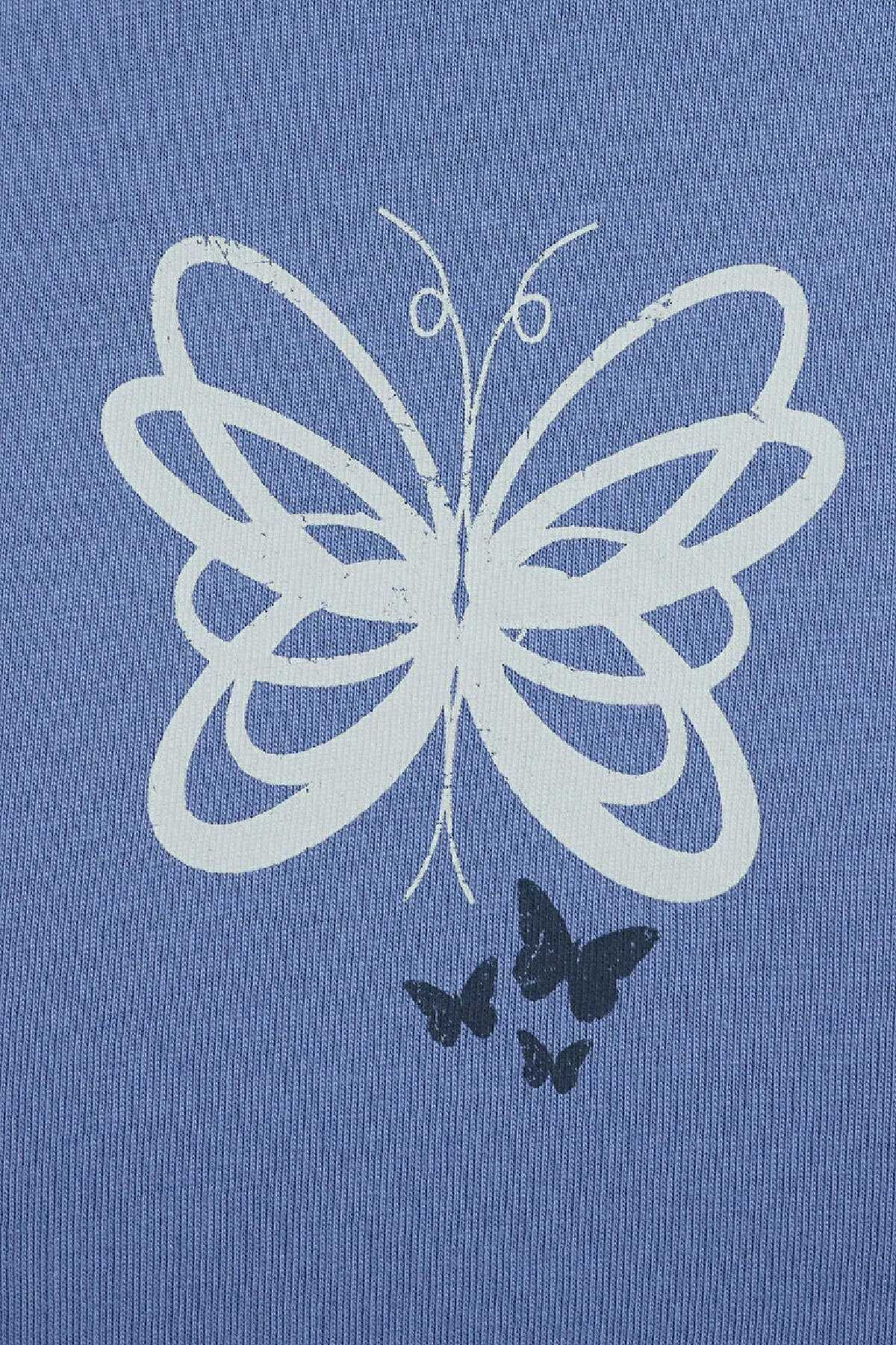 Mavi nin kadın koleksiyonundan Kelebek Baskılı Mavi Tişört.-Semi Slim Fit Yarı Dar Kesim-%100 Pamuk-Manken Ölçüleri-Jean: Bel: 26 Boy: 32 Üst: S-Boy: 178 cm Bel: 63 cm Göğüs: 89 cm Kalça: 92 cm-Ürün Kodu: 1613870-70728-Menşei: Mısır