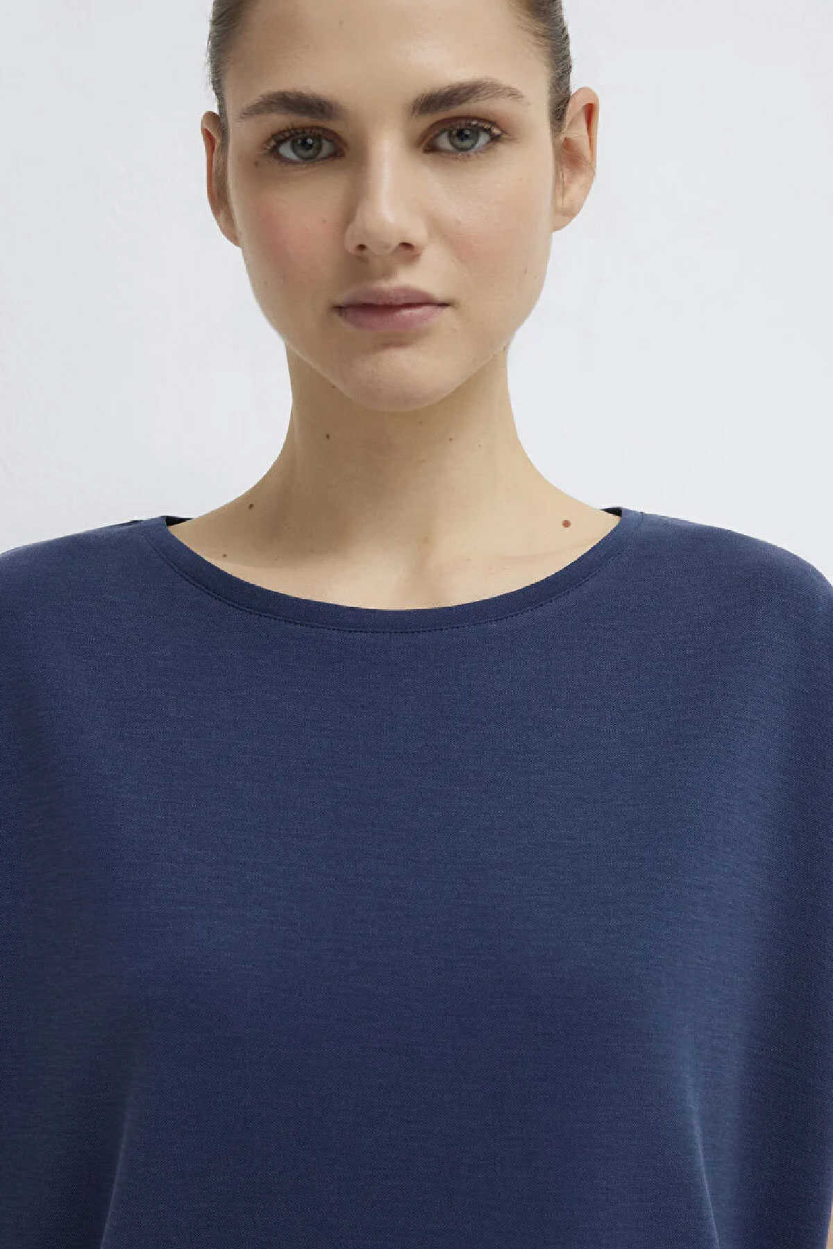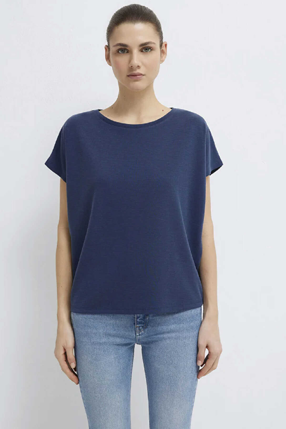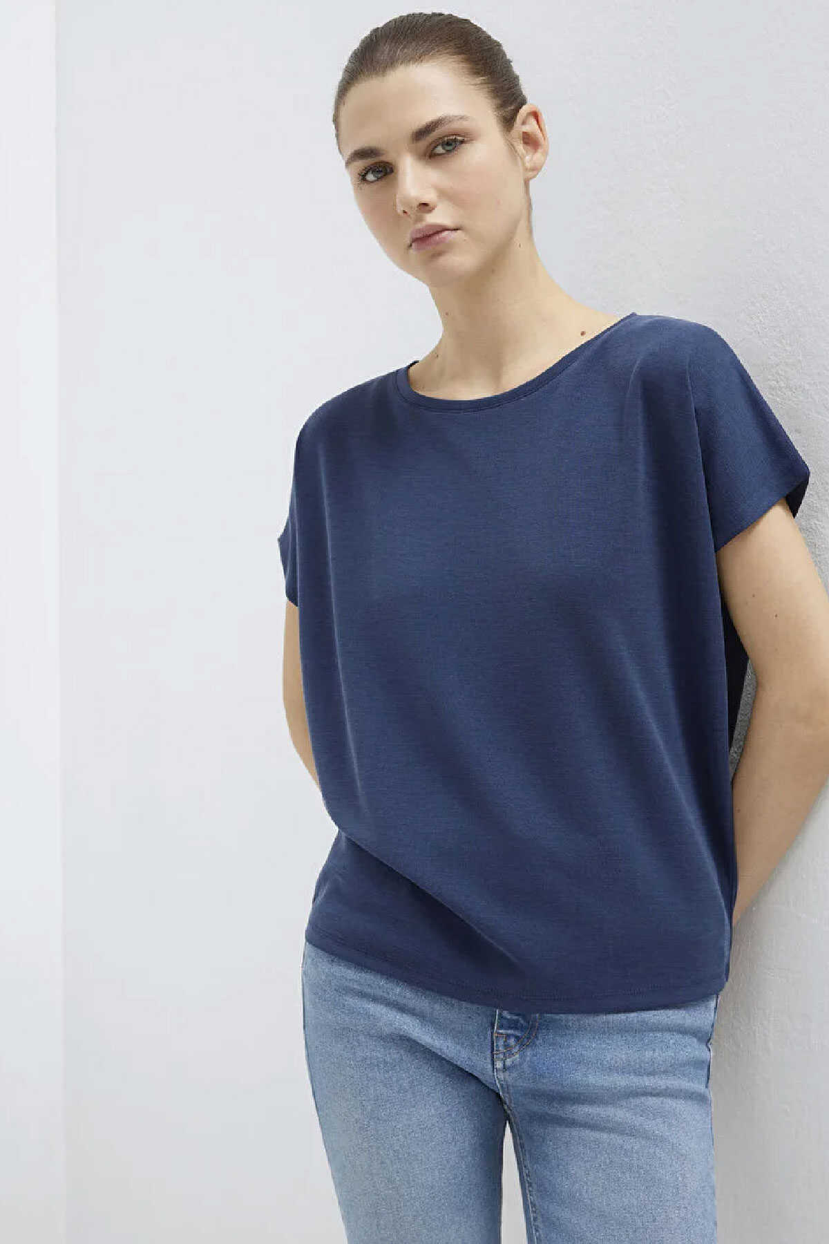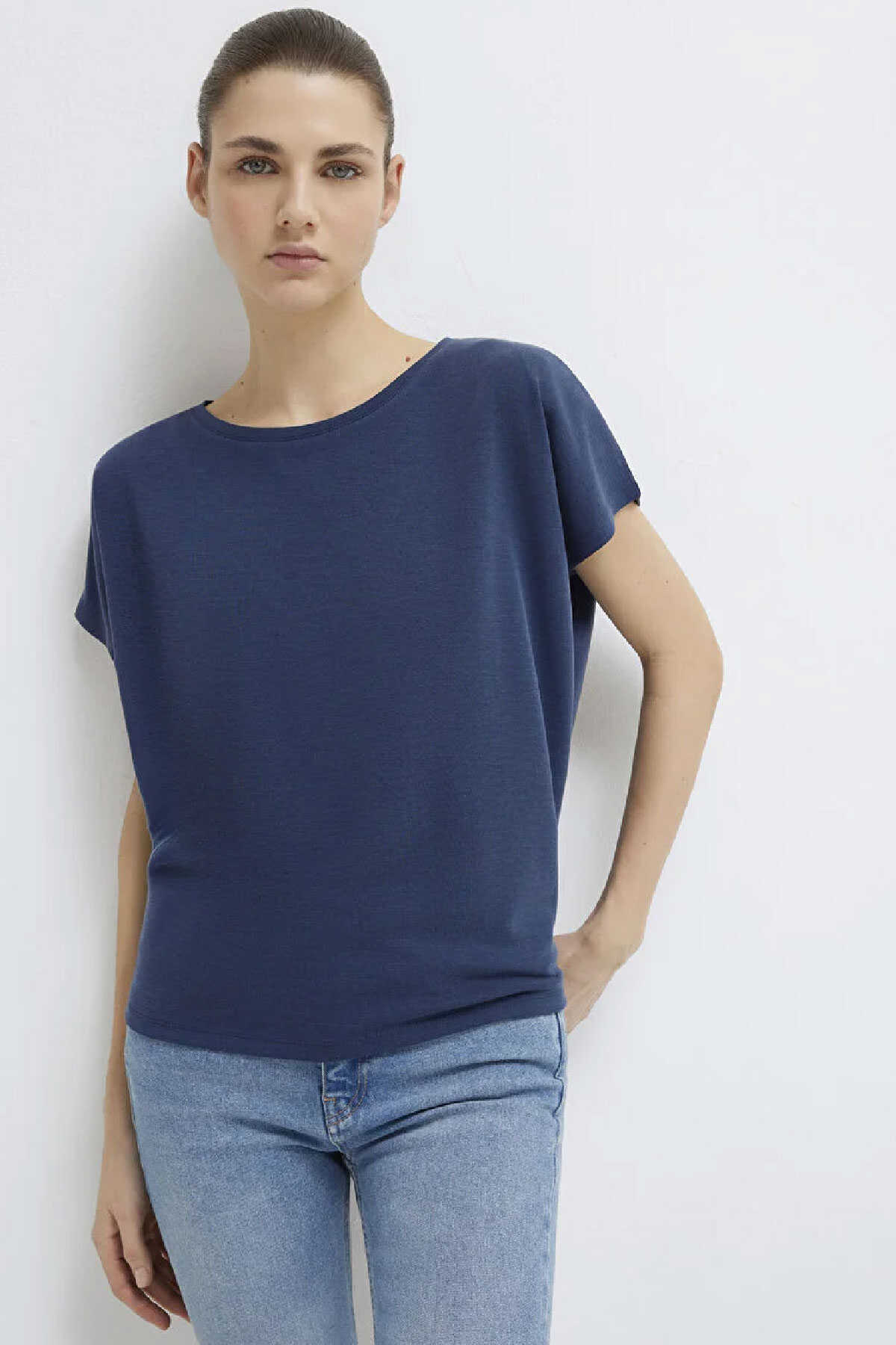 Modal karışımlı lux touch. Loose fit rahat kesim. Bisiklet yaka. Kısa kol. -Lux Touch TENCEL TM Lacivert Basic Tişört .-Dokunuşu ipeğe benzeyen yumuşak ve dökümlü formlarıyla rahatlığı ve estetiği bir araya getiren bu kumaş giyim konforunuzu artırıyor. Yumuşak tuşelere sahip modal iplikler ile örülen kumaşlar terletme yapmadığı için yaz aylarında da rahatlıkla kullanılabiliyor. -Sık yıkanmaya rağmen rengi solmayan ve yıpranmayan bu kumaşlarla parlak bir görünüme yer açın.-Ürün Kodu: 167245-70487-Kumaş Bilgileri-%74 Modal (Tencel TM)-%26 Polyester-Manken Ölçüleri-Jean: Bel: 26 Boy: 32 Üst: S-Boy: 180 cm Bel: 61 cm Göğüs: 77 cm Kalça: 89 cm