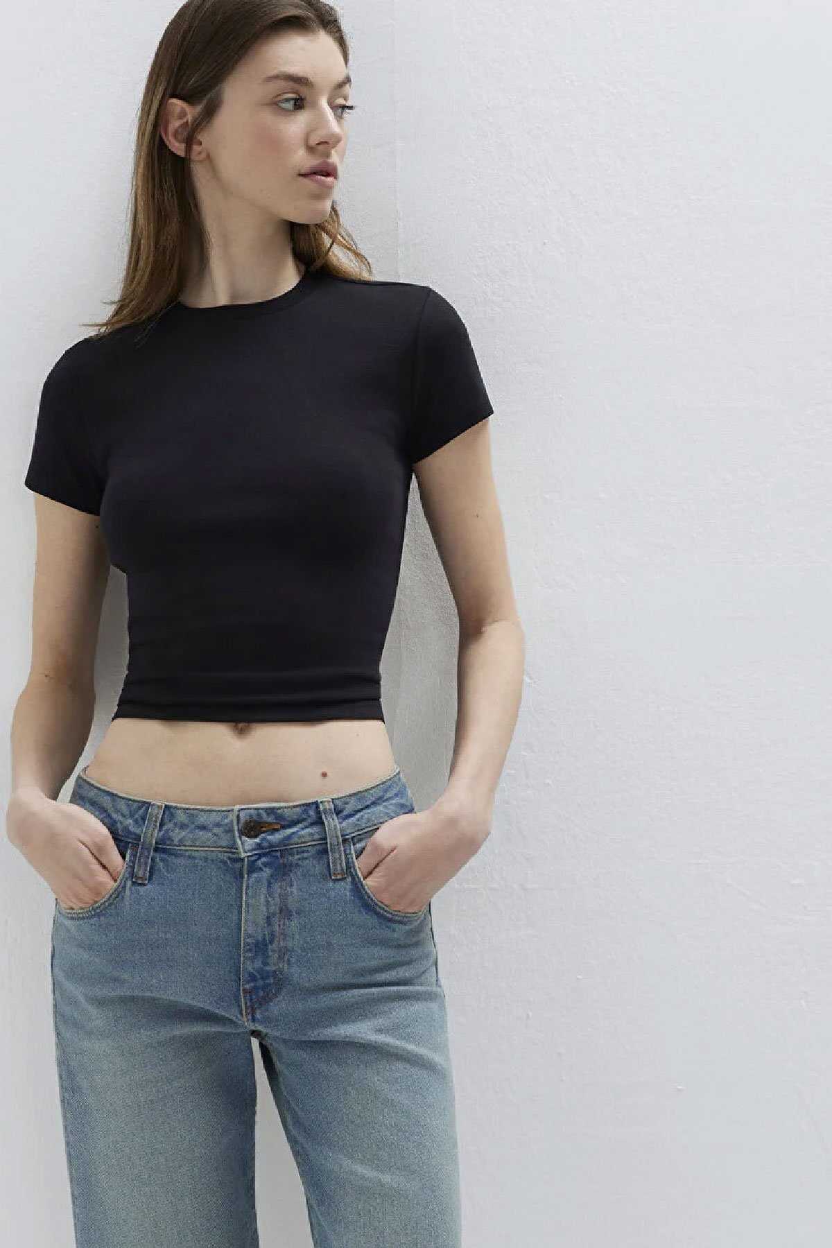 Mavi nin kadın koleksiyonundan Siyah Tişört.-Fitted Vücuda Oturan Kesim-%97 Pamuk-%3 Elastan-Manken Ölçüleri-Jean: Bel: 26 Boy: 32 Üst: S-Boy: 178 cm Bel: 64 cm Göğüs: 80 cm Kalça: 90.5 cm-Ürün Kodu: 1614180-900-Menşei: Türkiye