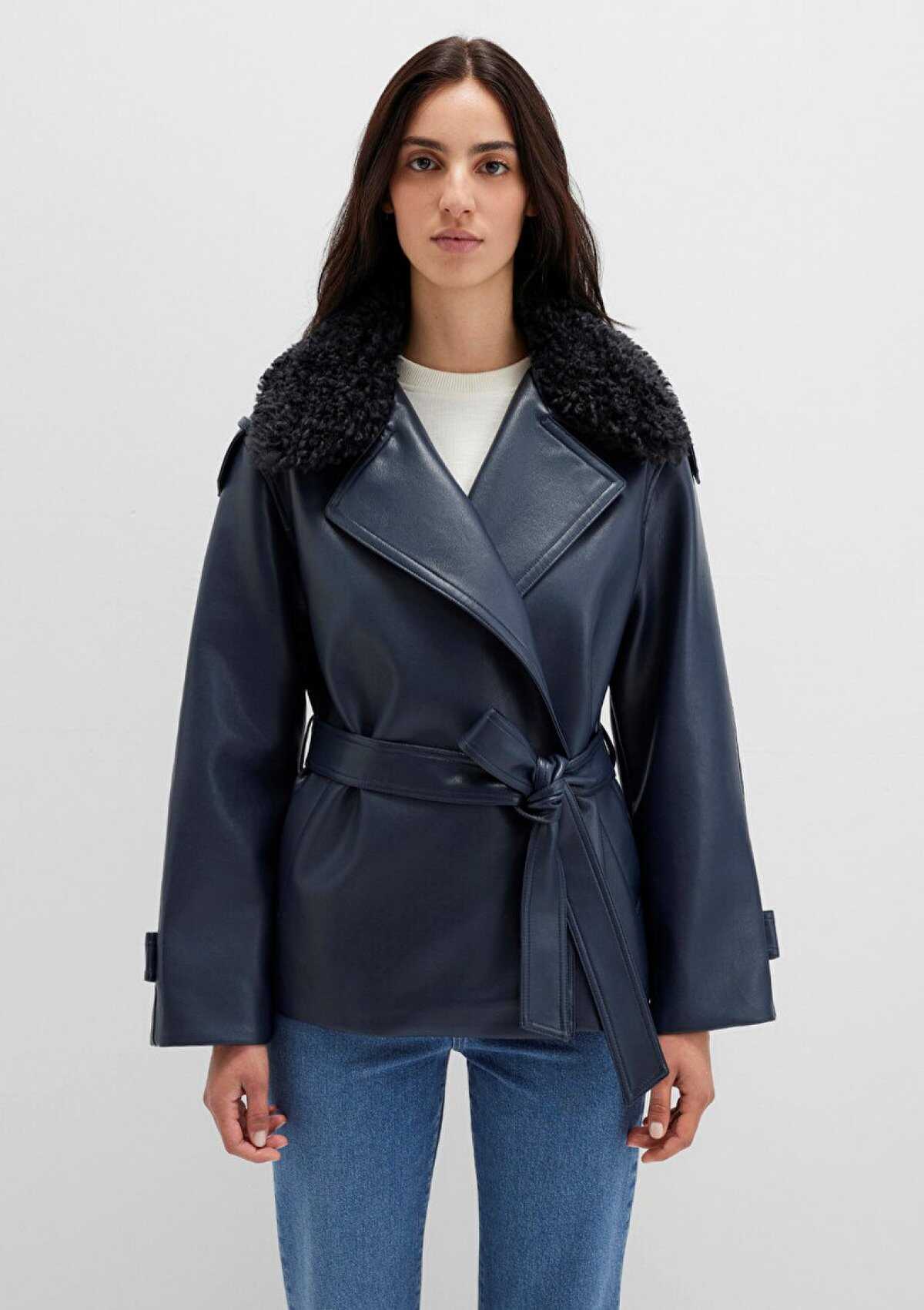 Mavi nin kadın koleksiyonundan Lacivert Suni Deri Ceket.-Ürün Kodu: 1110717-87822-Kumaş Bilgileri-Kumaş: %100 Poliüretan-Astar: %100 Polyester-Garni: %100 Polyester-Menşei: Çin