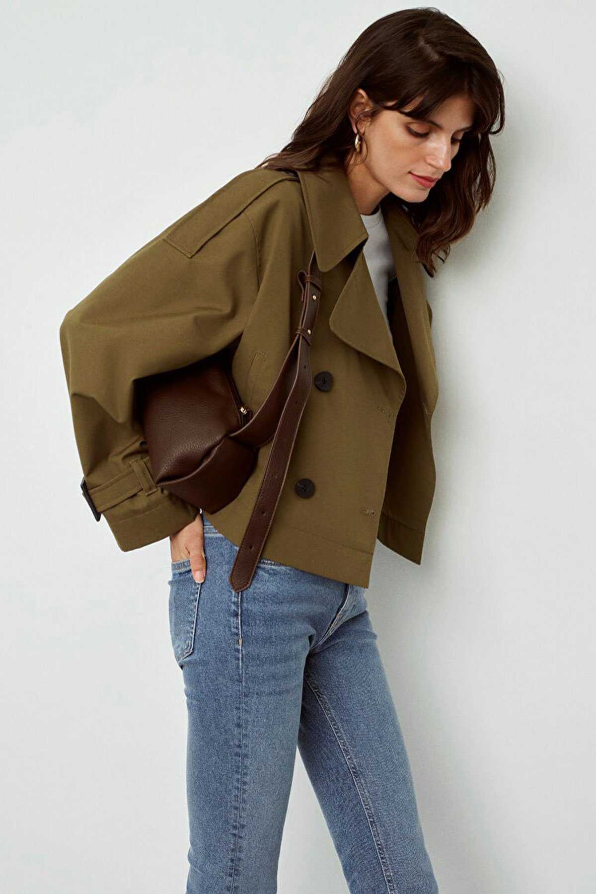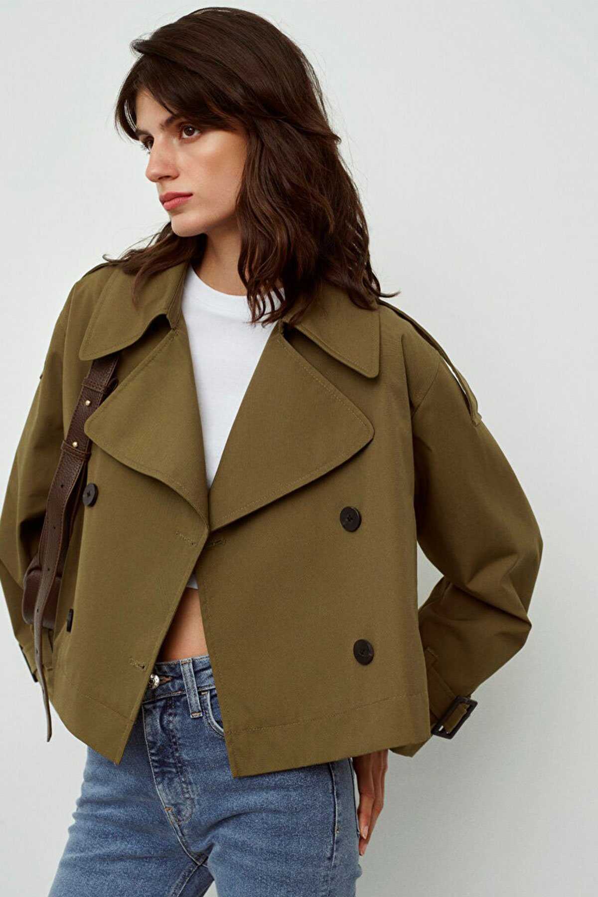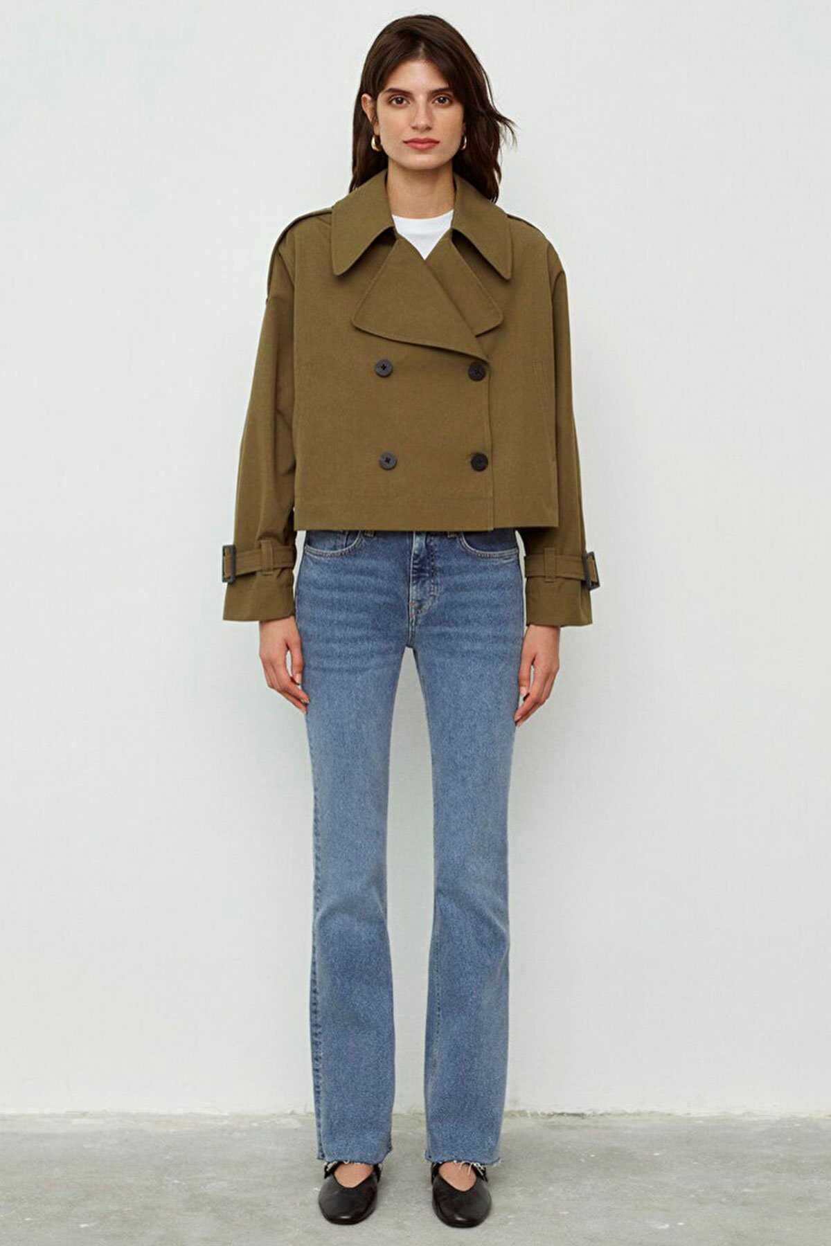 Mavi nin dış giyim koleksiyonundan Haki Kısa Trençkot. - İki adet yan cep kemer ile ayarlanabilir manşet. - Oversize Geniş Kesim - Ürün Kodu: 1110376-71592 - Kumaş Bilgileri - Kumaş: %50 Pamuk %50 Polyester - Astar: %100 Polyester - Manken Ölçüleri - Jean: Bel: 26 Boy: 32 Üst: S - Boy: 180 cm Bel: 63 cm Göğüs: 82 cm Kalça: 89.5 cm - Menşei: Türkiye