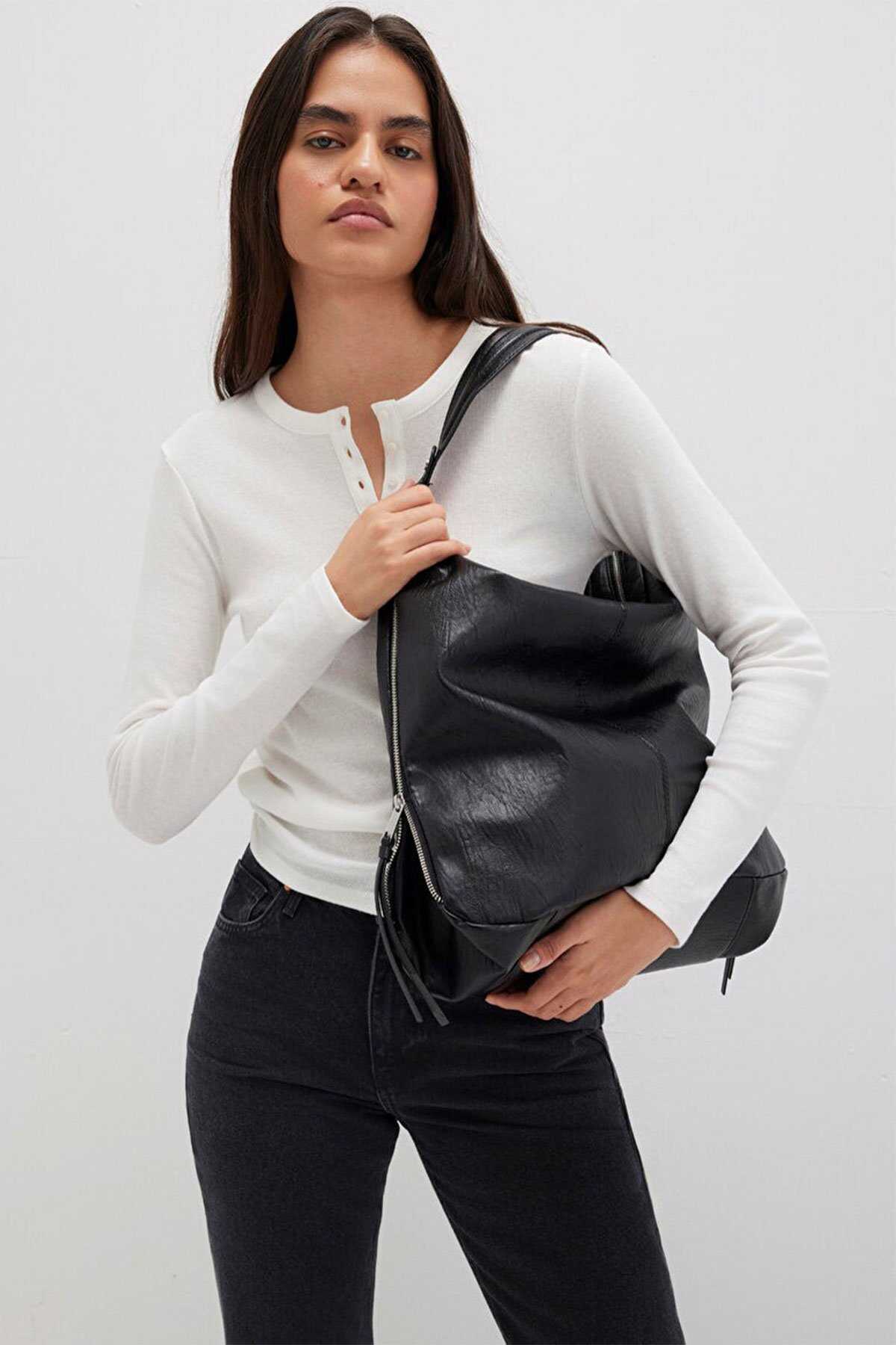 Mavi nin aksesuar koleksiyonundan Siyah Omuz Çantası. - Fermuar kapamalı iki adet fermuarsız ve bir adet fermuarlı iç cep yan kısımları fermuar ile genişletilebilir sabit sap astarlı. - En 45 cm x Boy 33 cm x Derinlik 14 cm - Ürün Kodu: 1913475-900 - Kumaş Bilgileri - Kumaş: %100 Poliüretan - Astar: %100 Polyester - Menşei: Malezya