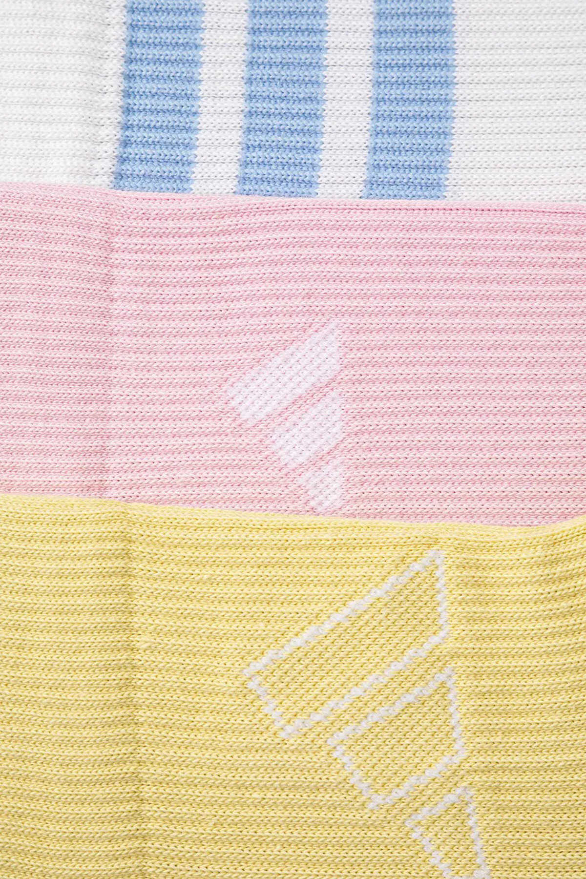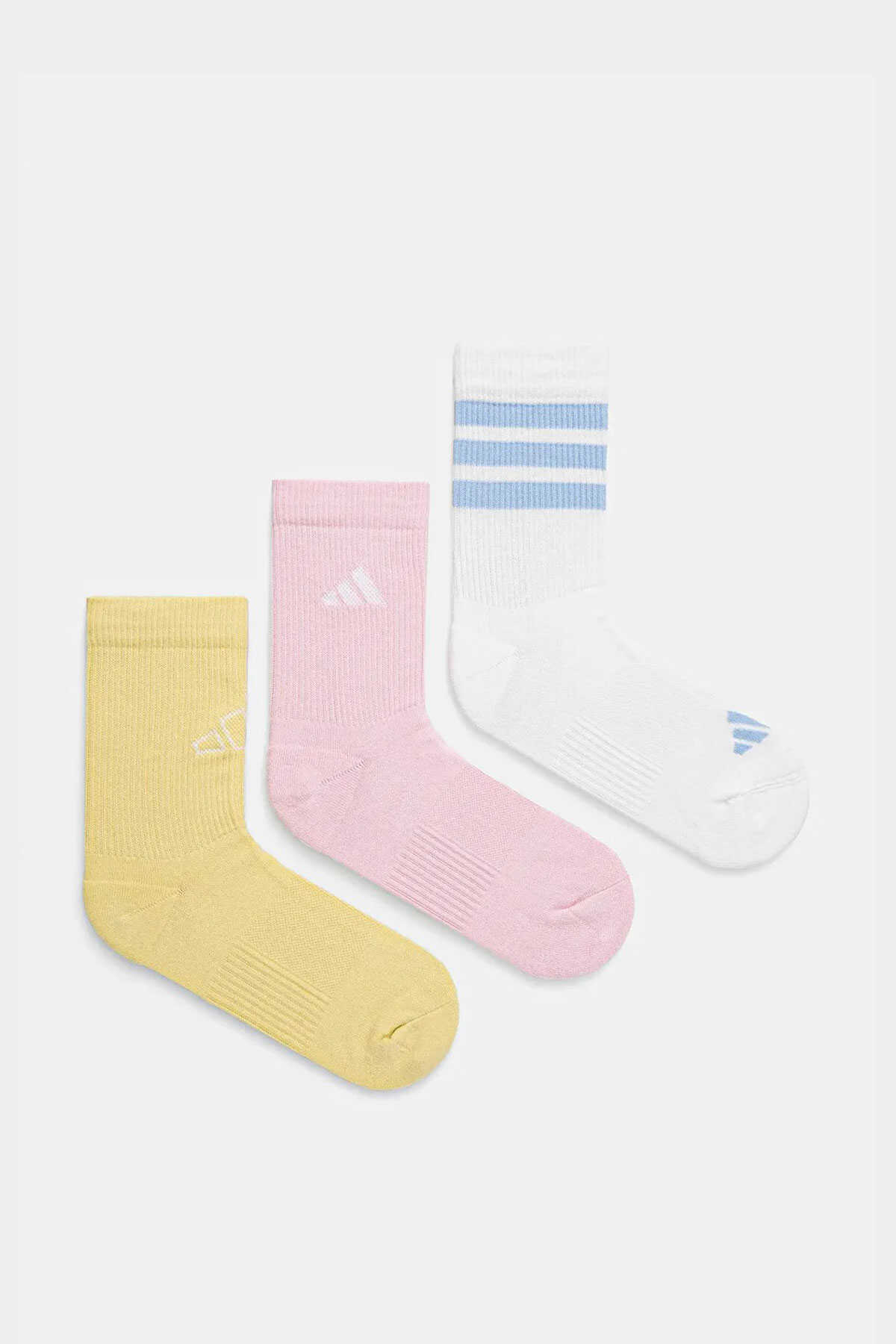 Bu adidas çorapları üçlü paket halinde gelir böylece her zaman hazır bir çiftiniz olur. -Yumuşak ve esnek bir pamuk karışımından yapılmıştır ve çok sıkı hissettirmeden yerinde duran nervürlü bir manşete sahiptir. -Manşetteki adidas grafikleri bu çoraplara sportif bir imza verir. -Mürettebat uzunluğu-%51 pamuk %46 polyester (geri dönüştürülmüş) %2 elastan %1 poliamid (geri dönüştürülmüş)-Paket başına üç çift-En az %50 oranında geri dönüştürülmüş ve yenilenebilir içerik içerir-Renk: Beyaz Şeffaf Pembe Pudra Sarısı-Ürün kodu: JN6532-Menşei: Pakistan