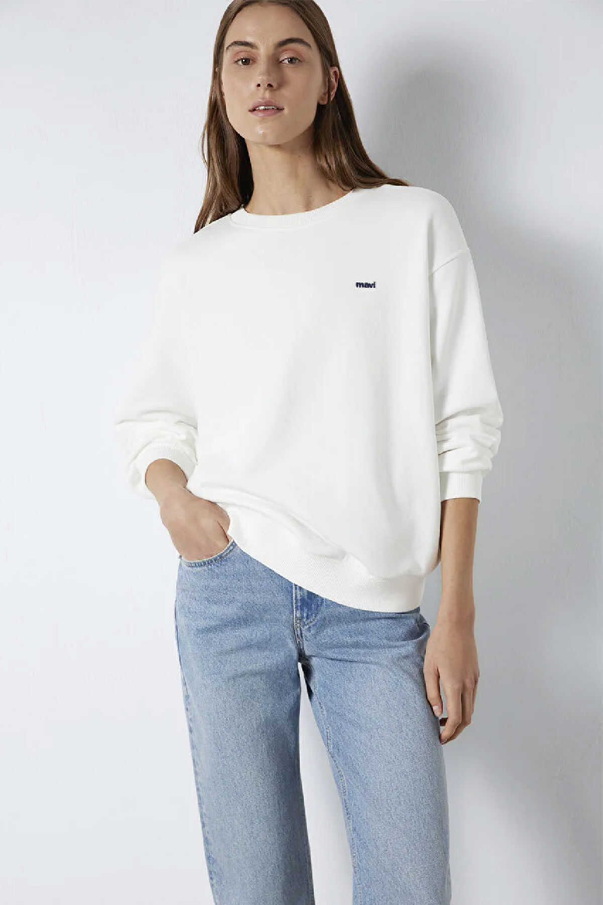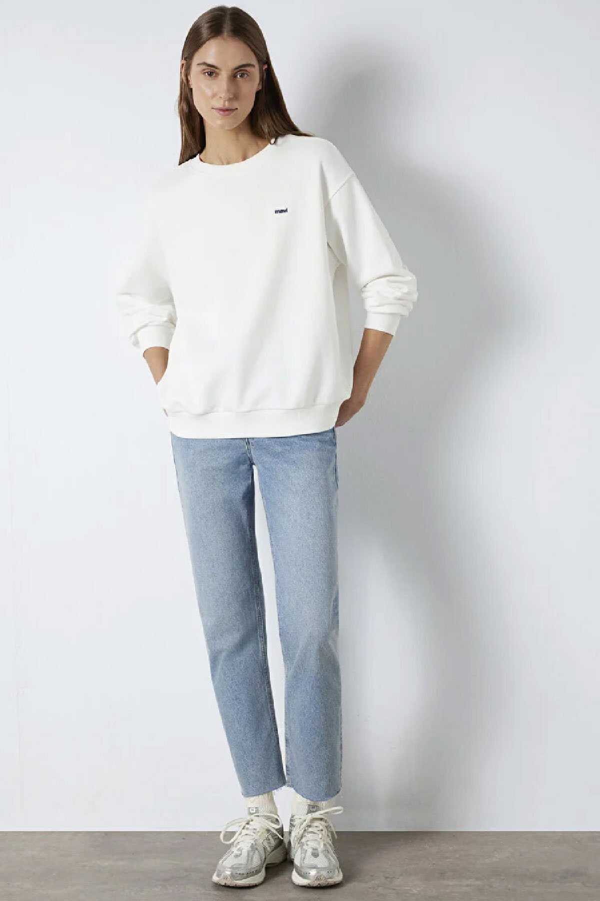 Mavi nin kadın koleksiyonundan Mavi Nakışlı Ekru Sweatshirt. -Şardonsuz.-Loose Fit Bol Rahat Kesim-Ürün Kodu: 1S10366-70057-Kumaş Bilgileri-%73 Pamuk-%27 Polyester-Manken Ölçüleri-Boy: 180 cm Bel: 60 cm Göğüs: 79 cm Kalça: 89 cm-Menşei: Türkiye