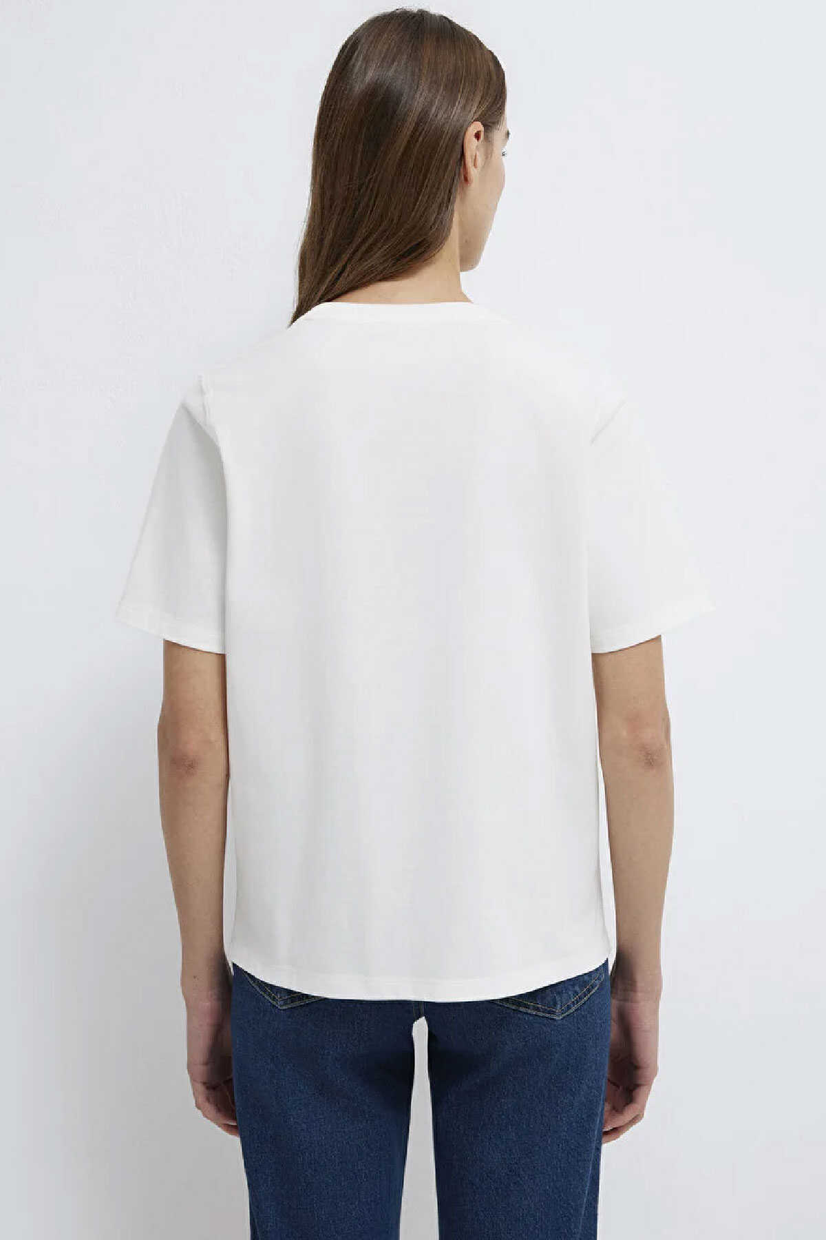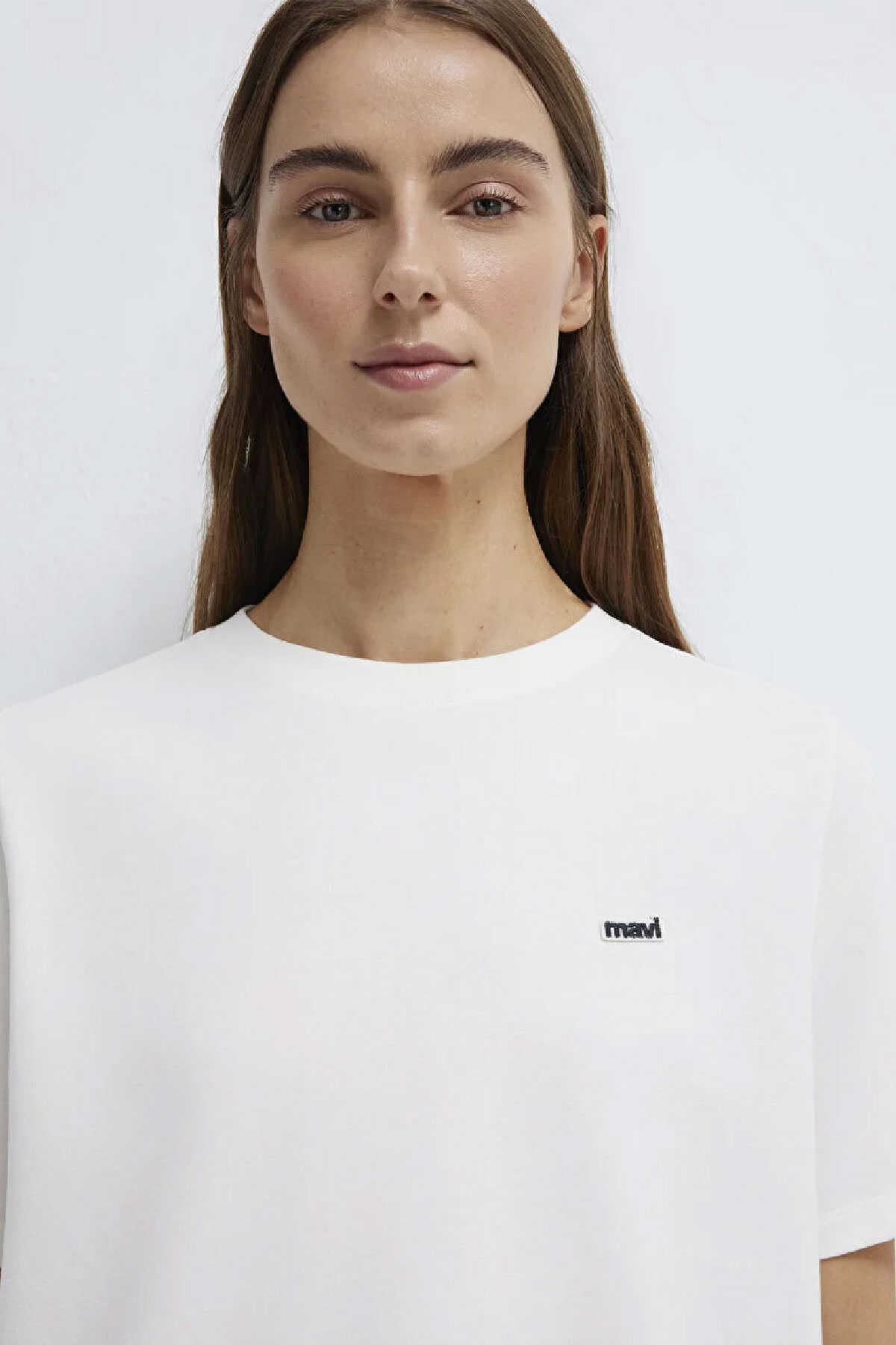 Mavi nin kadın koleksiyonundan Mavi Logo Baskılı Ekru Tişört.-Regular Fit Normal Kesim-Ürün Kodu: 1613407-70057-Kumaş Bilgileri-%100 Pamuk-Manken Ölçüleri-Jean: Bel: 26 Boy: 32 Üst: S-Boy: 180 cm Bel: 60 cm Göğüs: 79 cm Kalça: 89 cm-Menşei: Türkiye