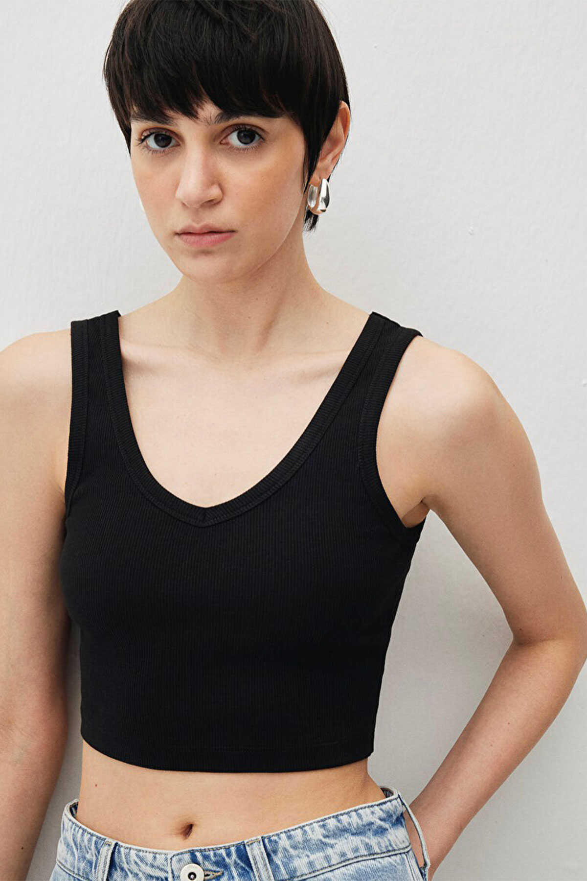 Mavi nin kadın koleksiyonundan V Yaka Siyah Basic Crop Atlet.-Ürün Kodu: 1612375-900-Kumaş Bilgileri-%96 Pamuk-%4 Elastan-Manken Ölçüleri-Jean: Bel: 26 Boy: 32 Üst: S-Boy: 179 cm Bel: 59 cm Göğüs: 84 cm Kalça: 90 cm-Menşei: Türkiye