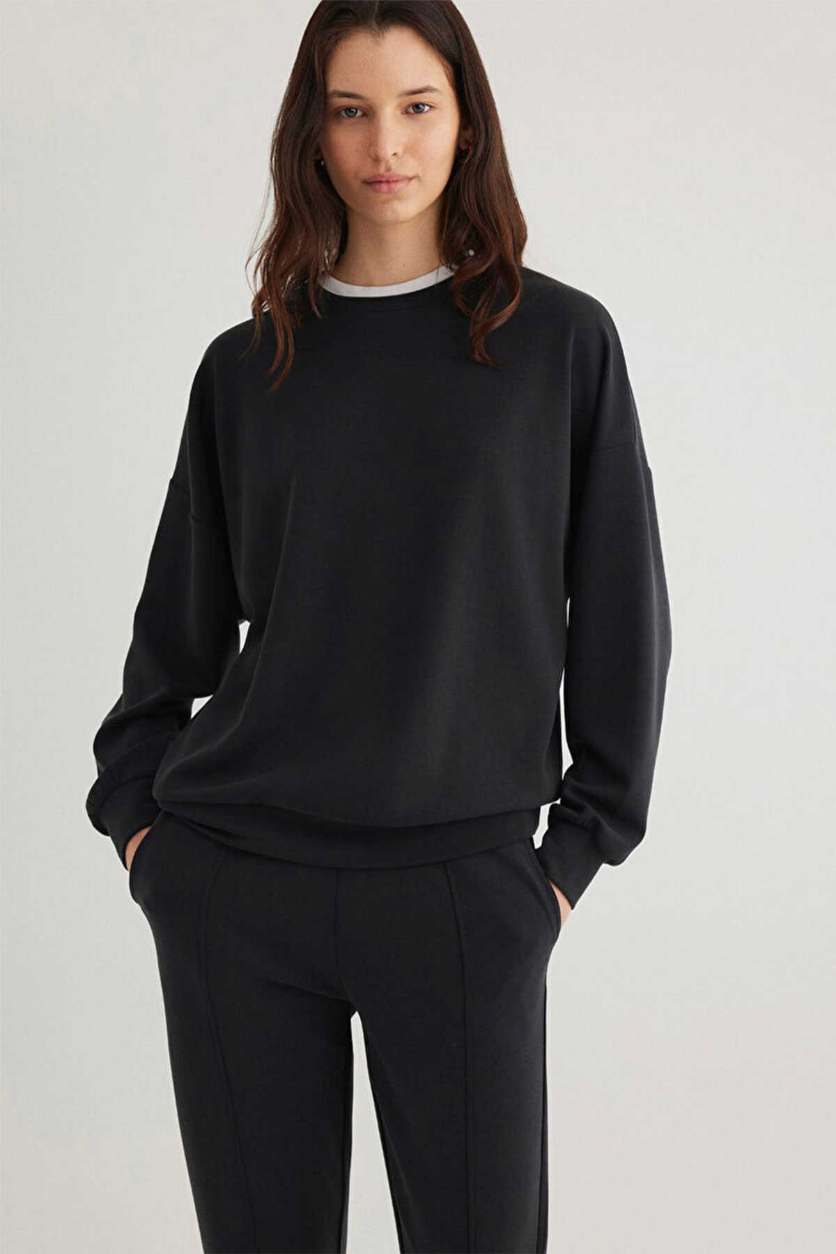 Mavi nin Lux Touch koleksiyonundan Lux Touch Siyah Modal Sweatshirt. - Şardonsuz. - Mavi nin sürdürülebilirlik vizyonunu destekleyen TENCEL TM markalı elyaflar içeren kumaşlar bu sezonun da vazgeçilmezleri arasında. - Doğada çözülen Lyocell ve Modal elyaflar doğal yumuşak yapıları sayesinde cildimizi nazikçe sarıyor. - Ayrıca kumaşların nefes alma özelliğiyle konforlu bir deneyim sağlıyor. - Hijyenik dokuması ve uzun yıkamalarda rengini koruyan kumaşıyla da öne çıkıyor. - Oversize Geniş Kesim - Ürün Kodu: 168837-900 - Kumaş Bilgileri - %47 Modal (Tencel TM) - %46 Polyester - %7 Elastan - Manken Ölçüleri - Alt: Bel: S Üst: S - Boy: 174 cm Bel: 58 cm Göğüs: 78 cm Kalça: 87 cm - Menşei: Türkiye