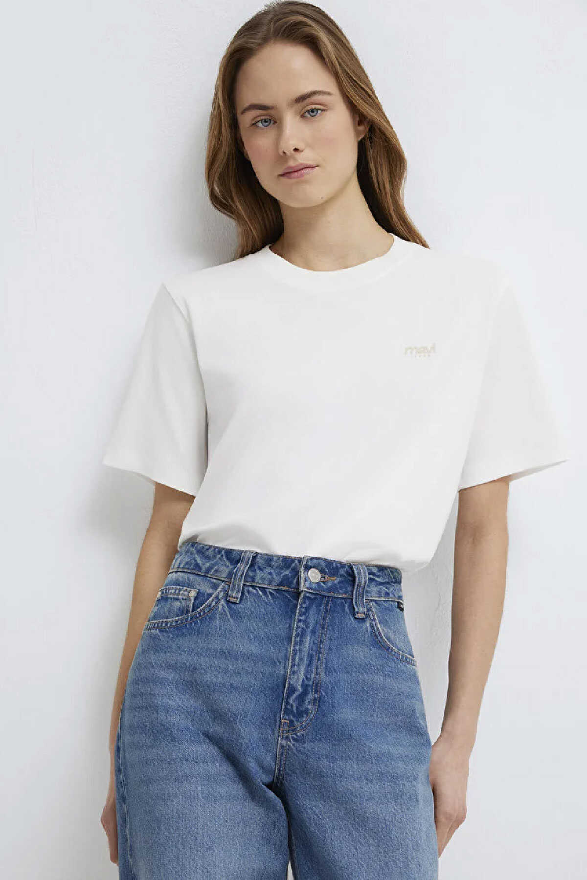 Mavi nin kadın koleksiyonundan Mavi Jeans Baskılı Ekru Tişört.-Regular Fit Normal Kesim-Ürün Kodu: 1613804-80194-Kumaş Bilgileri-%100 Pamuk-Manken Ölçüleri-Jean: Bel: 26 Boy: 32 Üst: S-Boy: 180 cm Bel: 58 cm Göğüs: 79 cm Kalça: 88 cm-Menşei: Türkiye