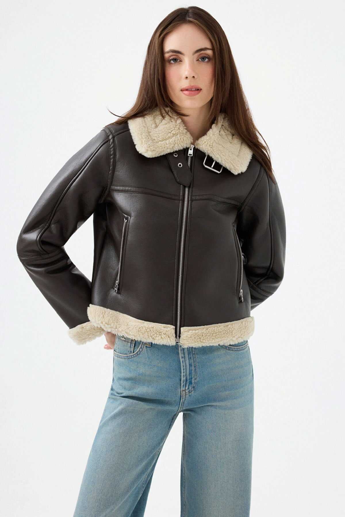 Loft Kadın Mont - Ürün Kodu: LF2040673 - Renk: Kahverengi - %100 Polyester %100 Poliüretan - Menşei: Çin