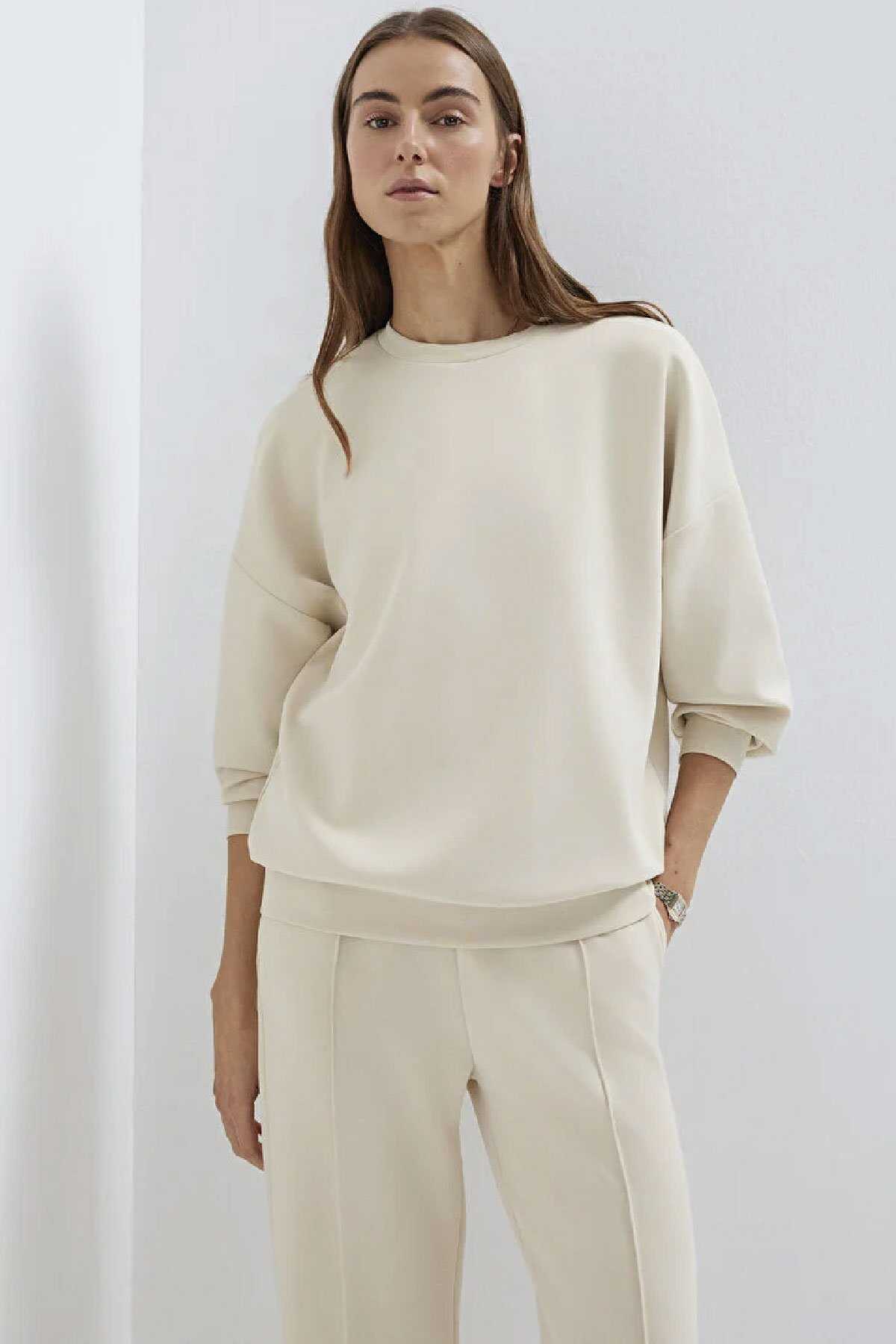 Mavi nin Lux Touch koleksiyonundan Lux Touch TENCEL TM Modal Ekru Sweatshirt. -Oversize Geniş Kesim-Şardonsuz. -Mavi nin sürdürülebilirlik vizyonunu destekleyen TENCEL TM markalı elyaflar içeren kumaşlar bu sezonun da vazgeçilmezleri arasında. -Doğada çözülen Lyocell ve Modal elyaflar doğal yumuşak yapıları sayesinde cildimizi nazikçe sarıyor. -Ayrıca kumaşların nefes alma özelliğiyle konforlu bir deneyim sağlıyor. -Hijyenik dokuması ve uzun yıkamalarda rengini koruyan kumaşıyla da öne çıkıyor. -Bu ürün aynı zamanda Mavi nin All Blue koleksiyonunun da bir parçasıdır. -Bu ürünün üretiminde Tencel TM sertifikalı kumaş kullanılmıştır.-Ürün Kodu: 168837-70065-Kumaş Bilgileri-%48 Modal (Tencel™)-%44 Polyester-%8 Elastan-Manken Ölçüleri-Alt: Bel: S Üst: S-Boy: 180 cm Bel: 60 cm Göğüs: 79 cm Kalça: 89 cm-Menşei: Türkiye