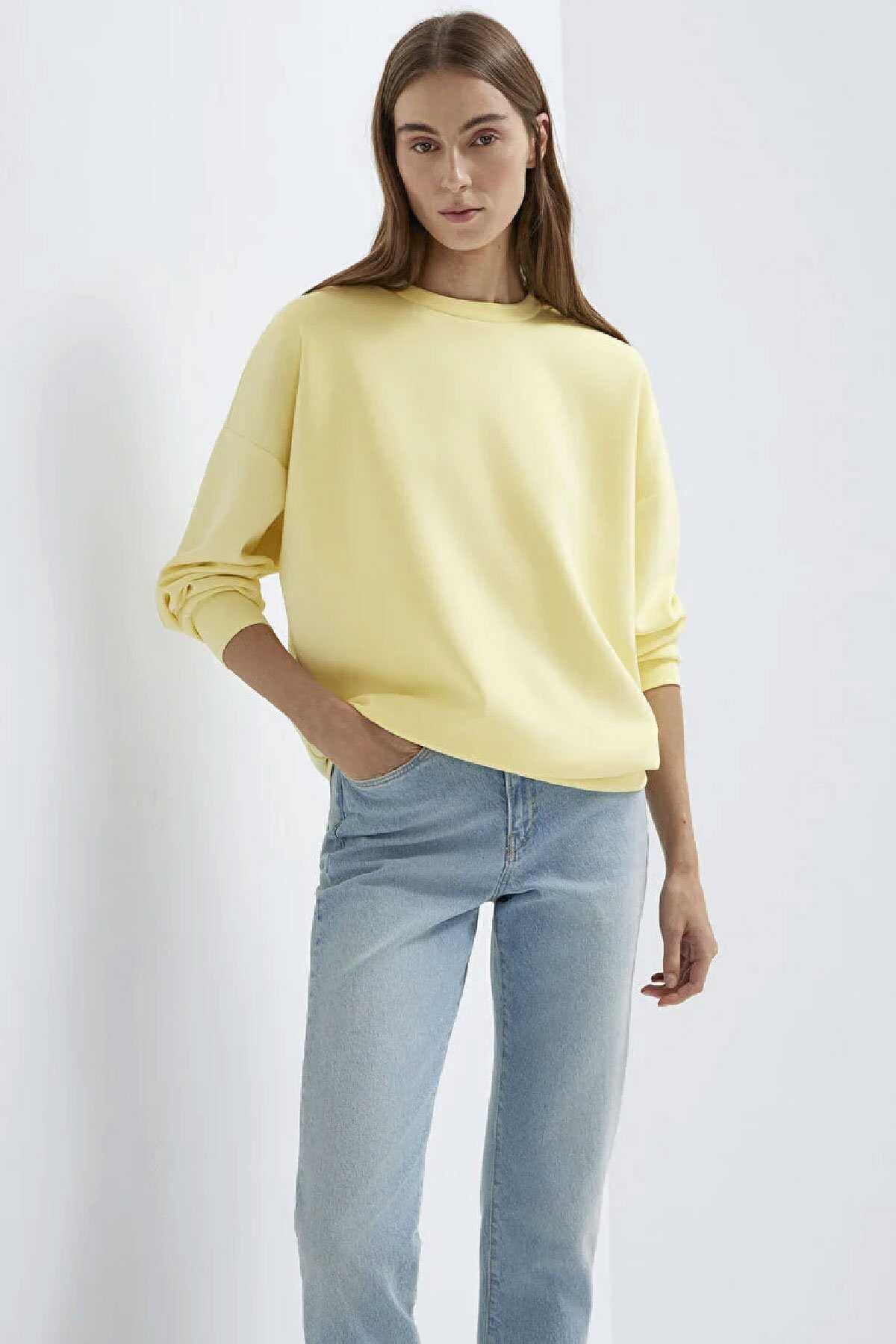 Mavi nin Lux Touch koleksiyonundan Lux Touch TENCEL TM Modal Sarı Sweatshirt. -Şardonsuz. -Oversize Geniş Kesim-Mavi nin sürdürülebilirlik vizyonunu destekleyen TENCEL TM markalı elyaflar içeren kumaşlar bu sezonun da vazgeçilmezleri arasında. -Doğada çözülen Lyocell ve Modal elyaflar doğal yumuşak yapıları sayesinde cildimizi nazikçe sarıyor. -Ayrıca kumaşların nefes alma özelliğiyle konforlu bir deneyim sağlıyor. -Hijyenik dokuması ve uzun yıkamalarda rengini koruyan kumaşıyla da öne çıkıyor. -Bu ürün aynı zamanda Mavi nin All Blue koleksiyonunun da bir parçasıdır. -Bu ürünün üretiminde Tencel TM sertifikalı kumaş kullanılmıştır.-Ürün Kodu: 168837-91390-Kumaş Bilgileri-%48 Modal (Tencel™)-%45 Polyester-%7 Elastan-Manken Ölçüleri-Jean: Bel: 26 Boy: 30 Üst: S-Boy: 180 cm Bel: 60 cm Göğüs: 79 cm Kalça: 89 cm-Menşei: Türkiye