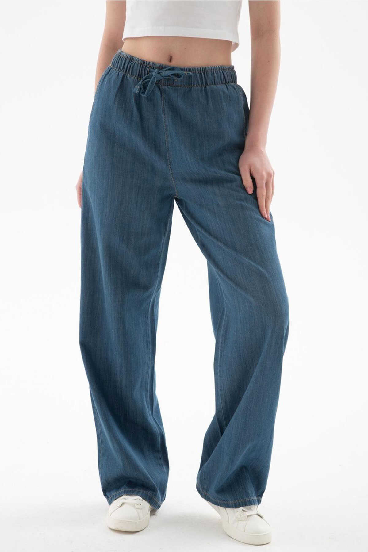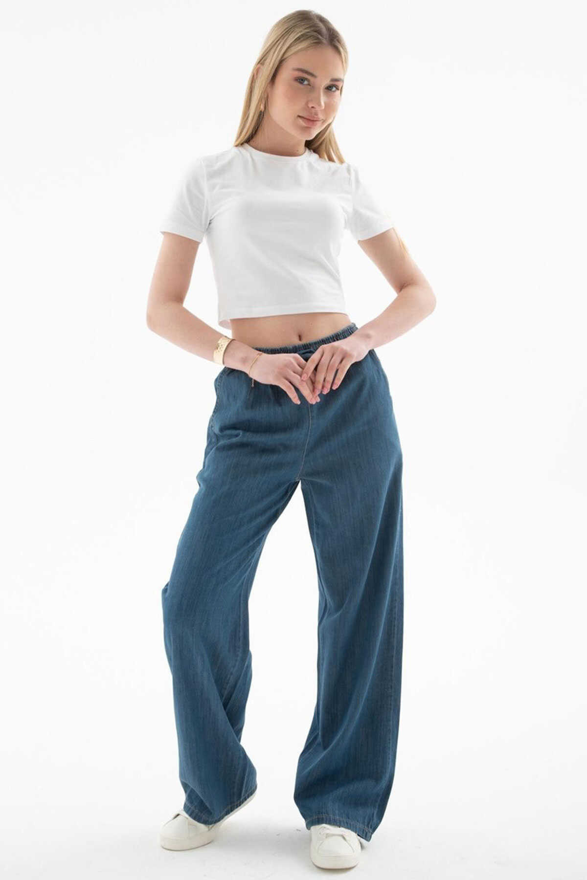 Model Ölçüleri: Boy:1.70 Göğüs:90 Bel:68 Basen:90Mankenin üzerindeki ürün S2836 bedendir.-Cinsiyet: Kadın-Kalıp: Palazzo-Bel Tipi: Lastikli-Kumaş: %100 Pamuk-Ürün Tipi: Denim-Ürün Kodu: 25Y0225K1-Menşei: Türkiye