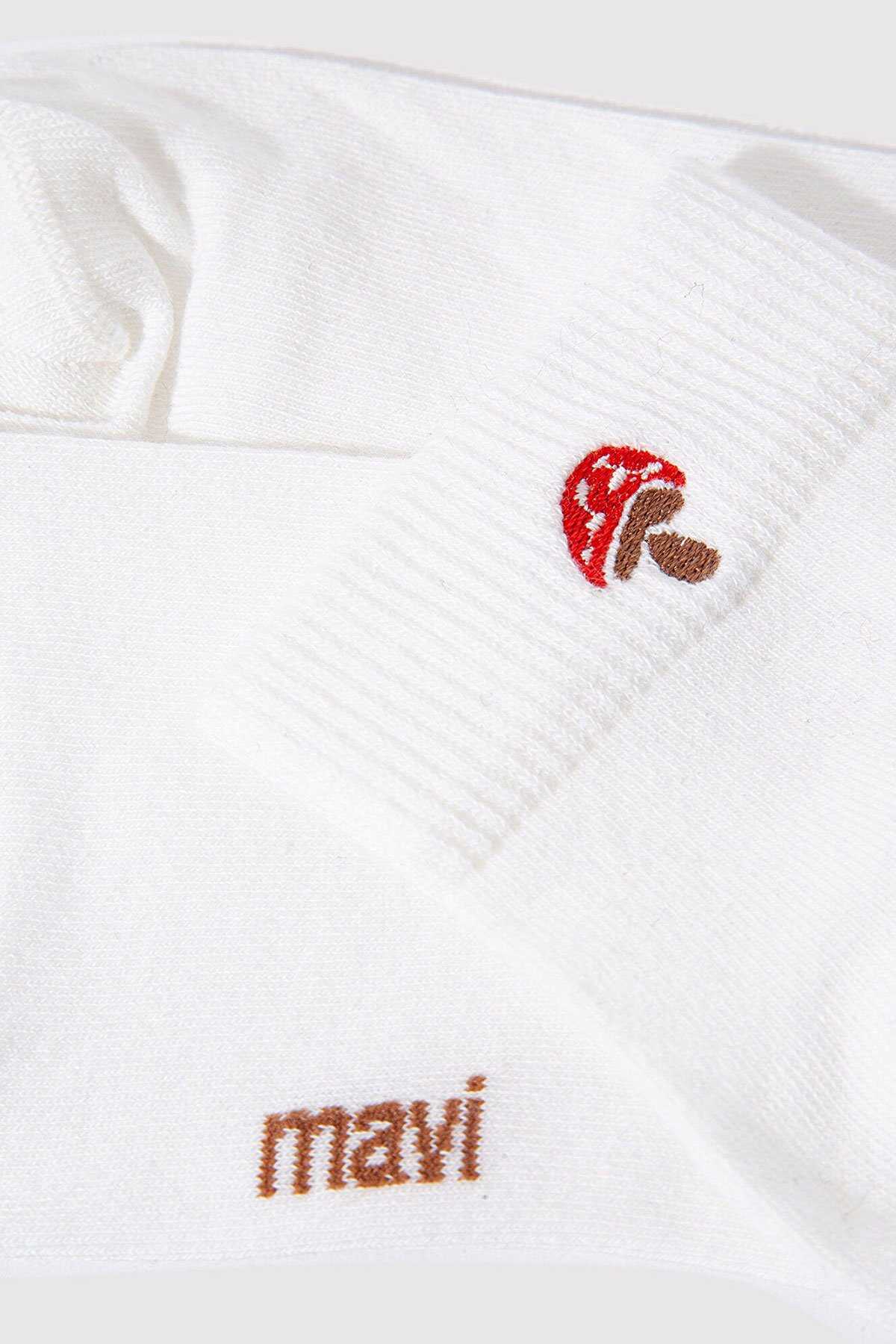 Mavi denim koleksiyonundan Mantar İşlemeli Beyaz Soket Çorap - Ürün Kodu: 1912755-620 - Menşei: Türkiye