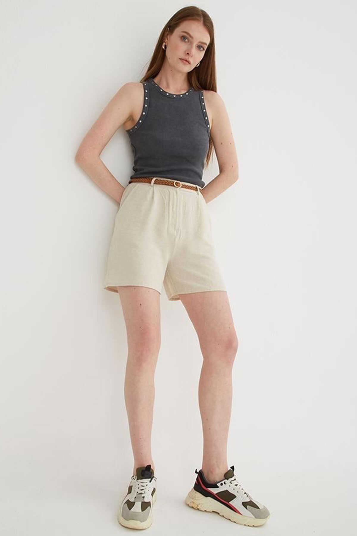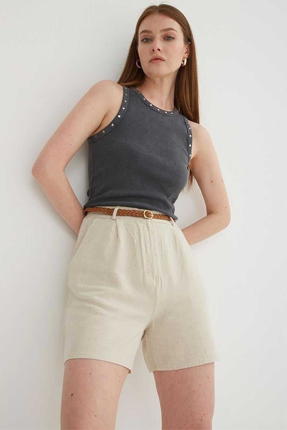 Model Ölçüleri: Boy:1.70 Göğüs:90 Bel:68 Basen:90-Mankenin üzerindeki ürün S2836 bedendir.-Cinsiyet: Kadın-İncelik: İnce-Kalıp: Rahat-Bel Tipi: Yüksek Bel-Kumaş: %60 Viskon %25 Pamuk %15 Keten-Ürün Tipi: Dokuma-Ürün Kodu: 25Y0320K1-Menşei: Türkiye