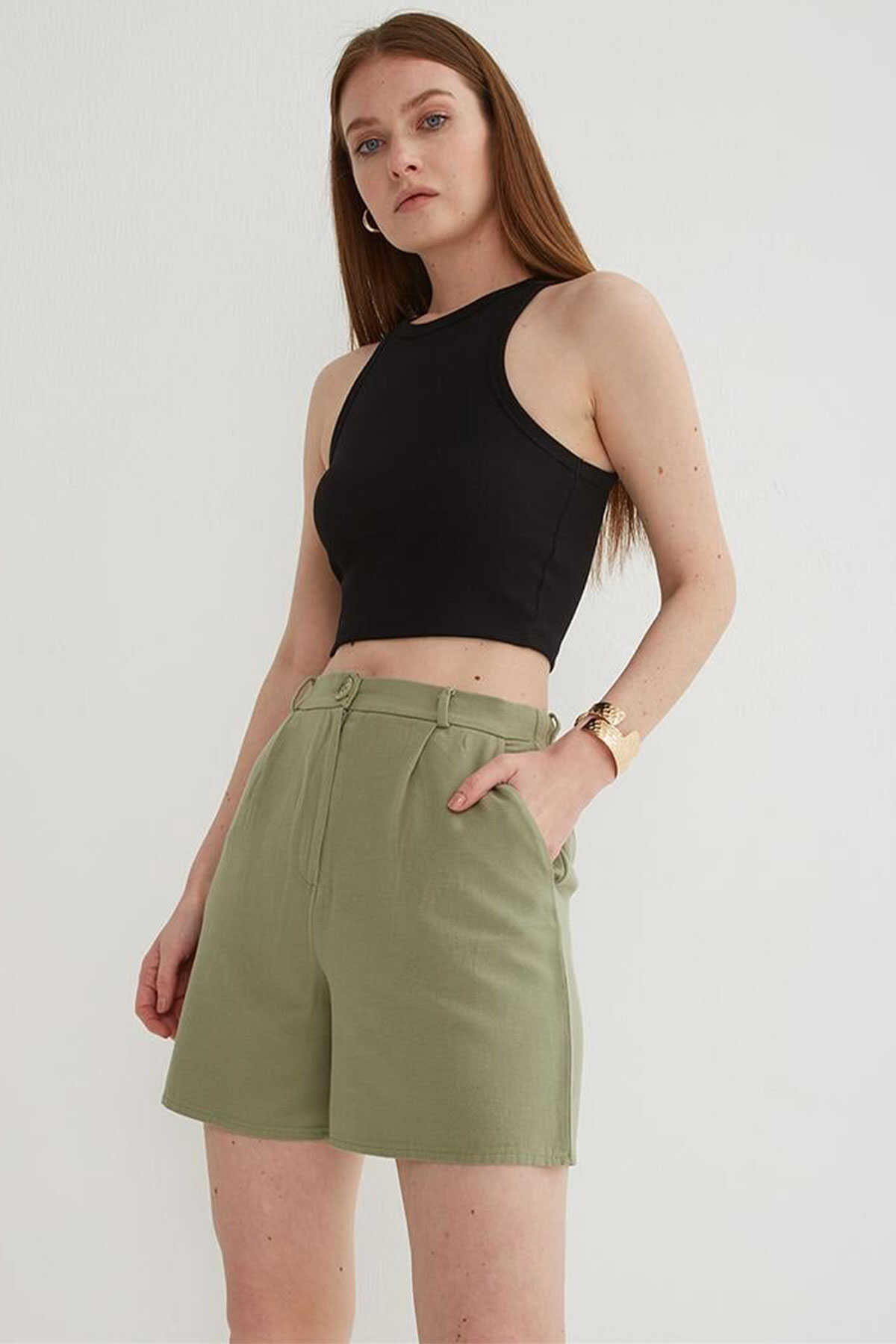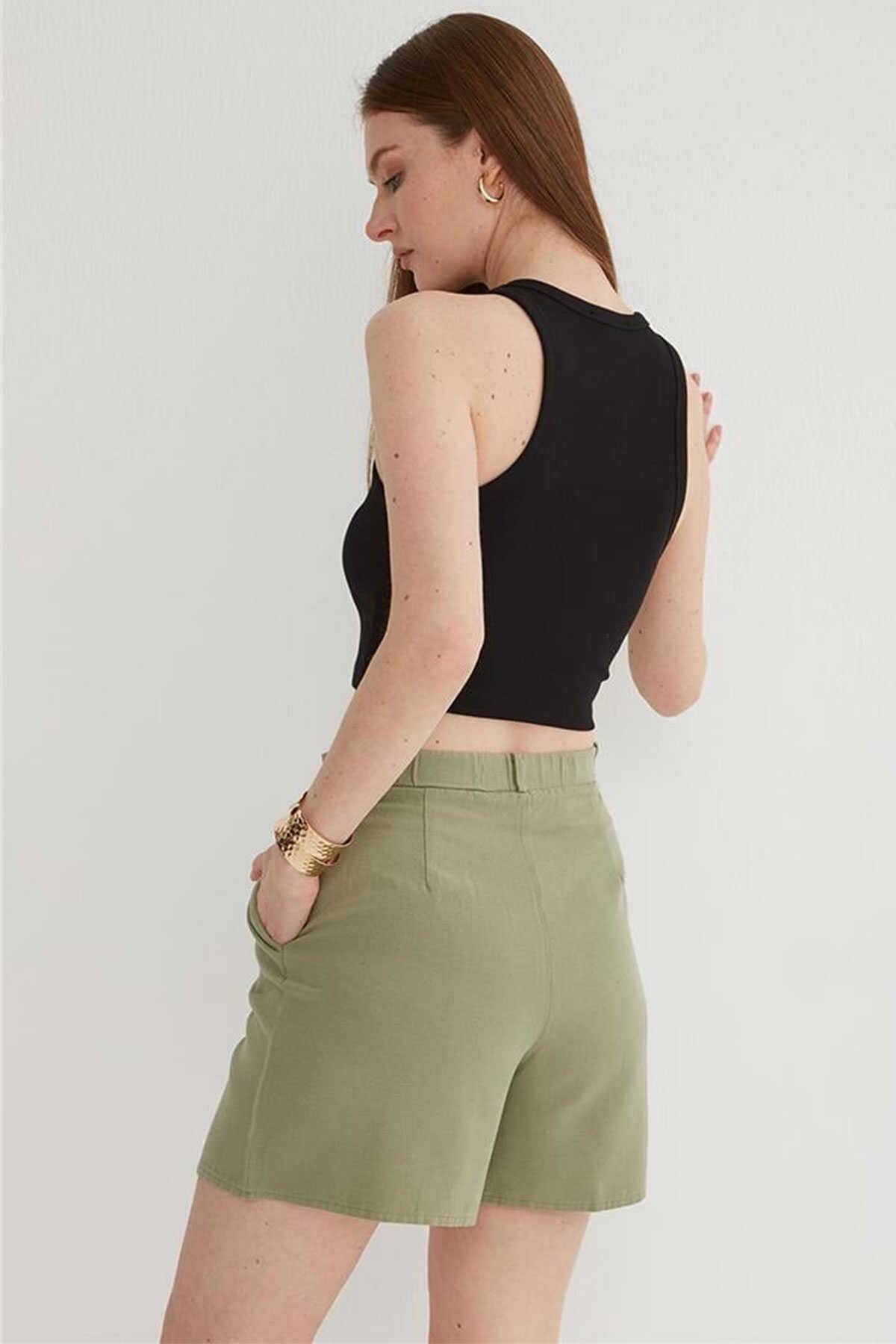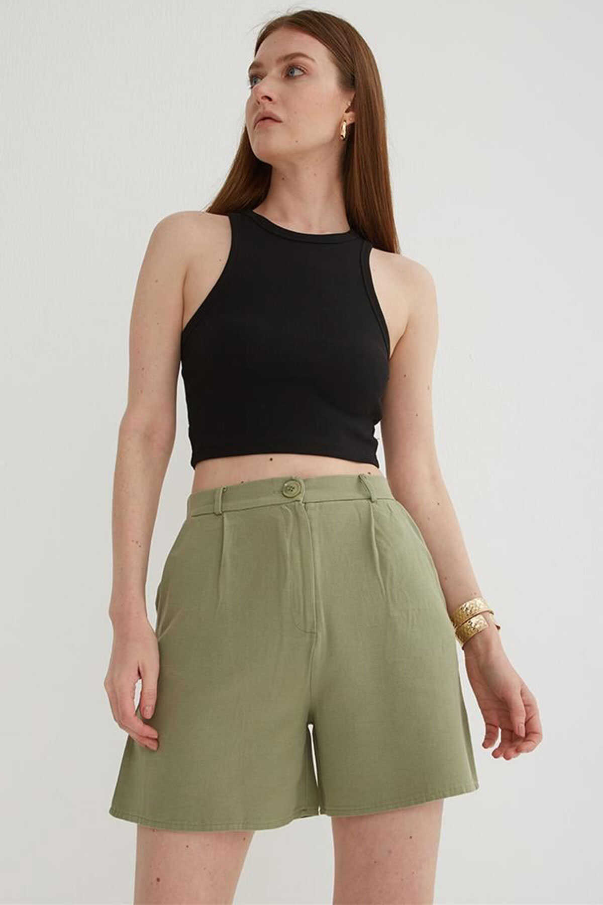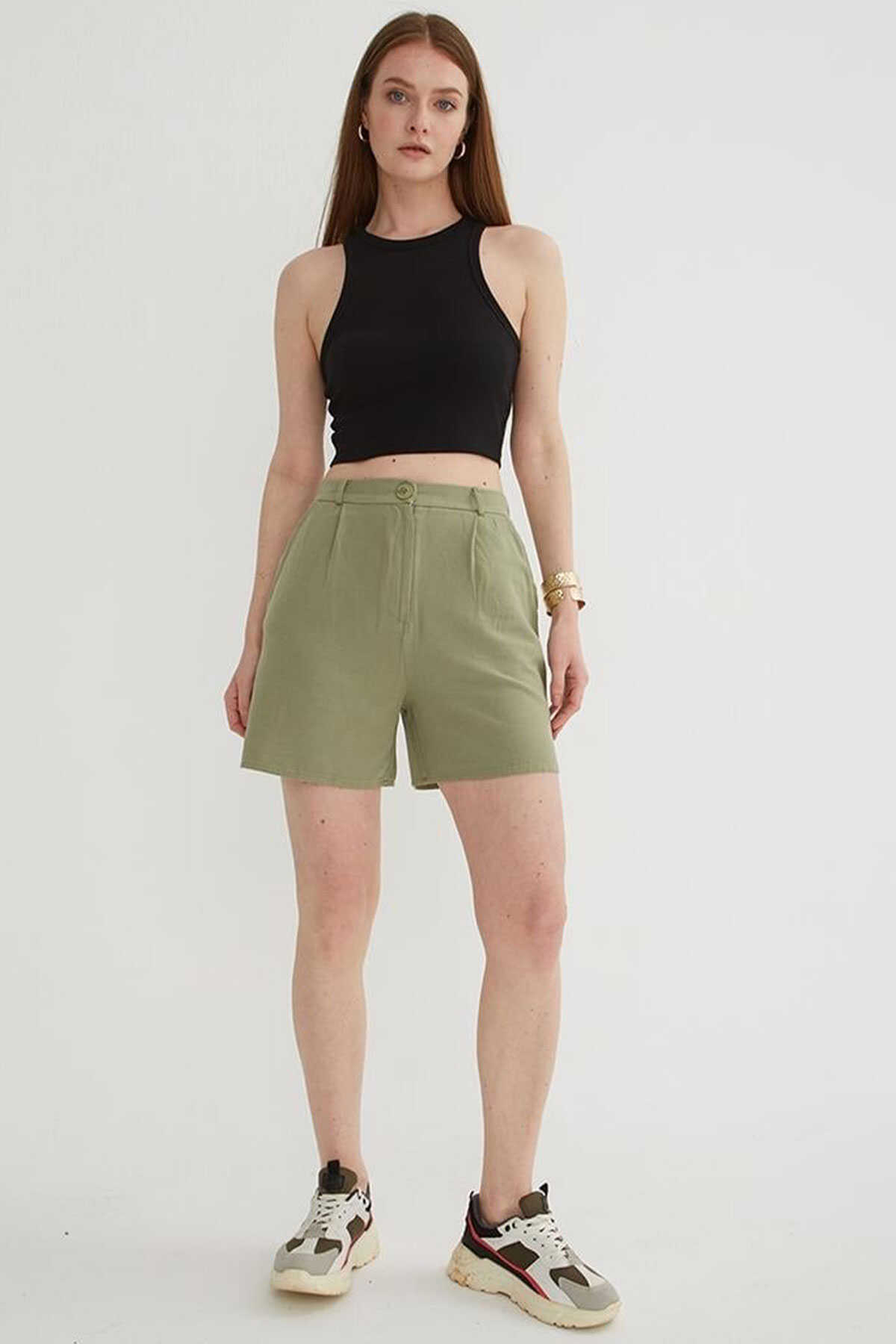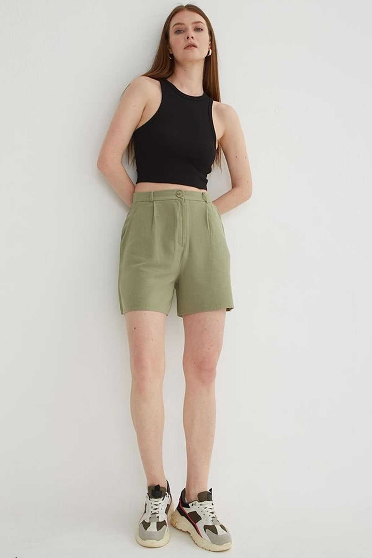 Kadın Pileli Şort 25Y0320K1 Haki