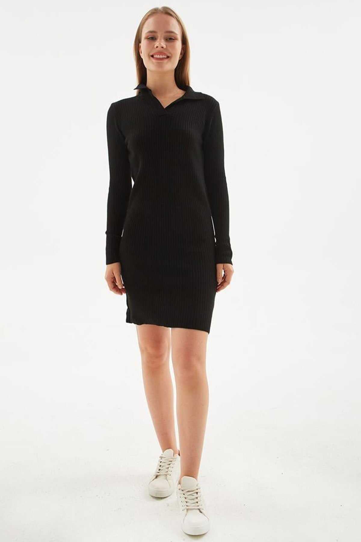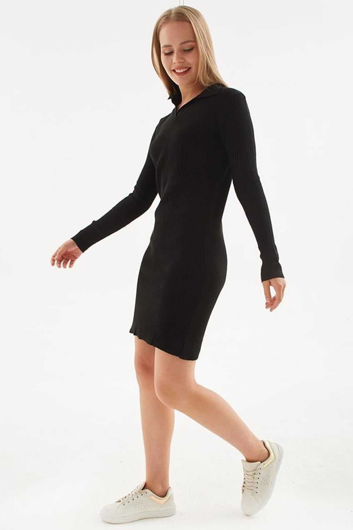 Polo Yaka Elbise | Fashion Friends-Model Ölçüleri: Boy:1.70 Göğüs:90 Bel:68 Basen:90-Mankenin üzerindeki ürün S2836 bedendir.-Cinsiyet: Kadın-Kalıp: Slim-Kumaş: %100 Akrilik-Ürün Tipi: Triko