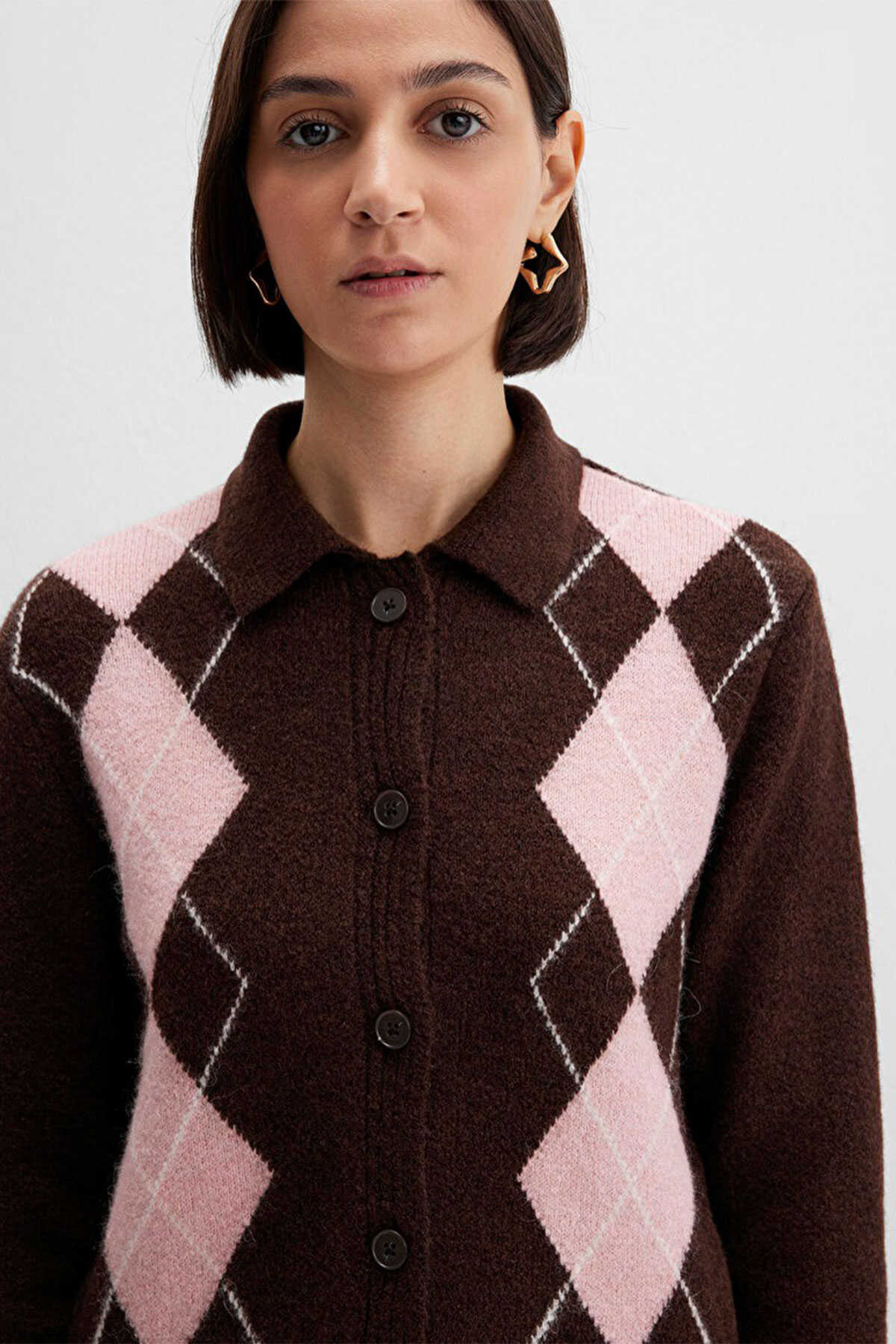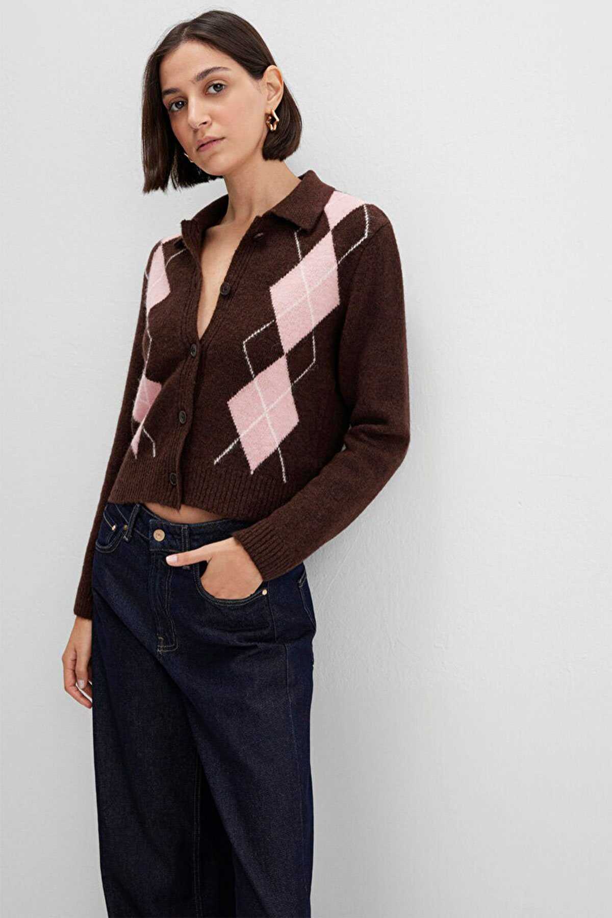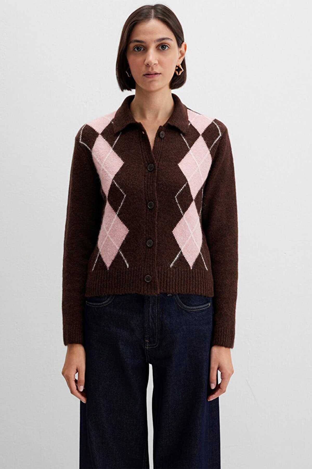 Mavinin kadın koleksiyonundan Yün Karışımlı Baklava Desenli Kahverengi Hırka.-Ürün Kodu: 1710825-70244-Kumaş Bilgileri:-%53 Akrilik -%33 Polyester-%7 Yün (Koyun Yünü)-%7 Alpaka-Menşei: Türkiye-