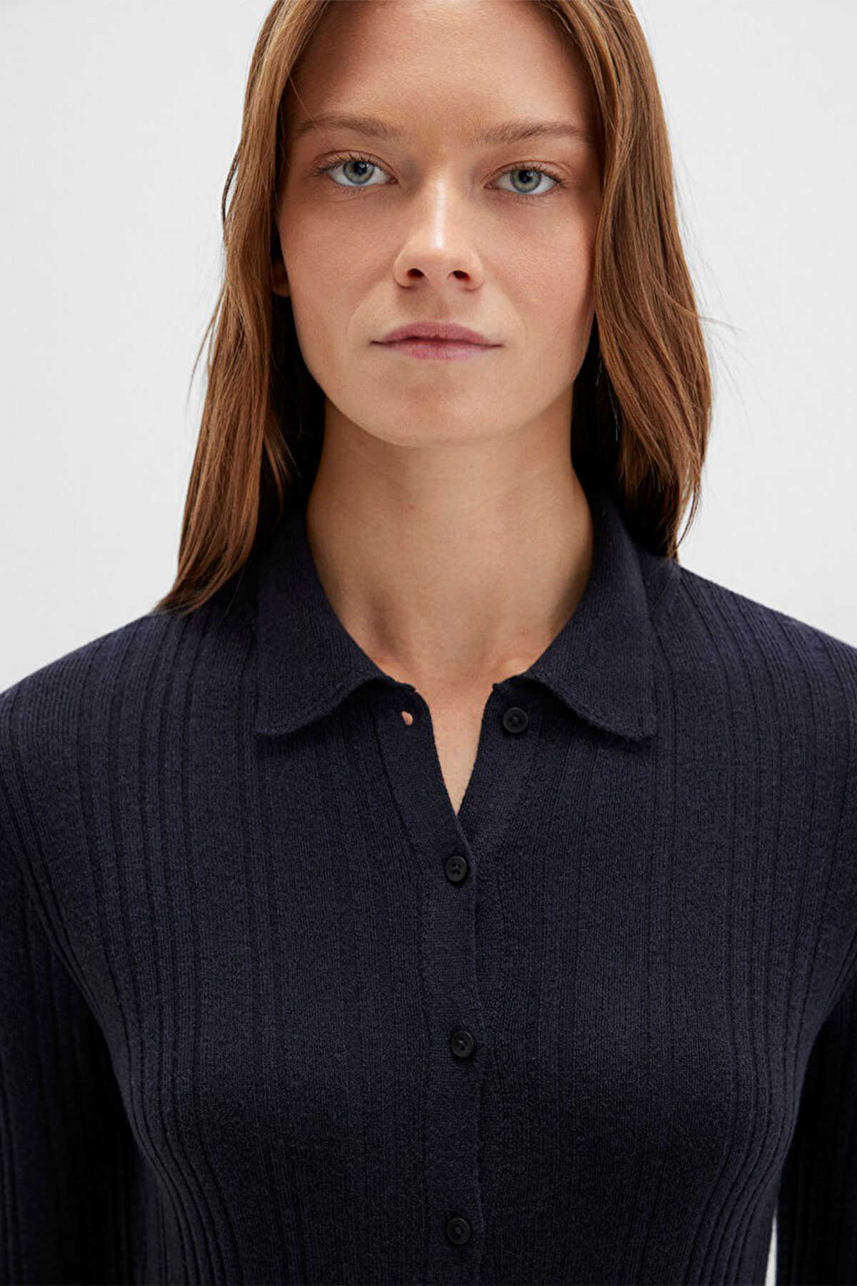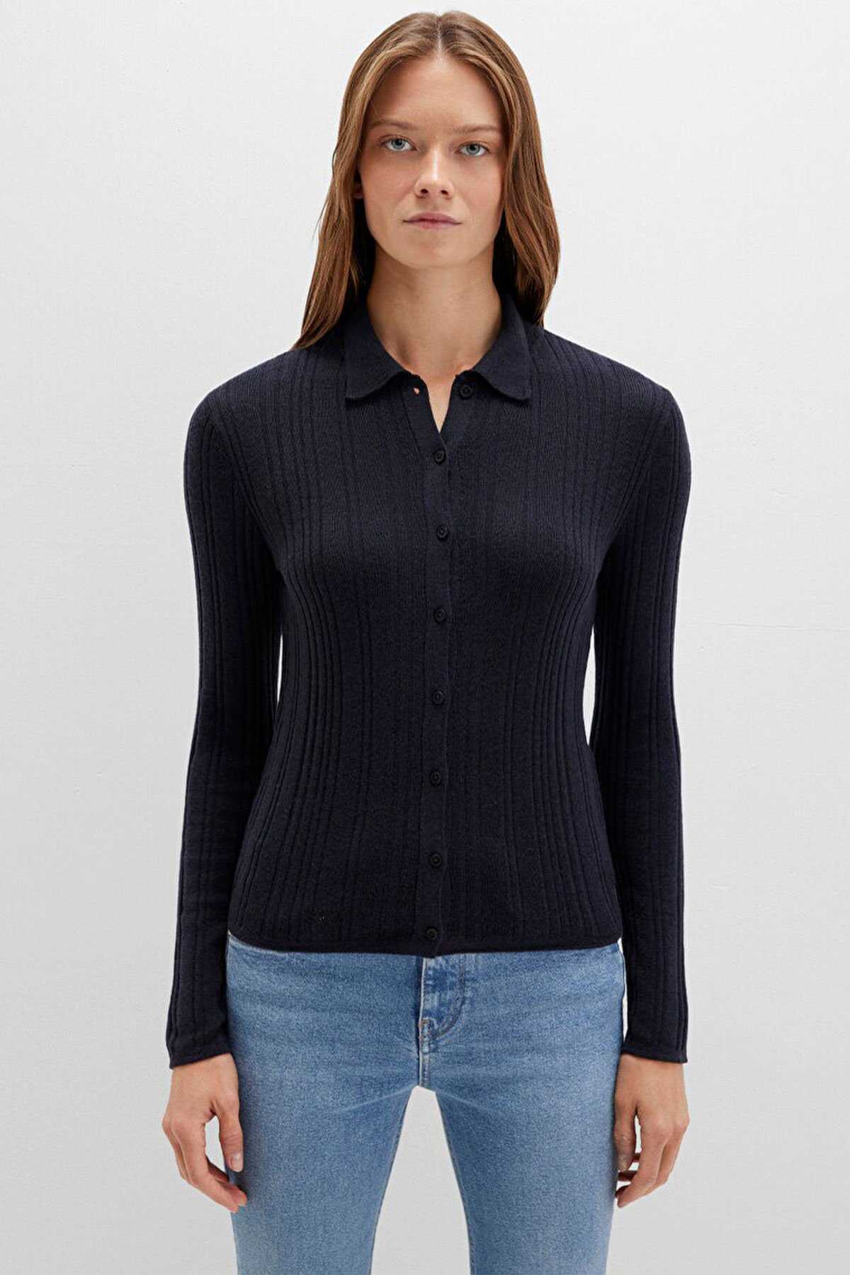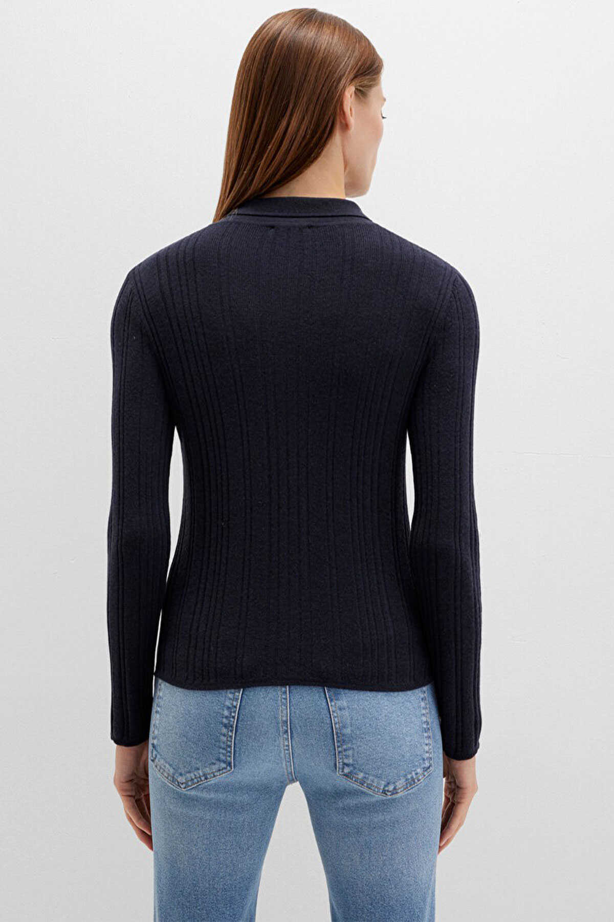 Mavi nin kadın koleksiyonundan Yün Karışımlı Lacivert Triko Polo.-Ürün Kodu: 1710838-70489-Kumaş Bilgileri-%41 Viskoz-%31 Polyamit-%28 Yün (Koyun Yünü)-Menşei: Türkiye-