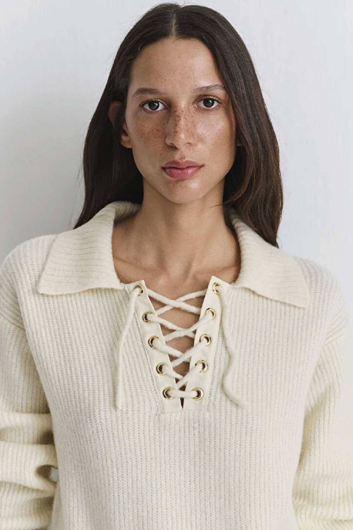 Mavi nin kadın koleksiyonundan Polo Yaka Ekru Kazak.-Regular Fit Normal Kesim-Ürün Kodu: 1710879-80194-Kumaş Bilgileri-%76 Akrilik-%17 Polyester-%7 Elastomultiester-Manken Ölçüleri-Jean: Bel: 26 Boy: 29 Üst: S-Boy: 179 cm Bel: 60 cm Göğüs: 85 cm Kalça: 90 cm-Menşei: Türkiye