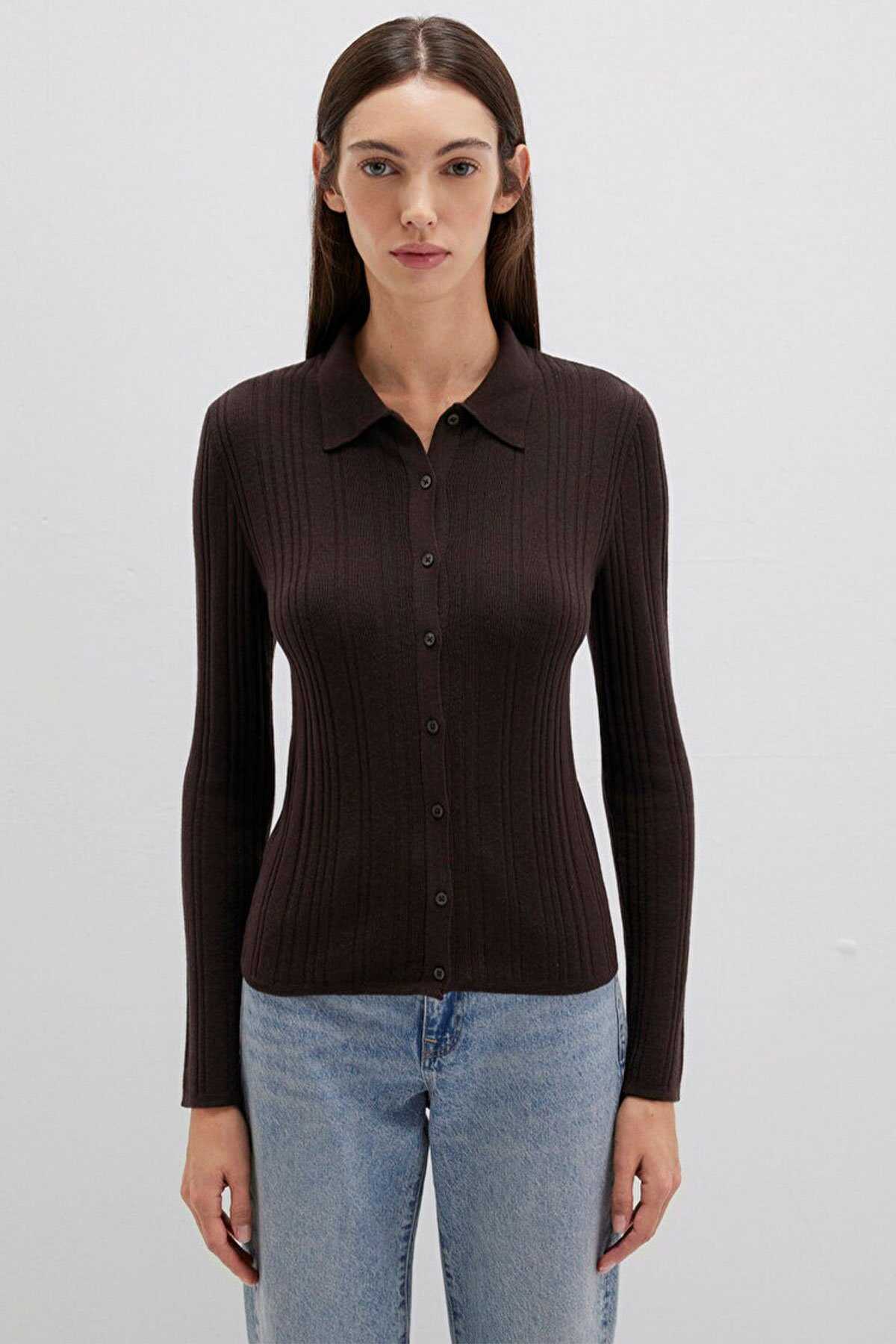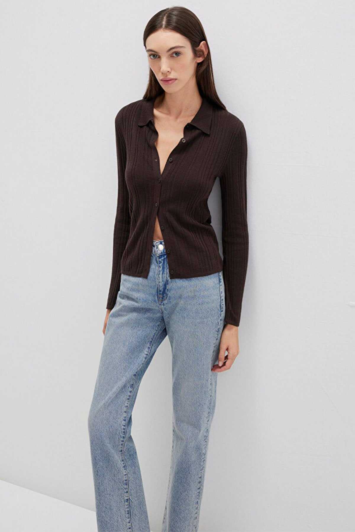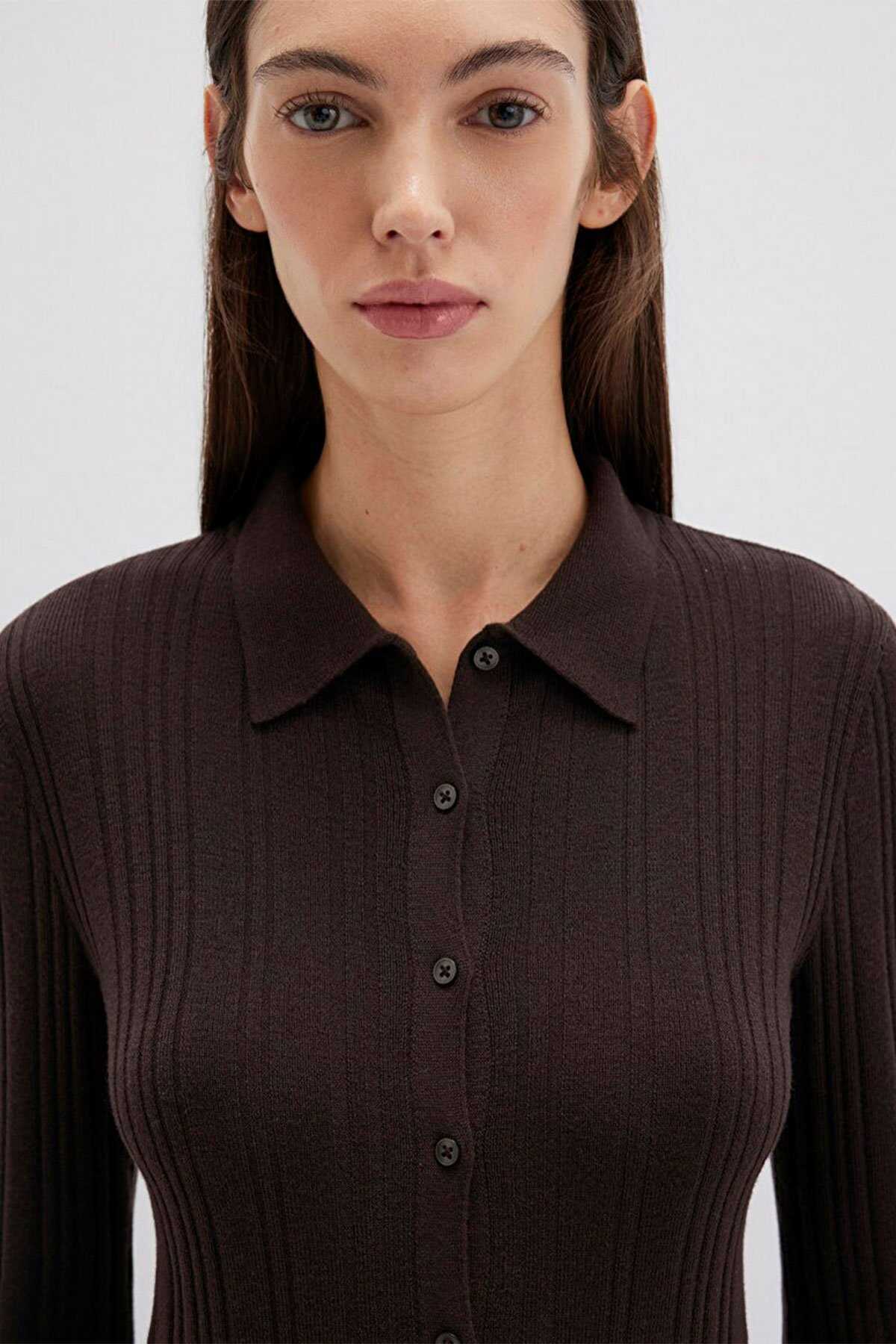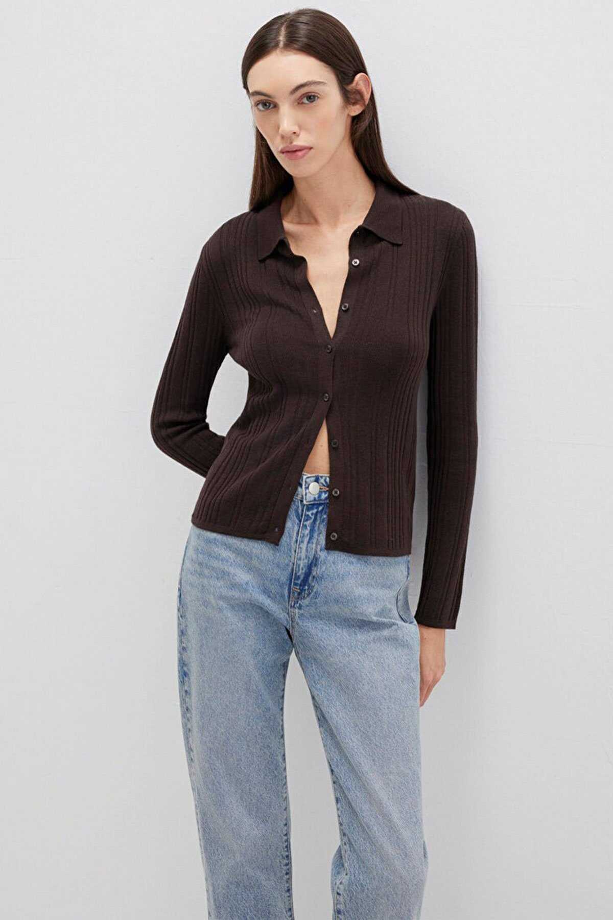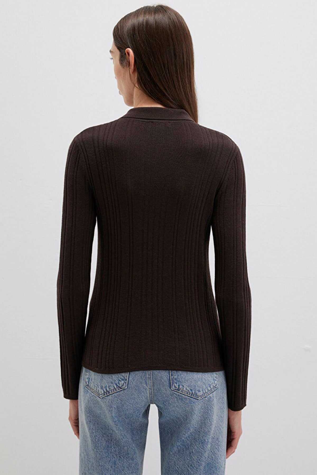 Mavi nin kadın koleksiyonundan Yün Karışımlı Kahverengi Triko Polo.-Ürün Kodu: 1710838-90704-Kumaş Bilgileri-%41 Viskoz-%31 Polyamit-%28 Yün (Koyun Yünü)-Menşei: Türkiye-