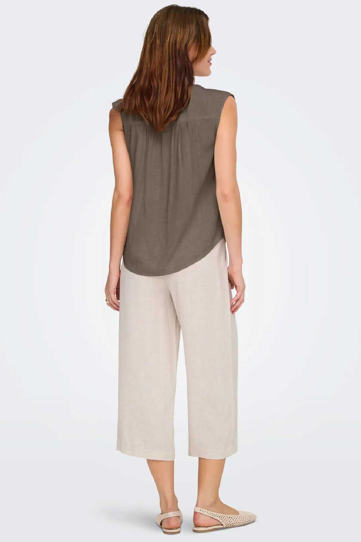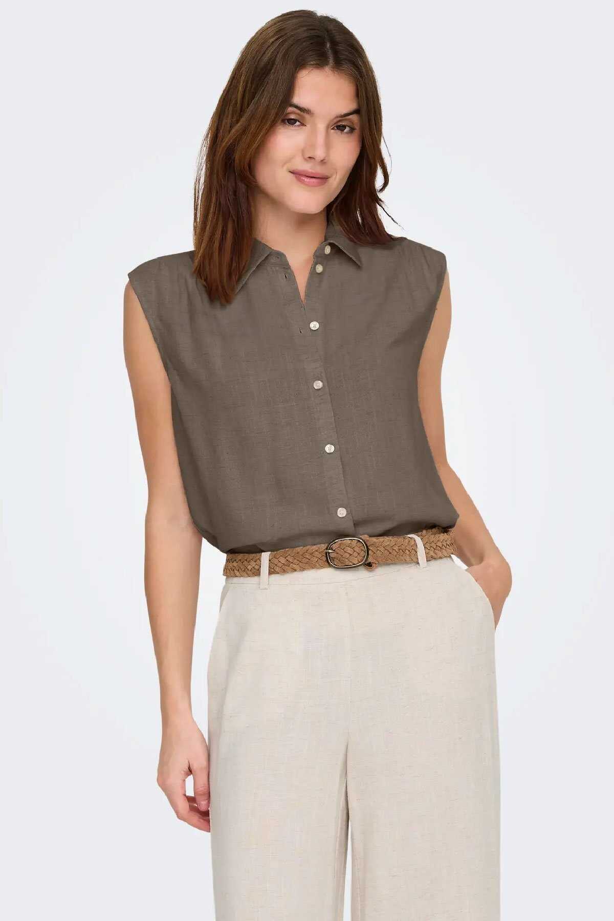 Zamansız kot pantolonlarla veya şık bir etekle kolayca kombinlenebilen kadınsı bir gömlekle gardırobunuza yumuşak renkler ve ince detaylar ekleyin.-Ürün Tipi: Gömlek-Yaka: Gömlek yakası- Kol: Kolsuz- Kapatma: Düğmeli- Kesim: Normal Kesim-Kalite Açıklaması-Cinsiyet: Kadın-Üretim: Dokuma-Üretim Detayı: Kırışık-Bileşim: %80 Viskon %20 Keten-Ürün Kodu: 15367416-Menşei: Kamboçya