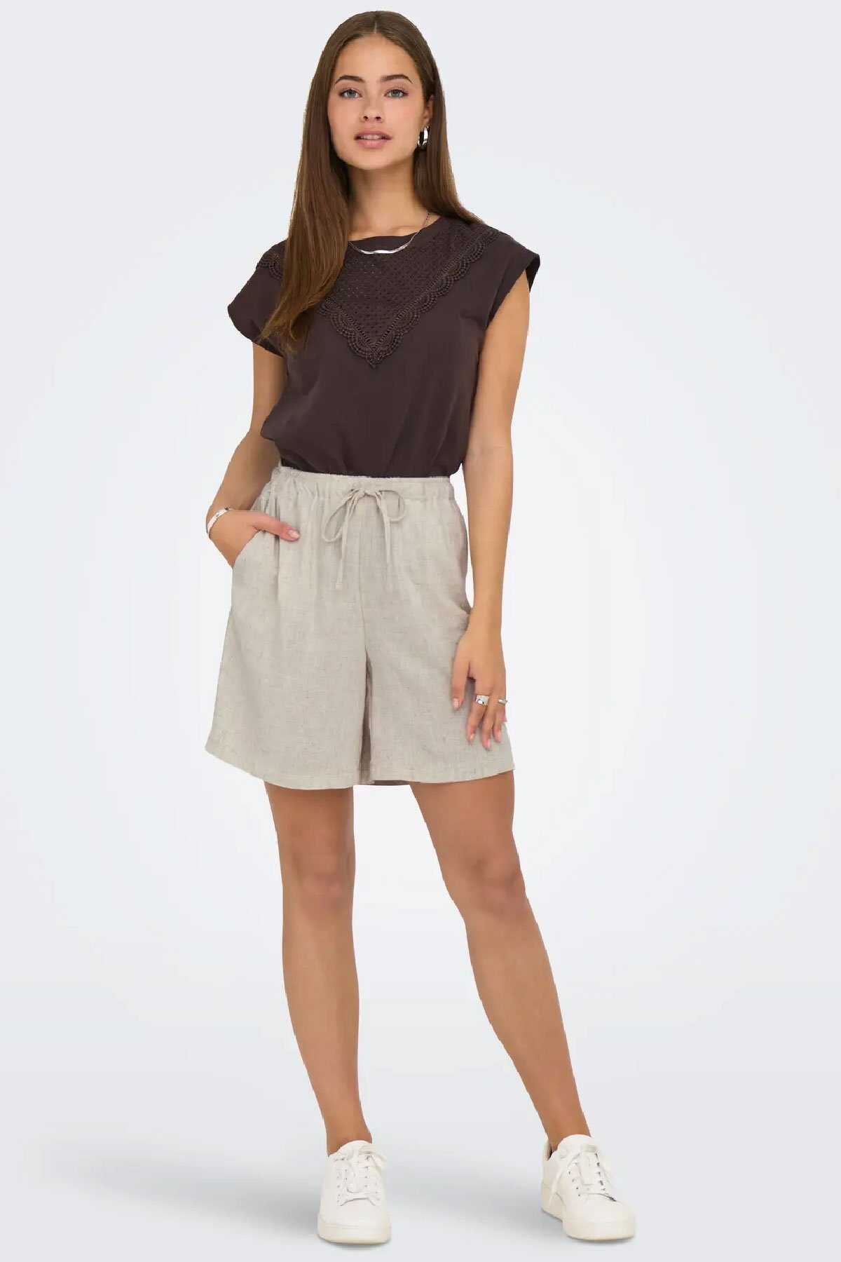 Ürün Türü : Şort- Kapatma : Bağcıklı bağlama- Bel : Orta bel- Kesim : Bol Kesim-%80 Viskon %20 Keten-Ürün Kodu: 15333032-Menşei: Kamboçya