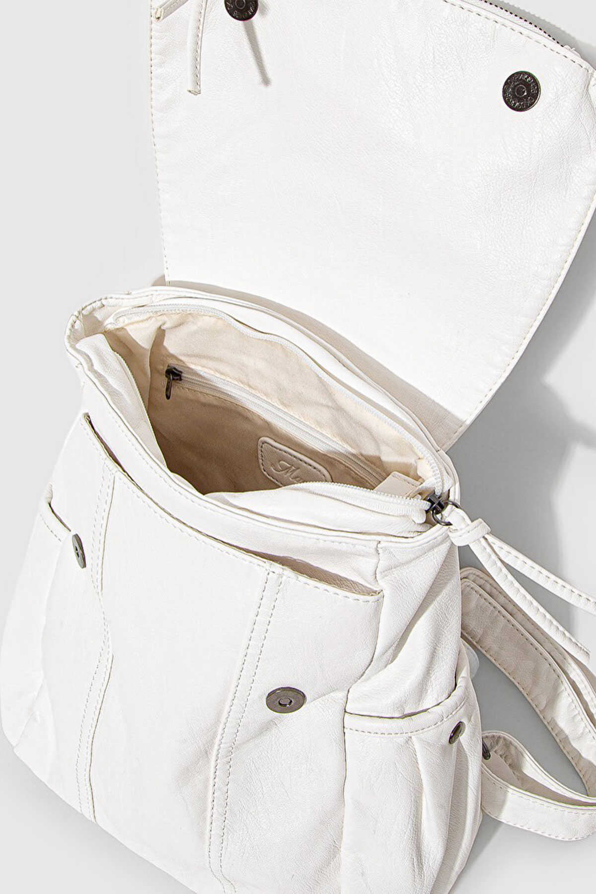 Mavi nin aksesuar koleksiyonundan Beyaz Sırt Çantası. - Mıknatıs ve fermuar kapamalı fermuarlı ve fermuarsız iç cep fermuarsız ön cep iki adet mıknatıs kapamalı yan cep fermuarlı kapak cep uzunluğu ayarlanabilir sabit askı sabit el sapı astarlı. - En 25 cm x Boy 34 cm x Derinlik 12 cm - Ürün Kodu: 1912152-70057 - Kumaş Bilgileri - Kumaş: %100 Poliüretan - Astar: %100 Polyester - Menşei: Malezya