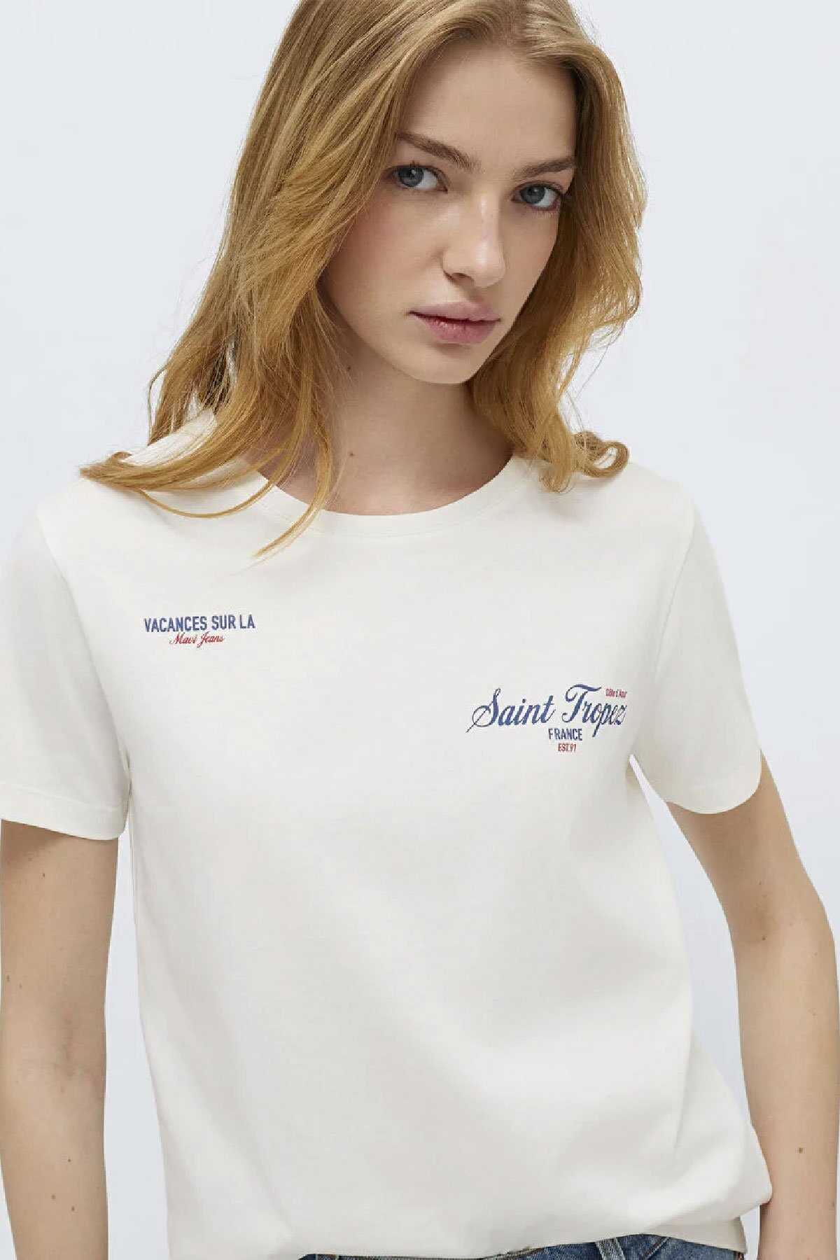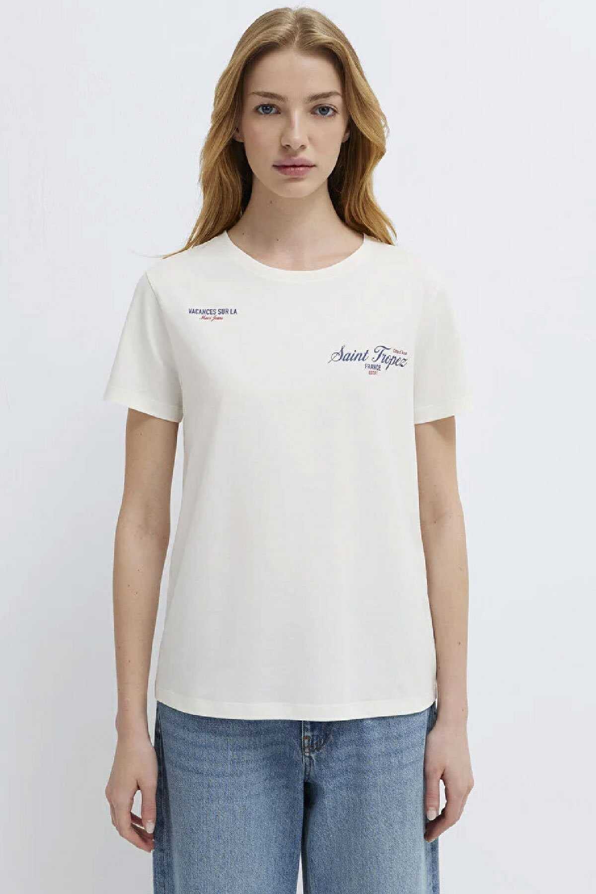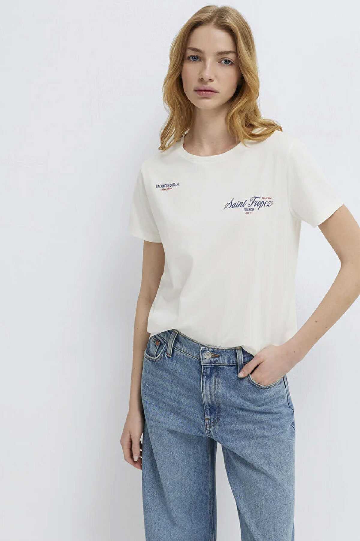 Mavi nin kadın koleksiyonundan Slogan Baskılı Ekru Tişört.-Semi Slim Fit Yarı Dar Kesim-%100 Pamuk-Manken Ölçüleri-Jean: Bel: 26 Boy: 32 Üst: S-Boy: 174 cm Bel: 60 cm Göğüs: 84 cm Kalça: 88 cm-Ürün Kodu: 1613891-80194