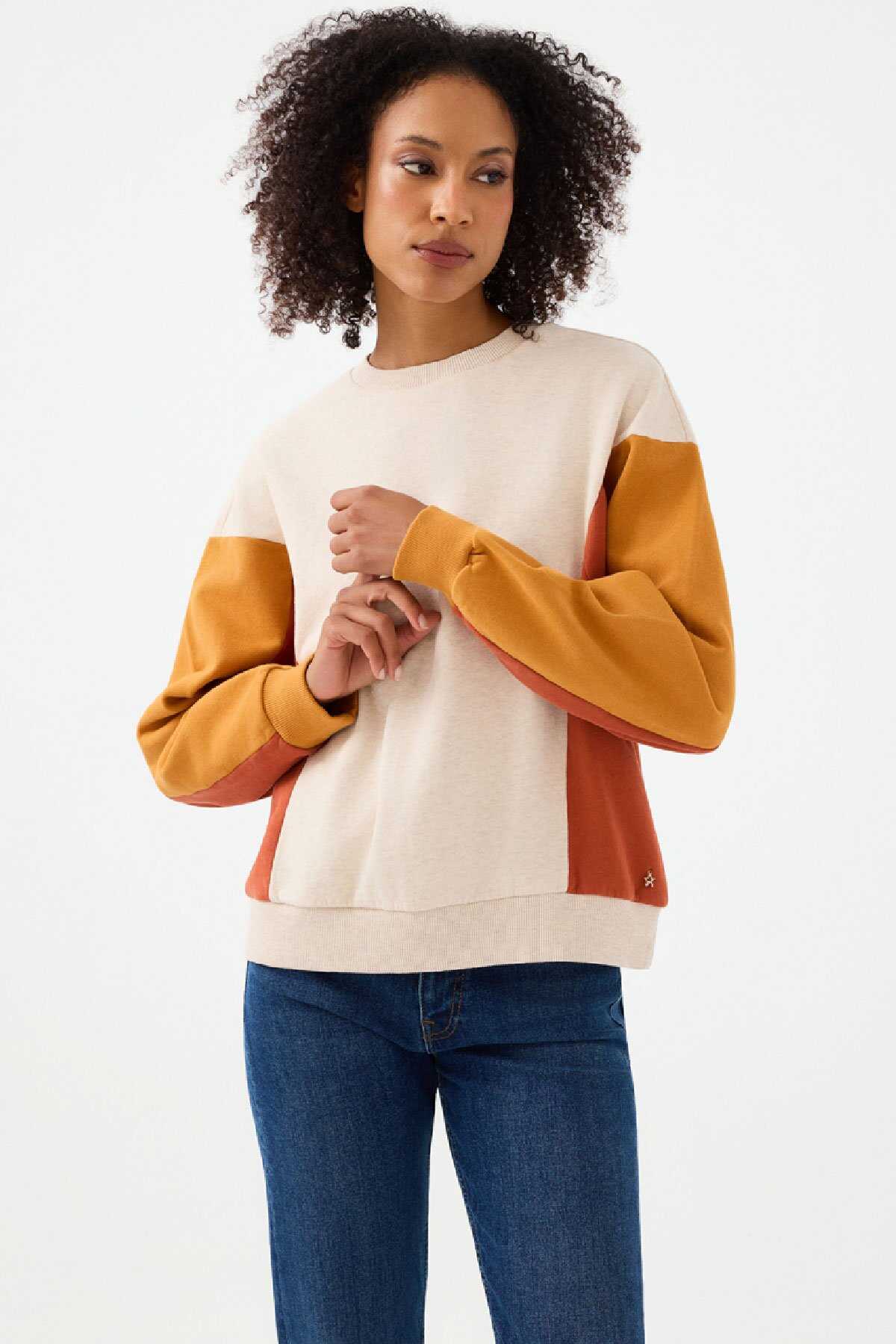 Gardırobun yeni favorisi: Oversize sweatshirt!-Bisiklet yaka ve uzun kollu bu ekru sweatshirt ile sokak modasına meydan oku. -Oversize kesimi sayesinde hareket özgürlüğünü doyasıya yaşa. -%100 pamuk dokusuyla gün boyu yumuşaklığın ve nefes alabilirliğin tadını çıkar.-Ekru sweatshirtünü yüksek bel mom jeanlerle kombinleyerek rahat ve şık bir görünüm yakala.-Metal detaylı bir kemer ve kalın tabanlı sneakerlarla kombini tamamla. -Grunge stilinden ilham alarak stilini konuştur.-Ürün Kodu: LF2040953-Kumaş Özelliği: %100 Pamuk-Cinsiyet: Kadın-Fit: Oversize-Kol Tipi: Uzun Kol-Tema: Soul-Menşei: Türkiye