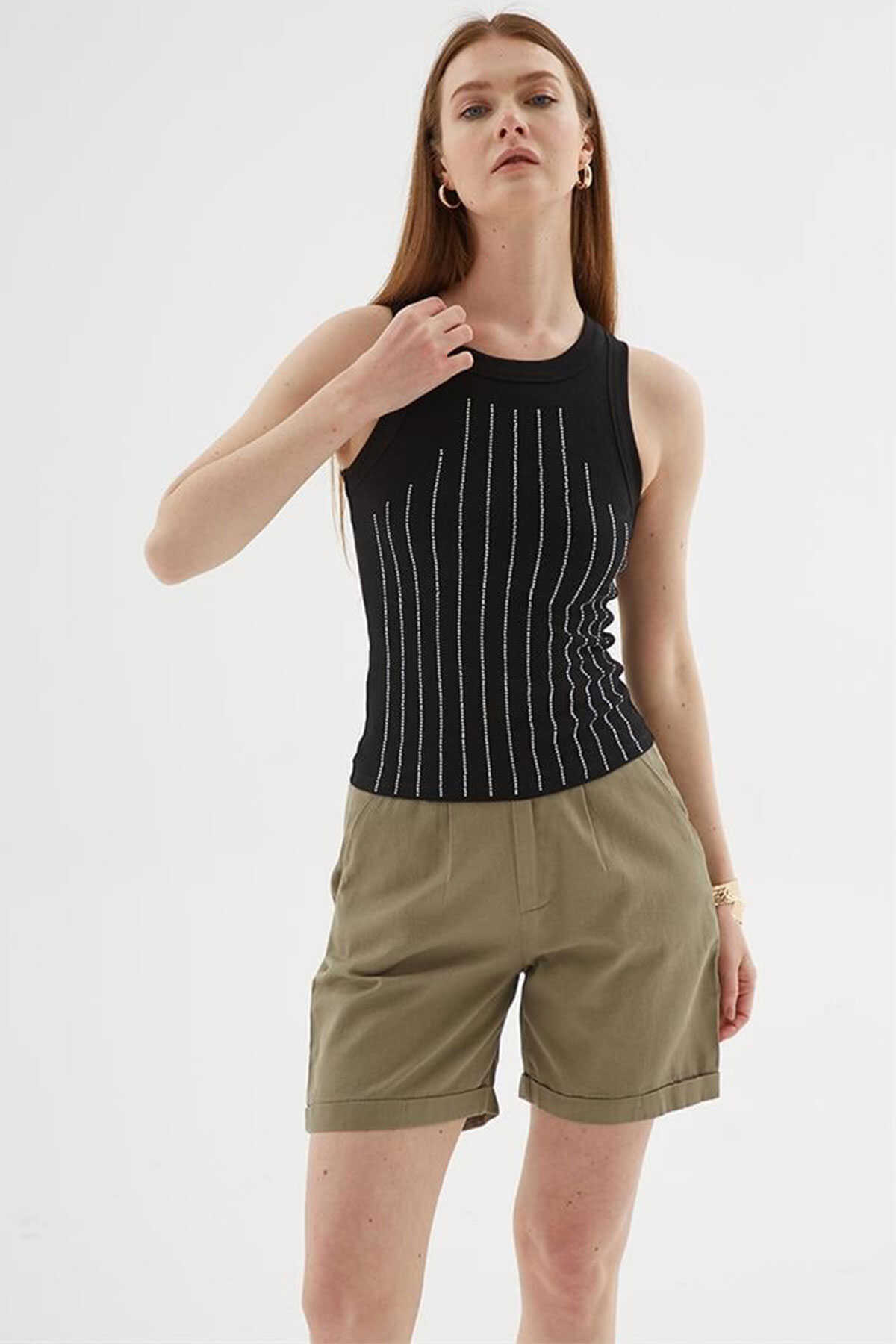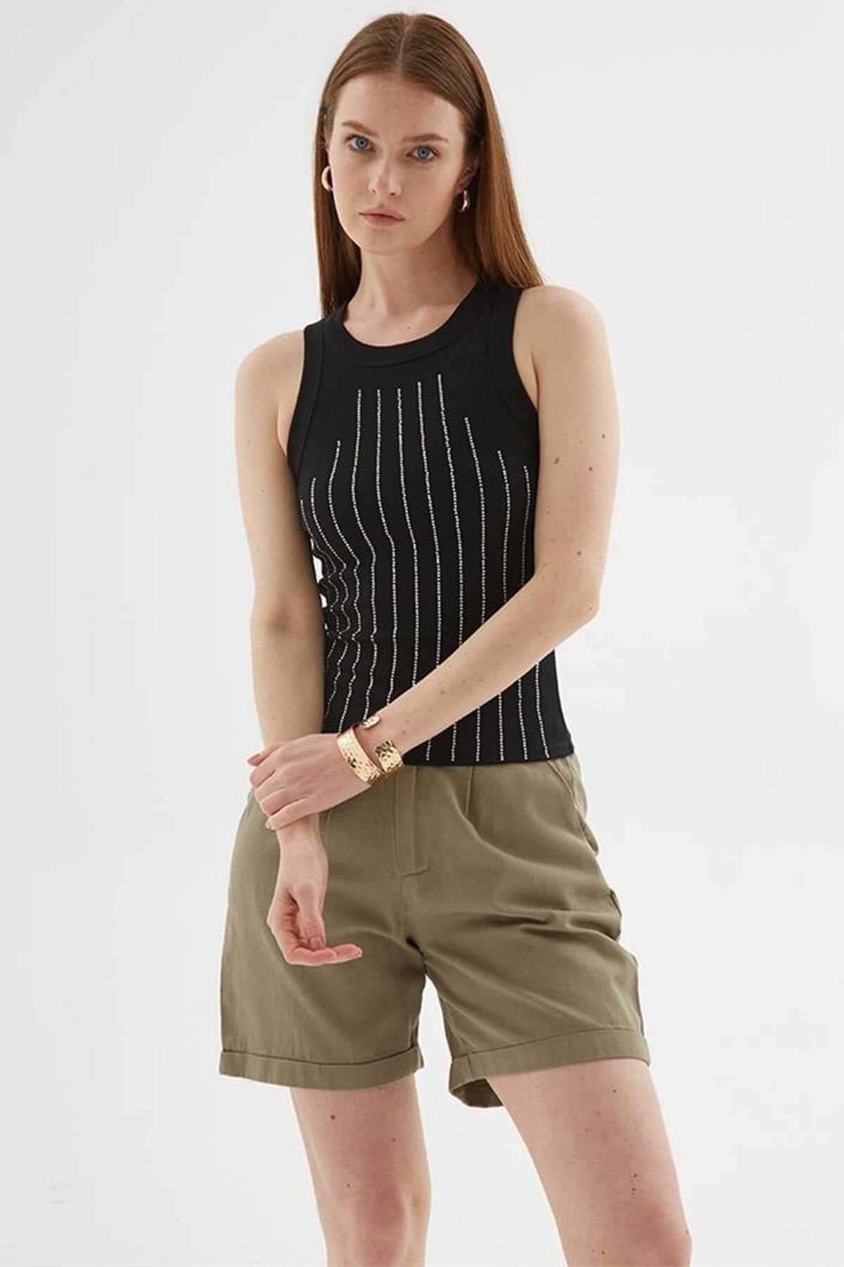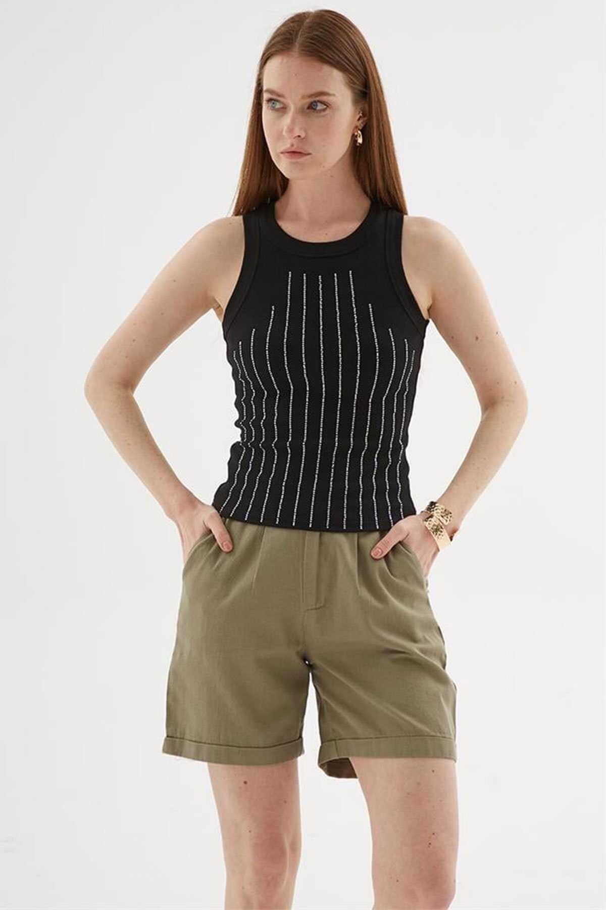 Taşlı Atlet -Model Ölçüleri: Boy:1.70 Göğüs:90 Bel:68 Basen:90-Mankenin üzerindeki ürün S2836 bedendir.-Cinsiyet: Kadın-Kalıp: Normal-Kumaş: %96 Pamuk %4 Elastan-Ürün Tipi: Örme-Ürün Kodu: 25Y0518K1-Menşei: Türkiye