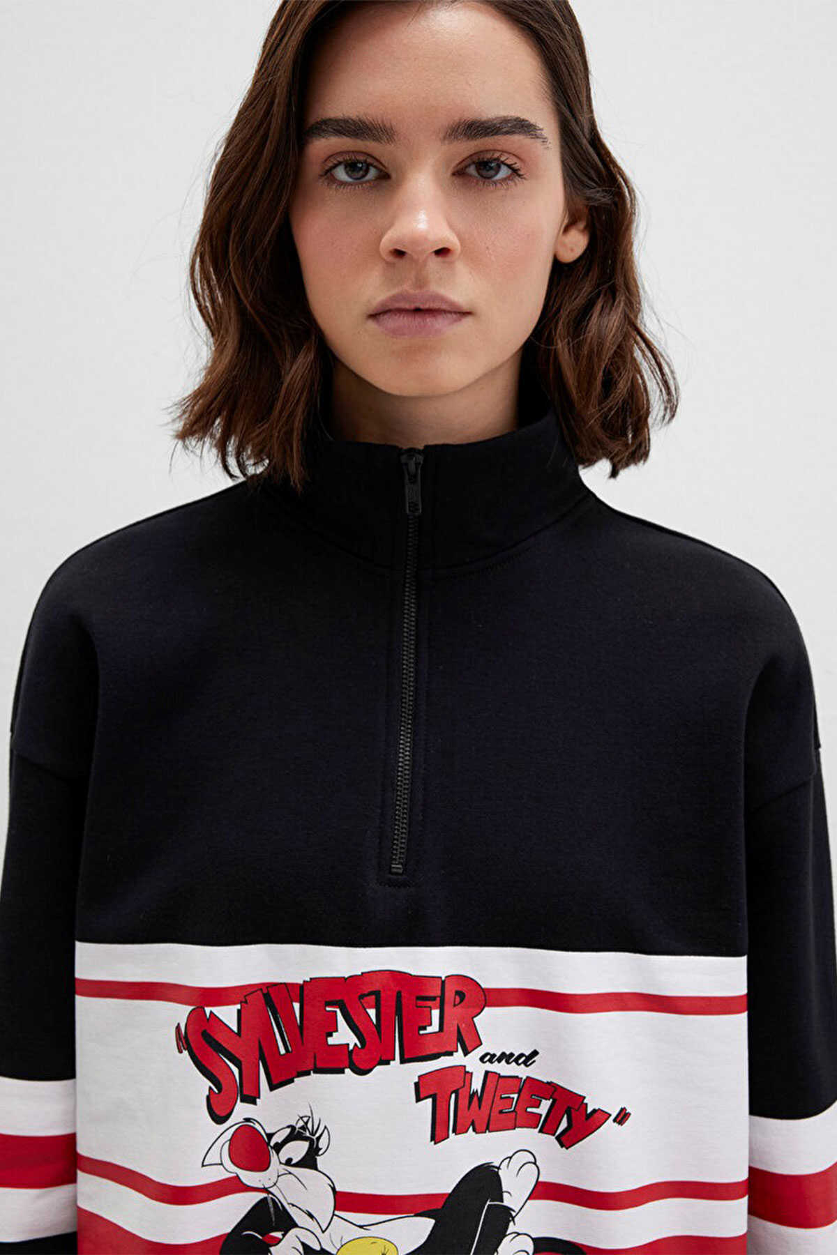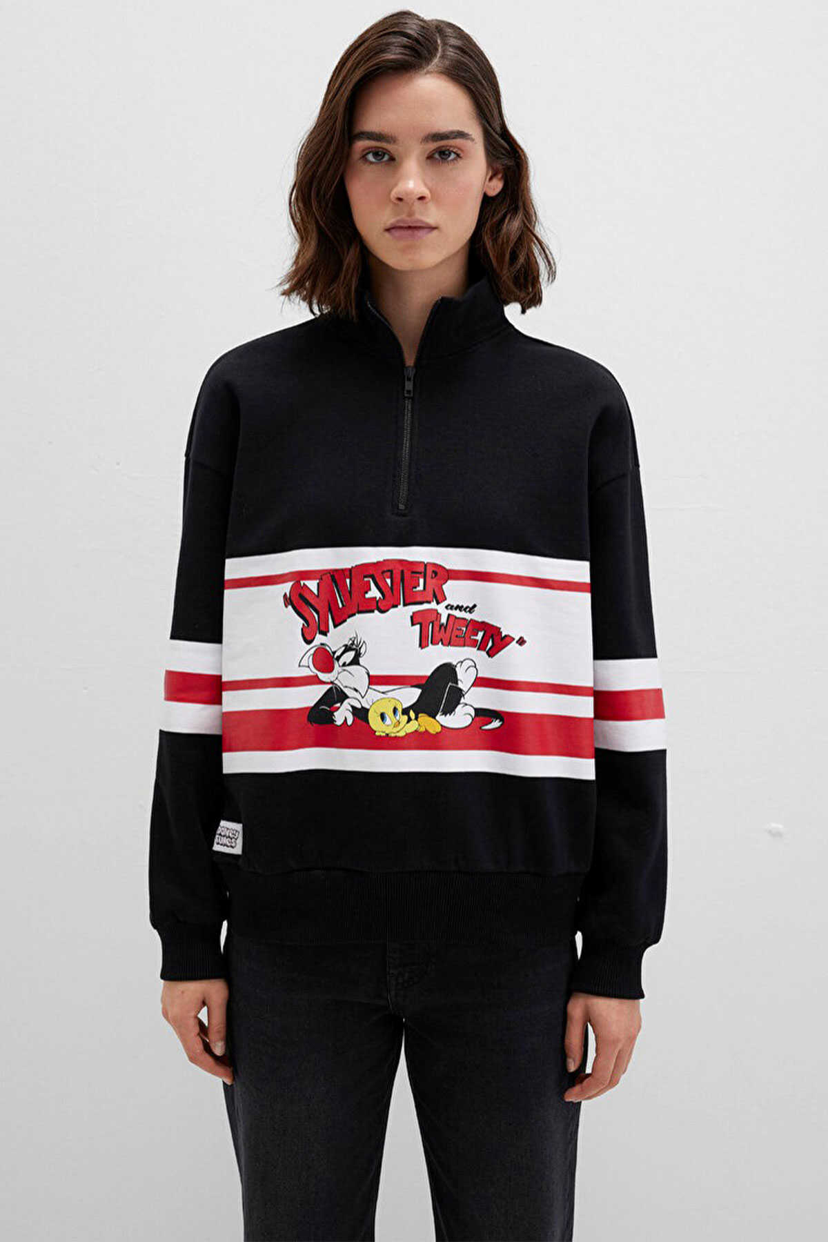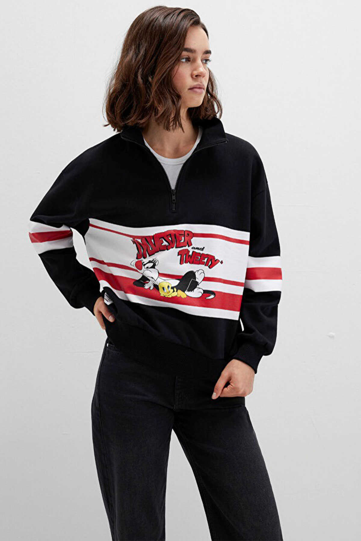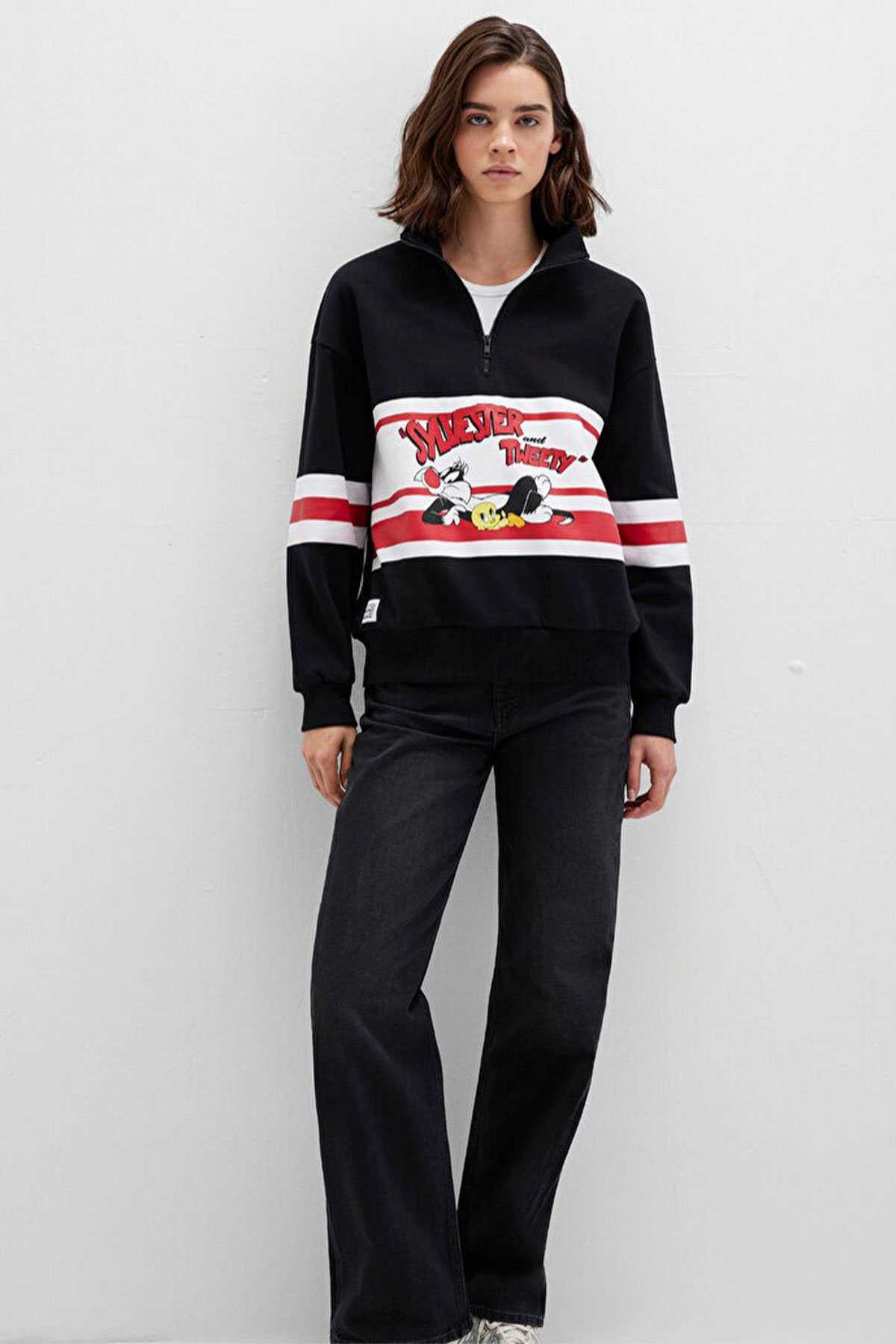 Mavi nin Lisanslı Ürünler koleksiyonundan Tom And Jerry Baskılı Siyah Sweatshirt. -Şardonlu yarı fermuarlı dik yaka.-Ürün Kodu: 1S10472-900-Kumaş Bilgiler-i%68 Pamuk-%32 Polyester-Menşei: Türkiye-