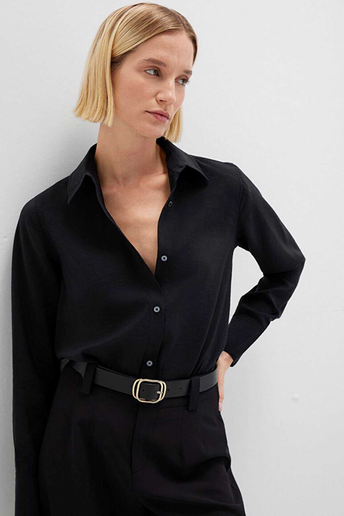 Mavi nin kadın koleksiyonundan Siyah Gömlek. - Regular Fit Normal Kesim - Ürün Kodu: 1211374-900 - Manken Ölçüleri - Alt: Bel: S Üst: S - Boy: 177 cm Bel: 61 cm Göğüs: 82 cm Kalça: 89.5 cm - Menşei: Türkiye