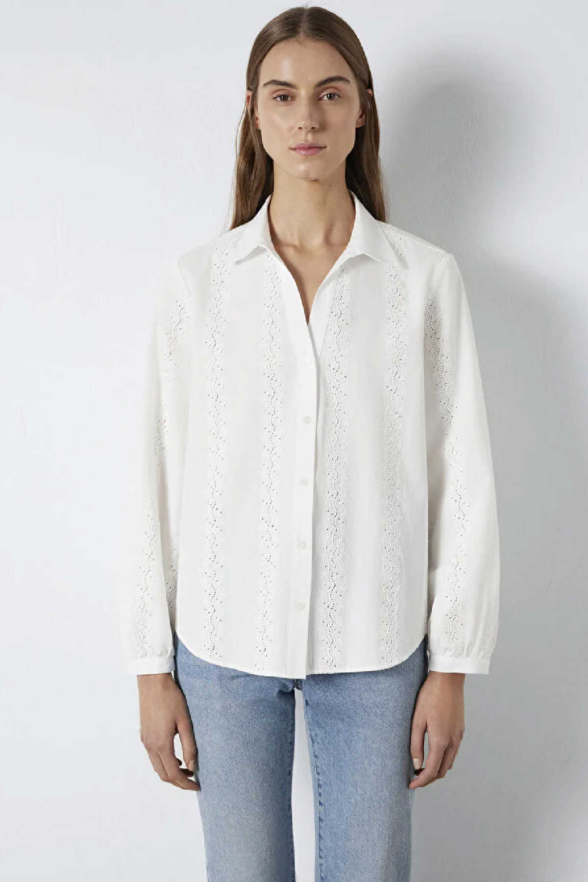 Mavi nin kadın koleksiyonundan Nakış Detaylı Beyaz Gömlek.-Regular Fit Normal Kesim-Ürün Kodu: 1211380-70057-Kumaş Bilgileri-%100 Pamuk-Manken Ölçüleri-Jean: Bel: 26 Boy: 32 Üst: S-Boy: 180 cm Bel: 60 cm Göğüs: 79 cm Kalça: 89 cm-Menşei: Türkiye