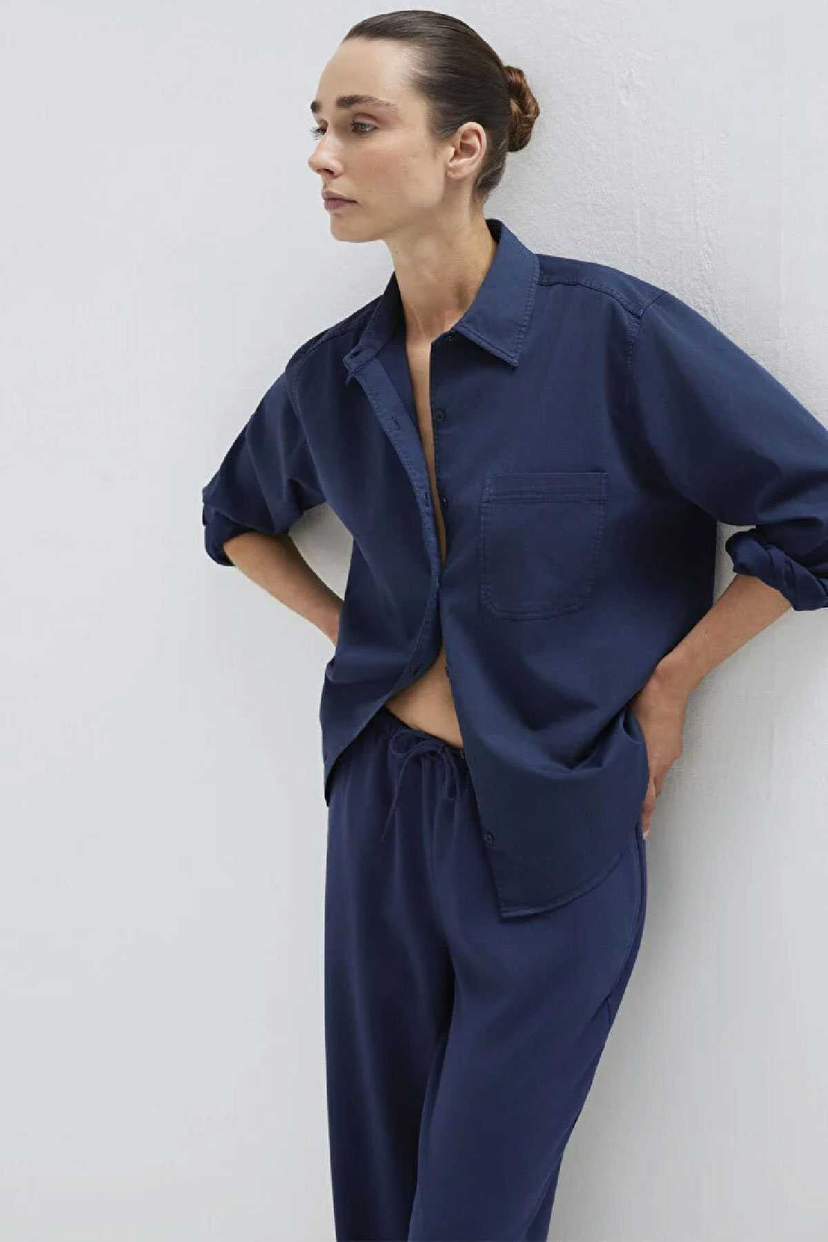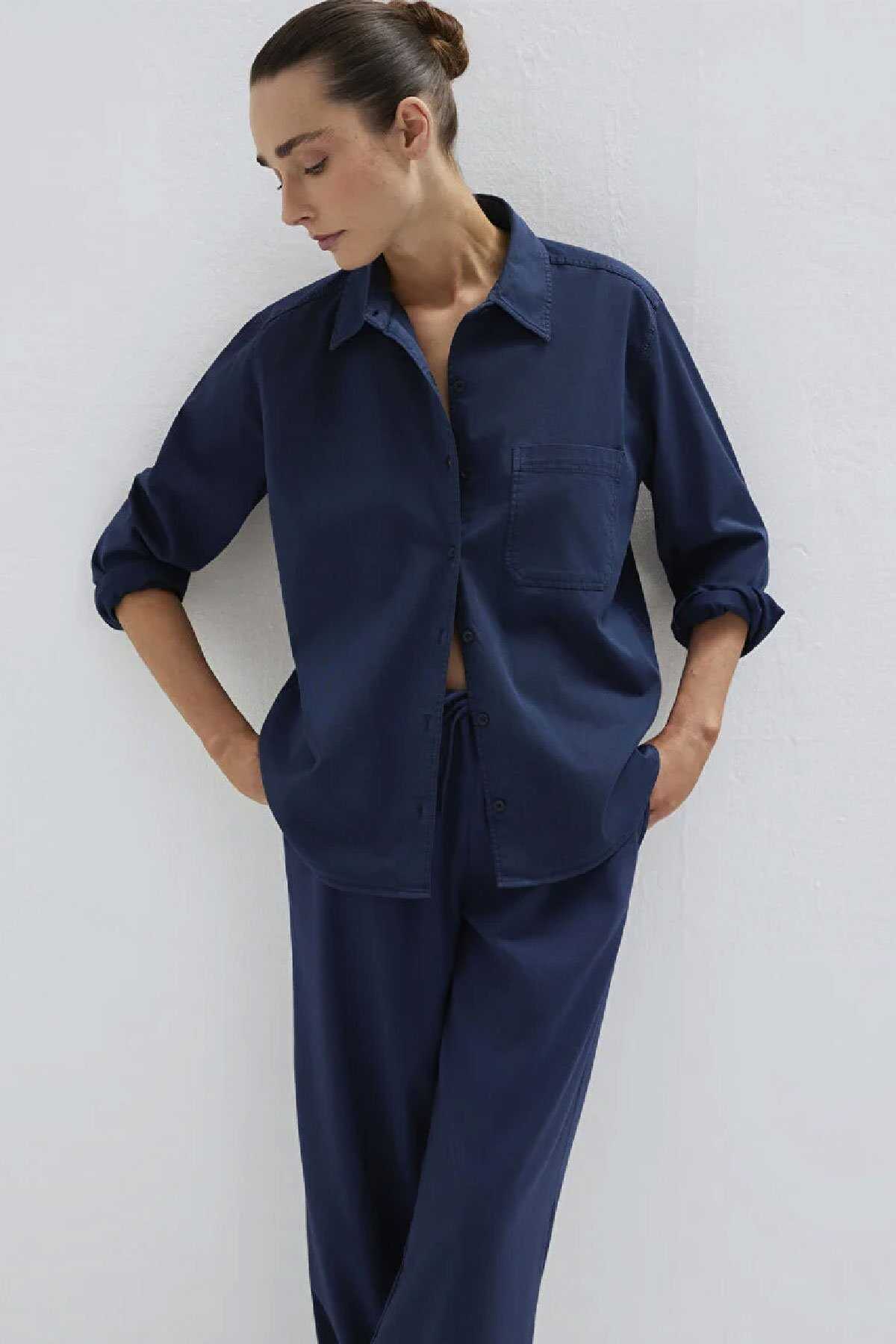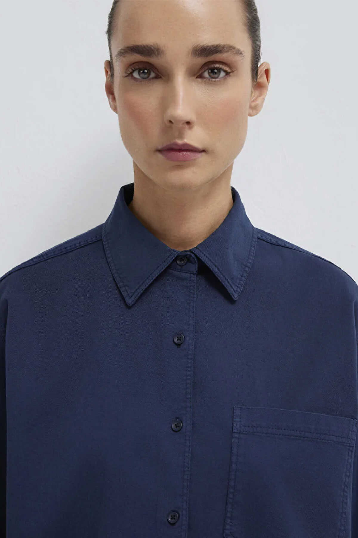 Mavi nin kadın koleksiyonundan Cepli Lacivert Gömlek.-Loose Fit Bol Rahat Kesim-Ürün Kodu: 1211385-70497-Kumaş Bilgileri-%52 Pamuk-%45 Viskoz-%3 Elastan-Manken Ölçüleri-Alt: Bel: S Üst: S-Boy: 176 cm Bel: 59 cm Göğüs: 80 cm Kalça: 88 cm-Menşei: Türkiye