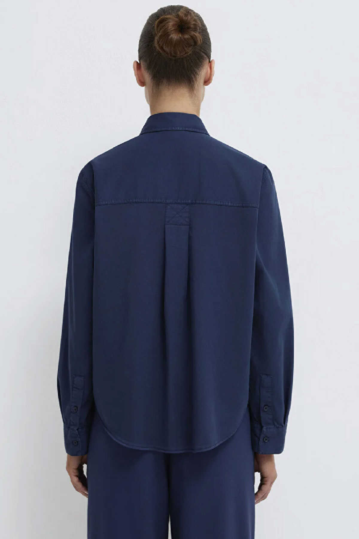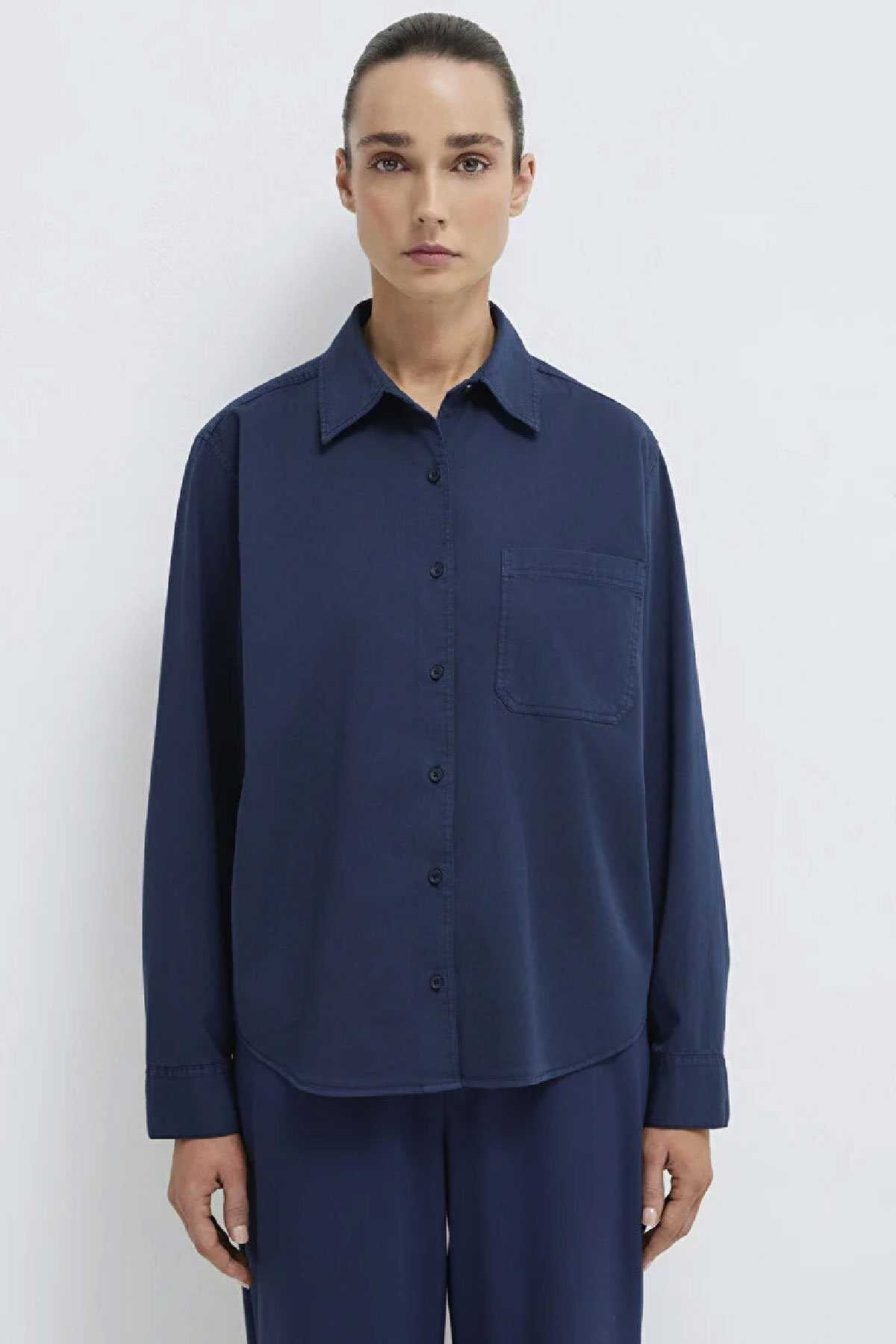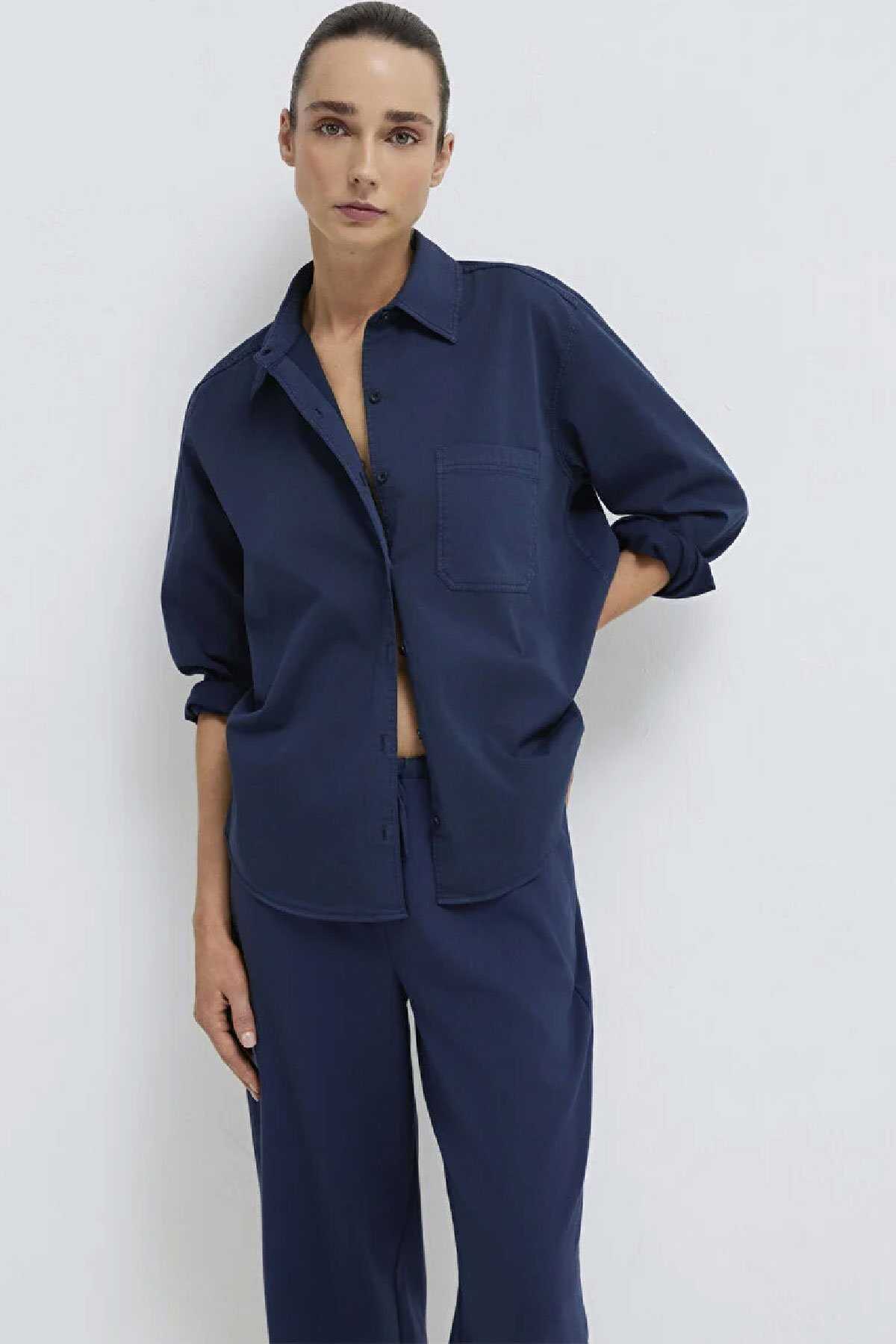 Mavi nin kadın koleksiyonundan Cepli Lacivert Gömlek.-Loose Fit Bol Rahat Kesim-Ürün Kodu: 1211385-70497-Kumaş Bilgileri-%52 Pamuk-%45 Viskoz-%3 Elastan-Manken Ölçüleri-Alt: Bel: S Üst: S-Boy: 176 cm Bel: 59 cm Göğüs: 80 cm Kalça: 88 cm-Menşei: Türkiye