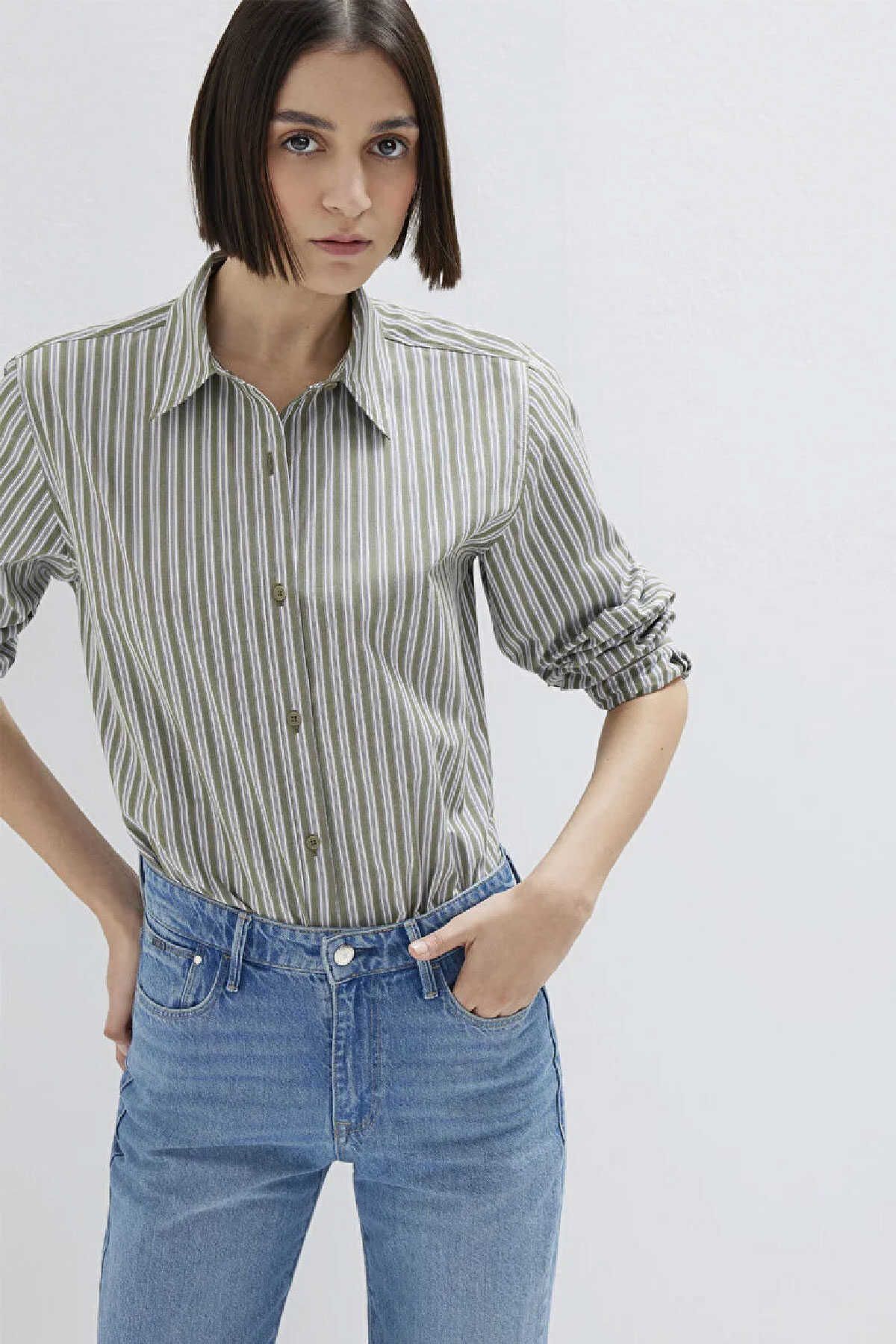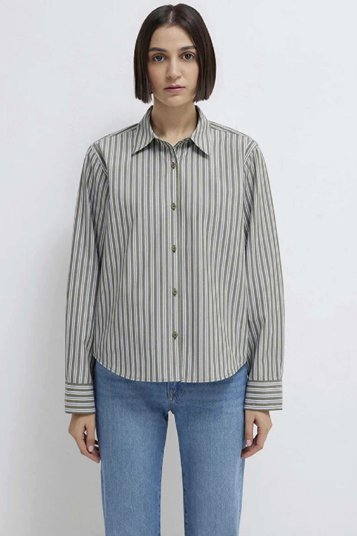Mavi nin kadın koleksiyonundan Çizgili Yeşil Gömlek.-Loose Fit Bol Rahat Kesim-Ürün Kodu: 1211386-85171-Kumaş Bilgileri-%100 Pamuk-Manken Ölçüleri-Jean: Bel: 26 Boy: 32 Üst: S-Boy: 180 cm Bel: 60 cm Göğüs: 81 cm Kalça: 88 cm-Menşei: Türkiye