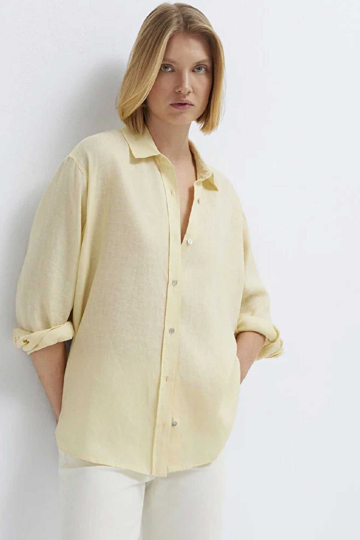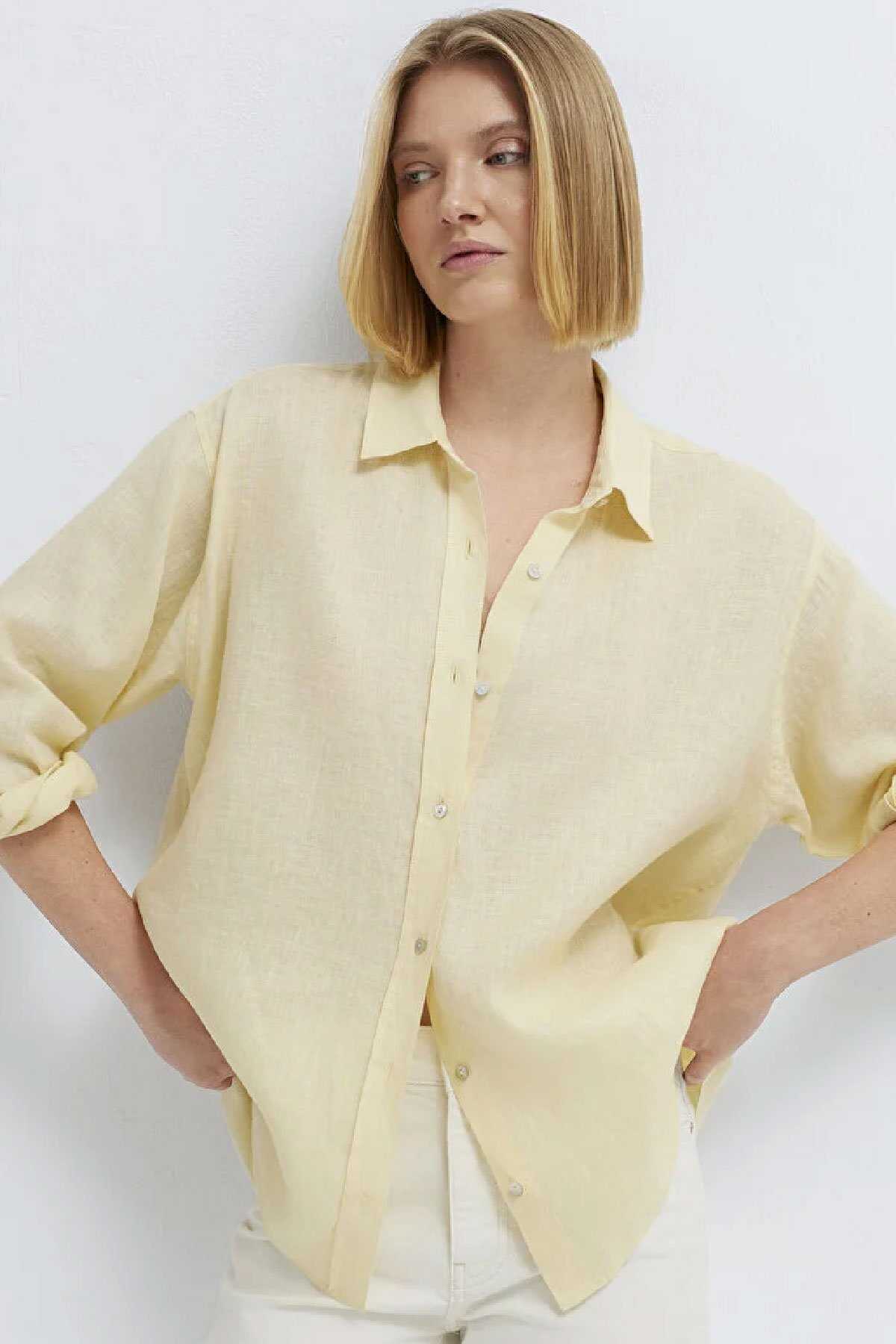 Mavi nin kadın koleksiyonundan Sarı Keten Gömlek.Doğal bir elyaf olan keten kumaşlar diğer kumaş türlerine göre çok daha dayanıklıdır. Nemi hapseden yapısıyla ve iri gözenekli dokumasıyla vücuda hava aldırır.-Yansıtıcı özelliği sayesinde de güneşte renk solması gibi şikayetleri minimuma indiren ketenlerle yaz mevsiminde hem serin hem de cool kalın.-Loose Fit Bol Rahat Kesim-%100 Keten-Manken Ölçüleri-Jean: Bel: 26 Boy: 34 Üst: S-Boy: 179 cm Bel: 60 cm Göğüs: 85 cm Kalça: 90 cm-Ürün Kodu: 1210747-84571