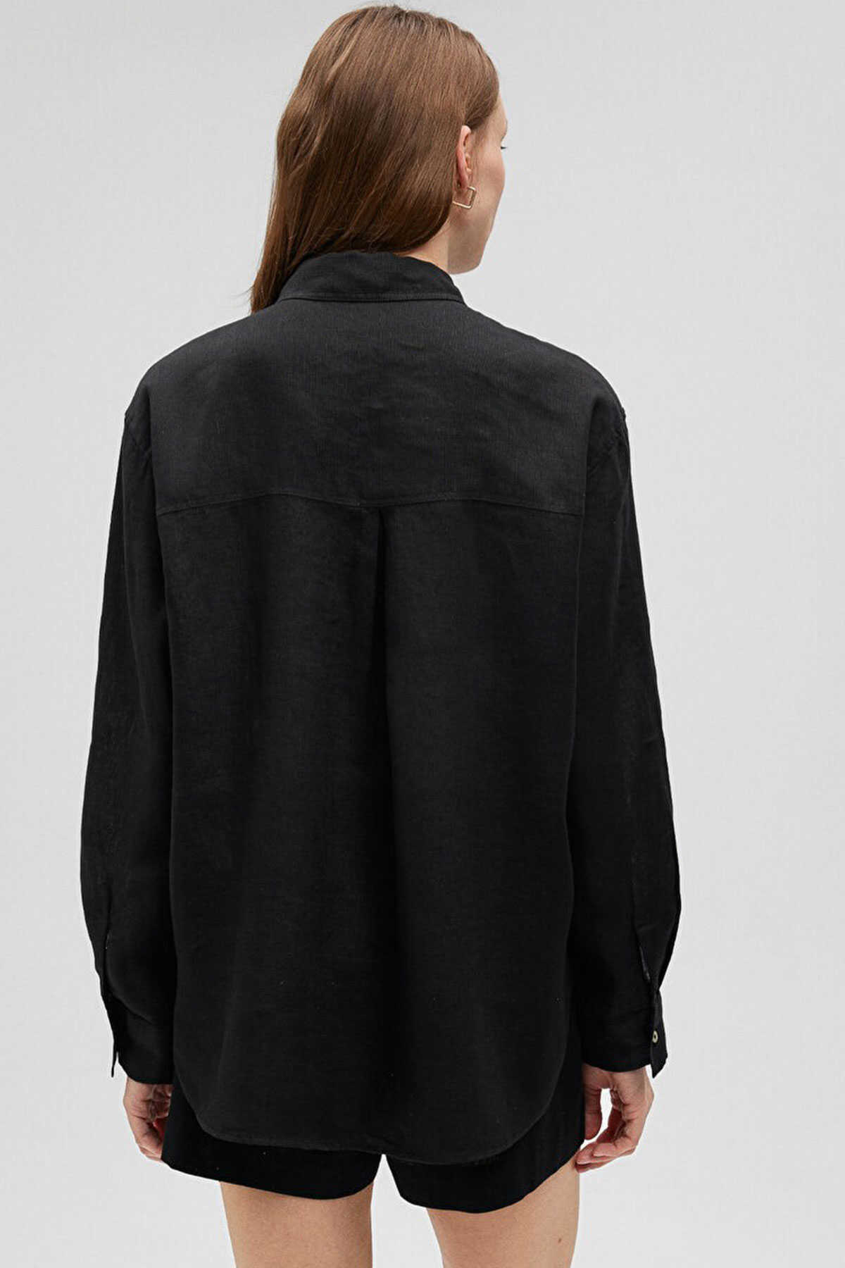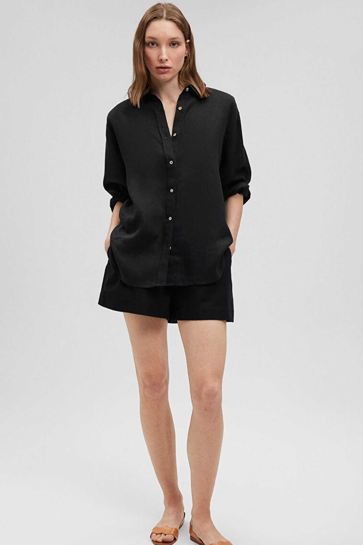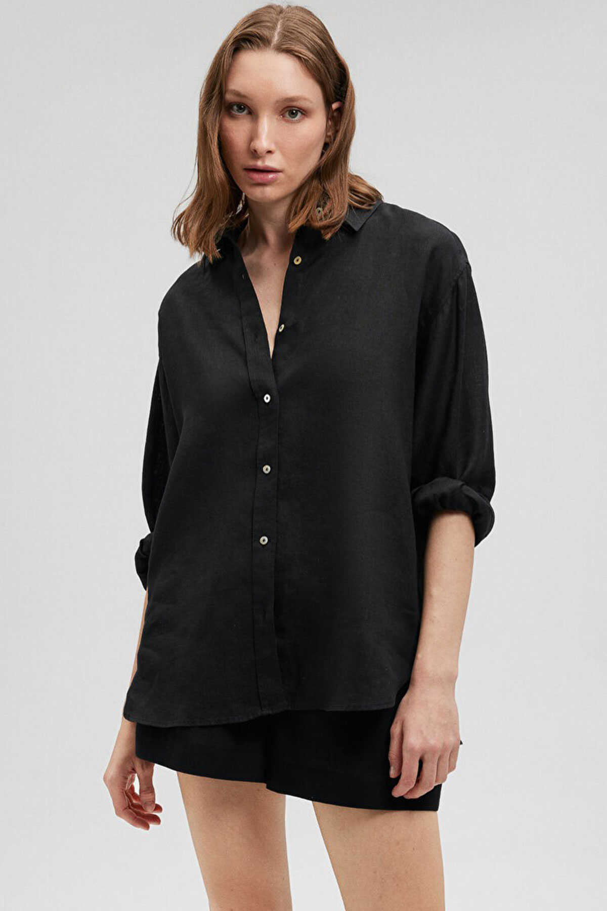 Mavi nin kadın koleksiyonundan Siyah Keten Gömlek. Doğal bir elyaf olan keten kumaşlar diğer kumaş türlerine göre çok daha dayanıklıdır. Nemi hapseden yapısıyla ve iri gözenekli dokumasıyla vücuda hava aldırır. Yansıtıcı özelliği sayesinde de güneşte renk solması gibi şikayetleri minimuma indiren ketenlerle yaz mevsiminde hem serin hem de cool kalın.-Ürün Kodu: 1210747-900-Kumaş Bilgileri-%100 Keten-Manken Ölçüleri-Boy: 176 cm Bel: 60 cm Göğüs: 83 cm Kalça: 90 cm