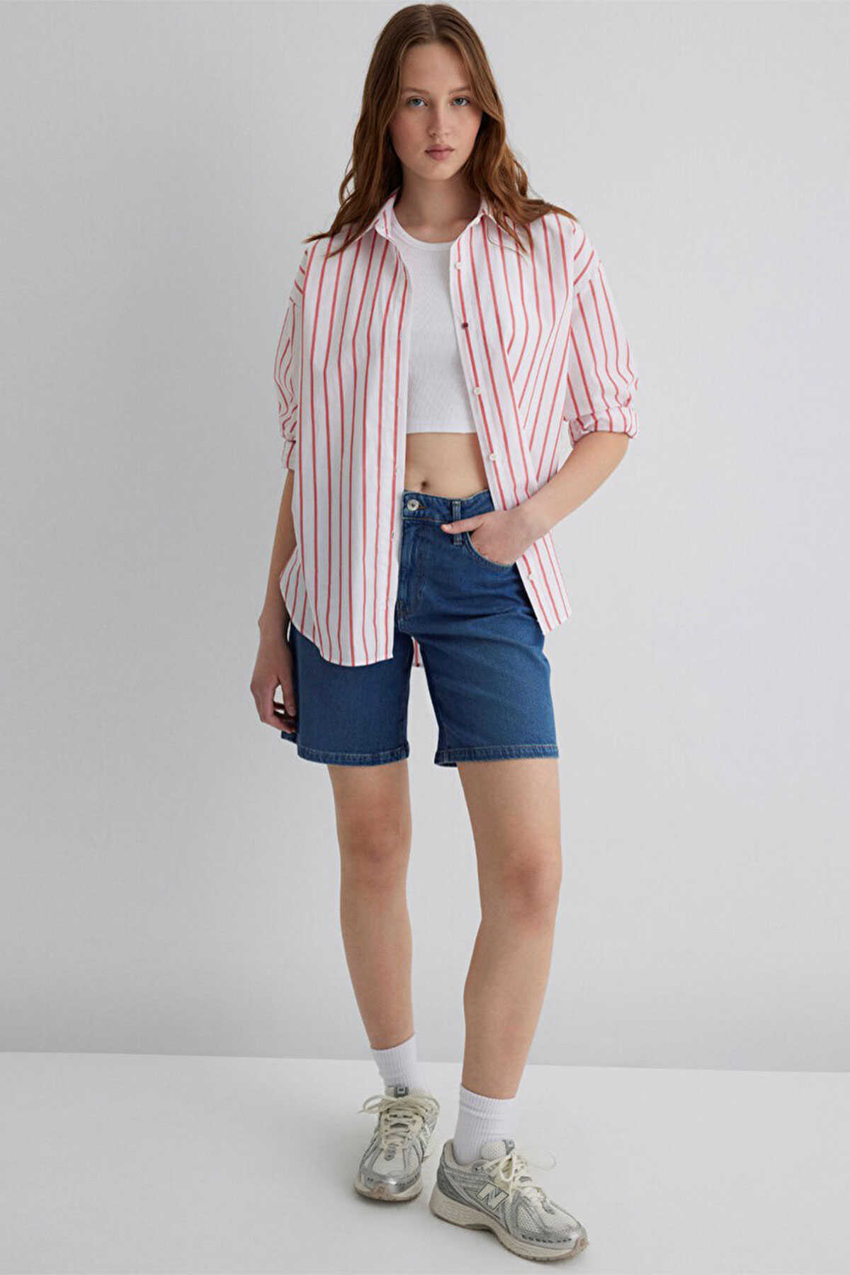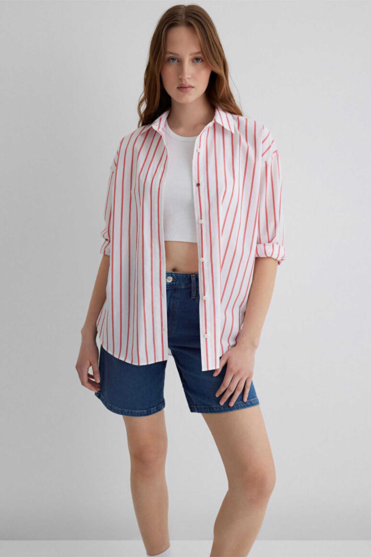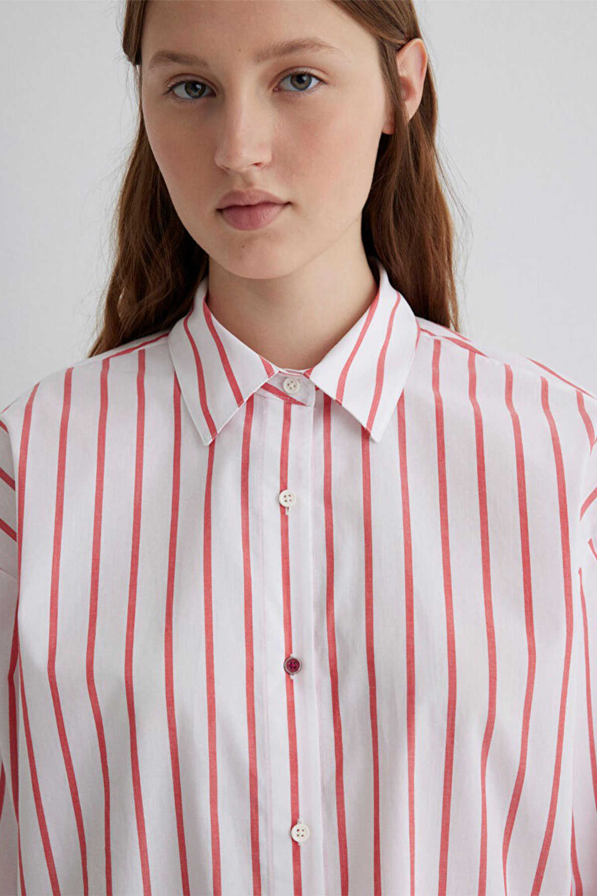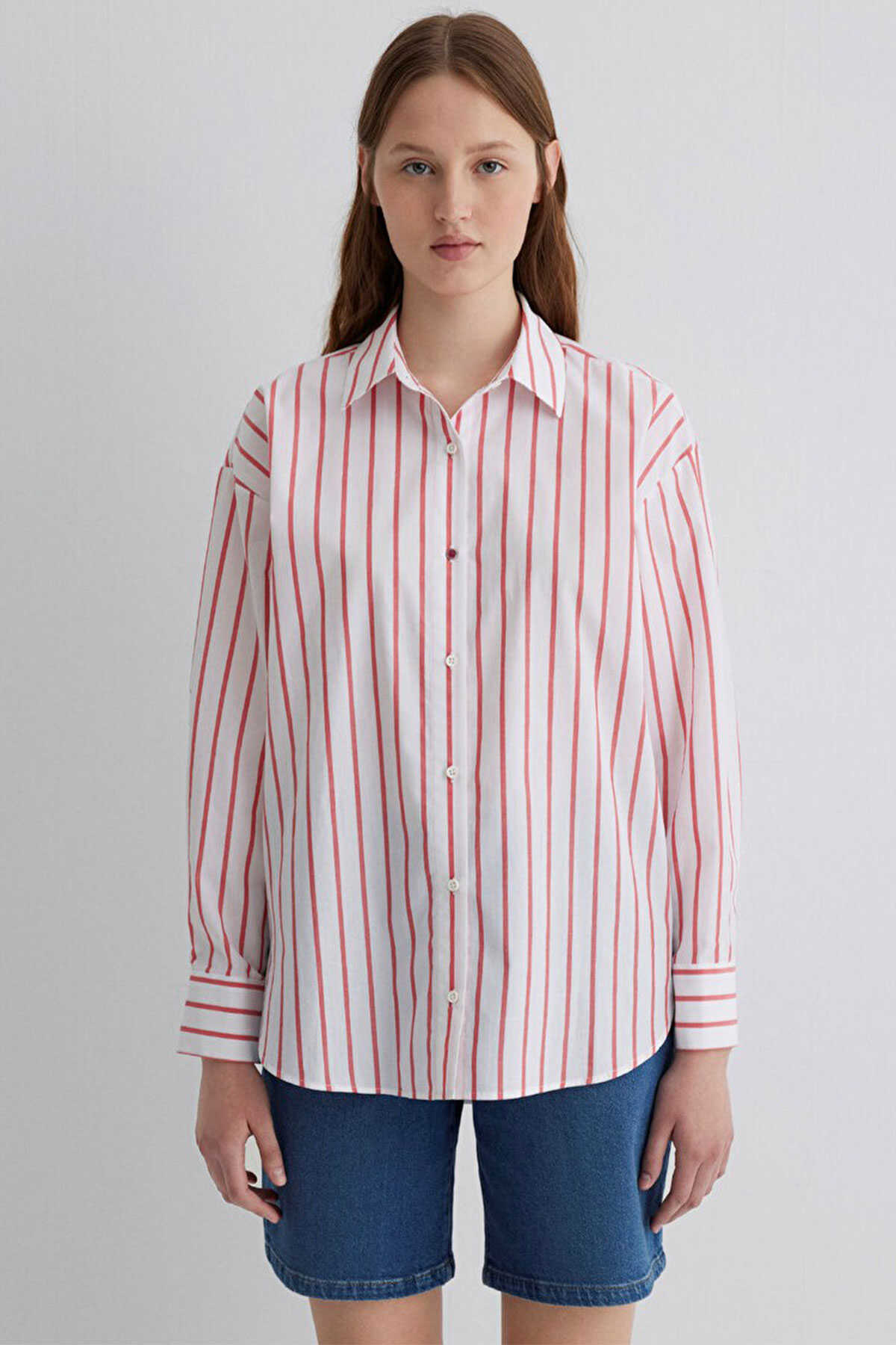 Mavi nin kadın koleksiyonundan Kırmızı Çizgili Gömlek.-Ürün Kodu: 1211116-84494-Kumaş Bilgileri-%100 Pamuk-Manken Ölçüleri-Jean: Bel: 26 Üst: S-Boy: 178 cm Bel: 60.5 cm Göğüs: 77 cm Kalça: 89 cm-Menşei: Türkiye