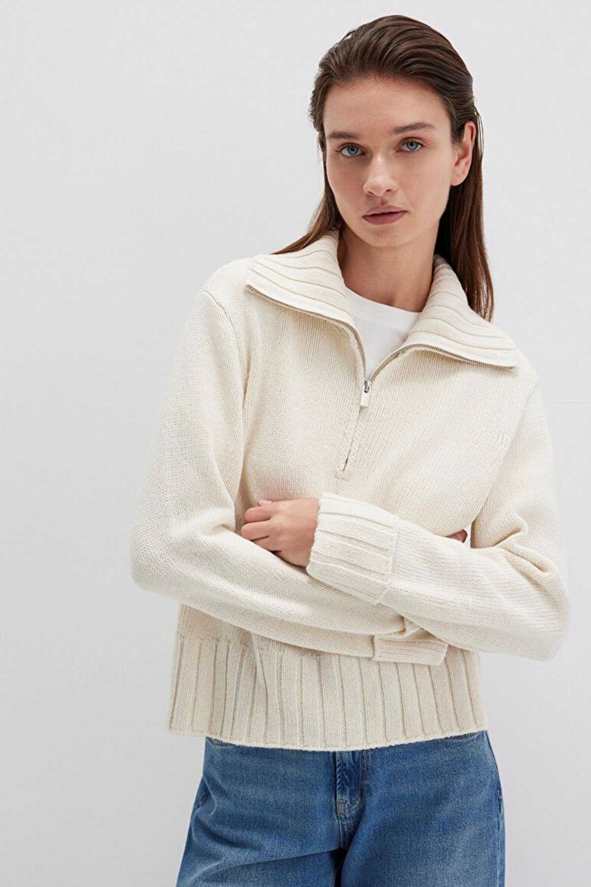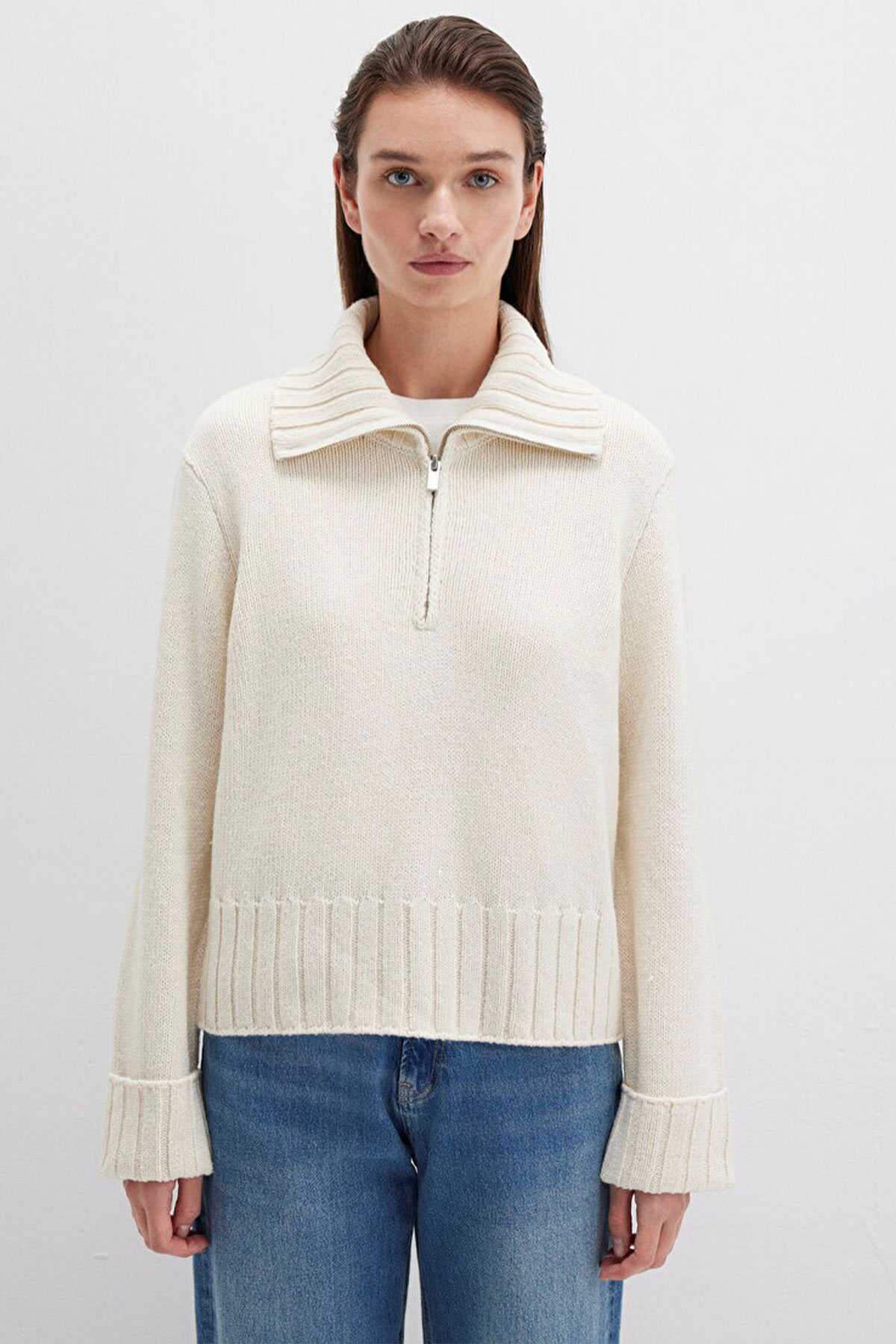 Mavi nin kadın koleksiyonundan Yarı Fermuarlı Ekru Kazak. - Regular Fit Normal Kesim - Ürün Kodu: 1710703-82127 - Kumaş Bilgileri - %75 Akrilik - %15 Viskoz - %5 Polyester - %3 Pamuk - %2 Yün - Manken Ölçüleri - Jean: Bel: 26 Boy: 32 Üst: S - Boy: 176 cm Bel: 61 cm Göğüs: 80.5 cm Kalça: 90.5 cm - Menşei: Türkiye