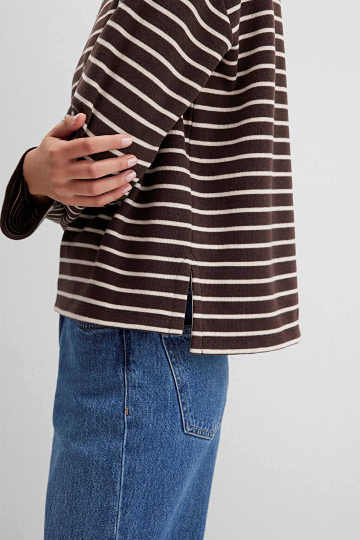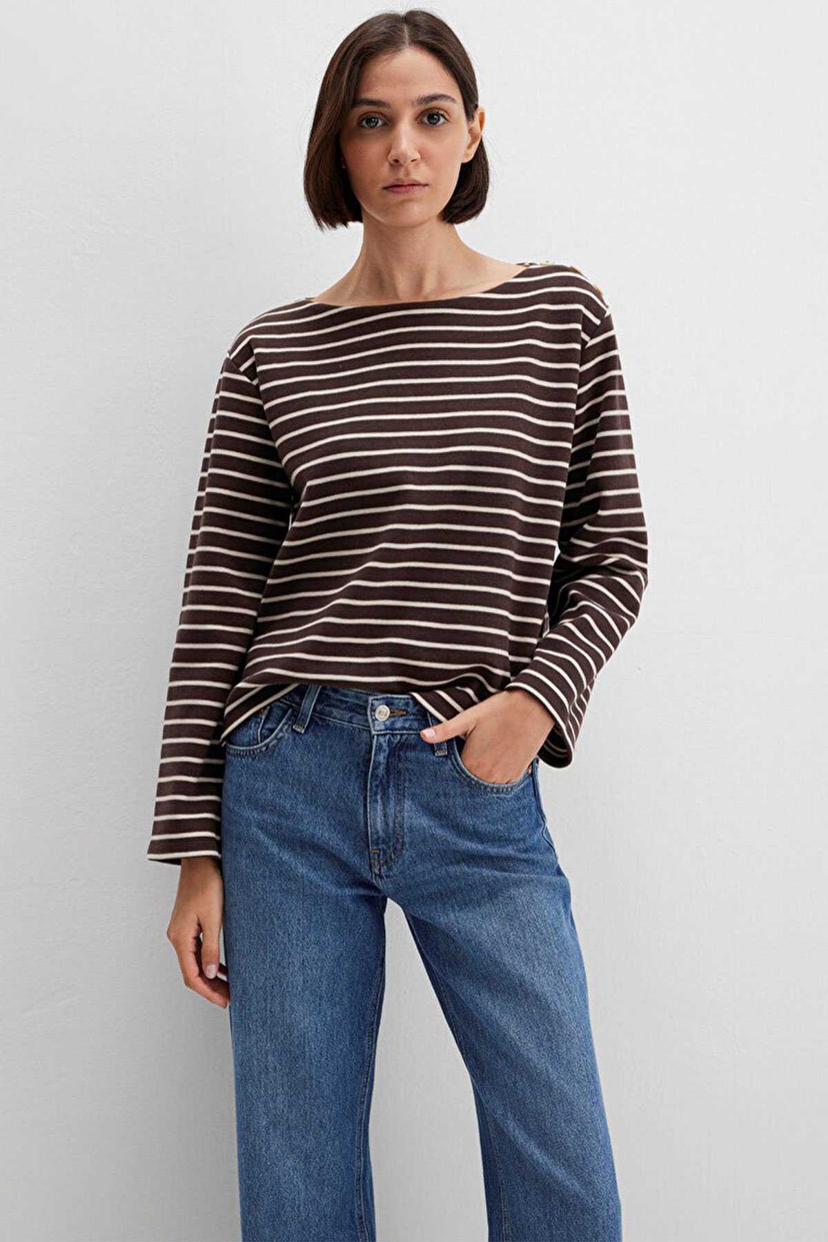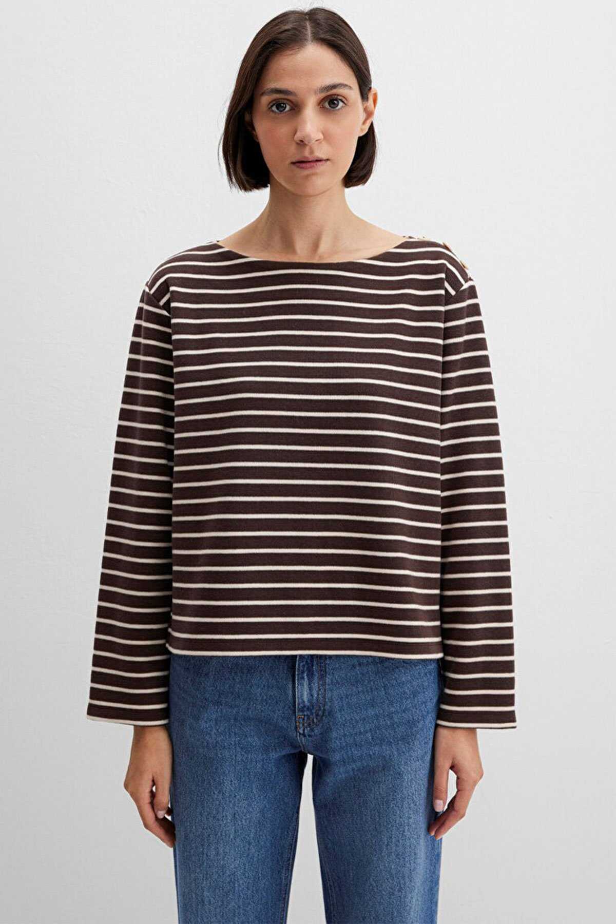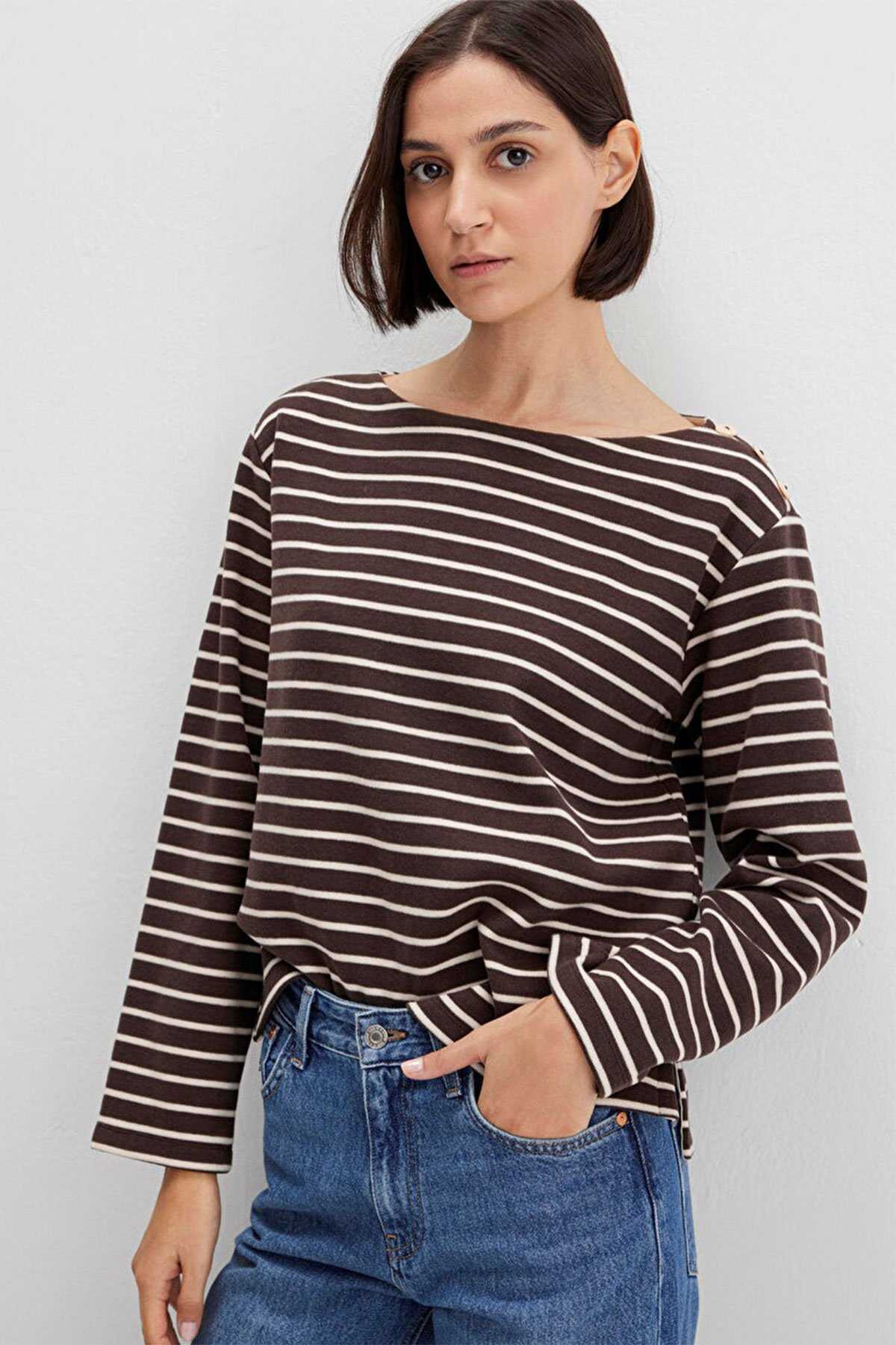 Mavinin kadın koleksiyonundan Çizgili Kahverengi Tişört.-Ürün Kodu: 1613597-91190-Kumaş Bilgileri-%60 Pamuk-%40 Polyester-Menşei: Türkiye-