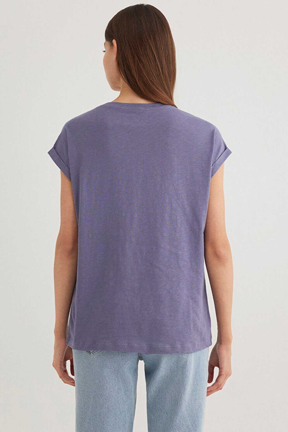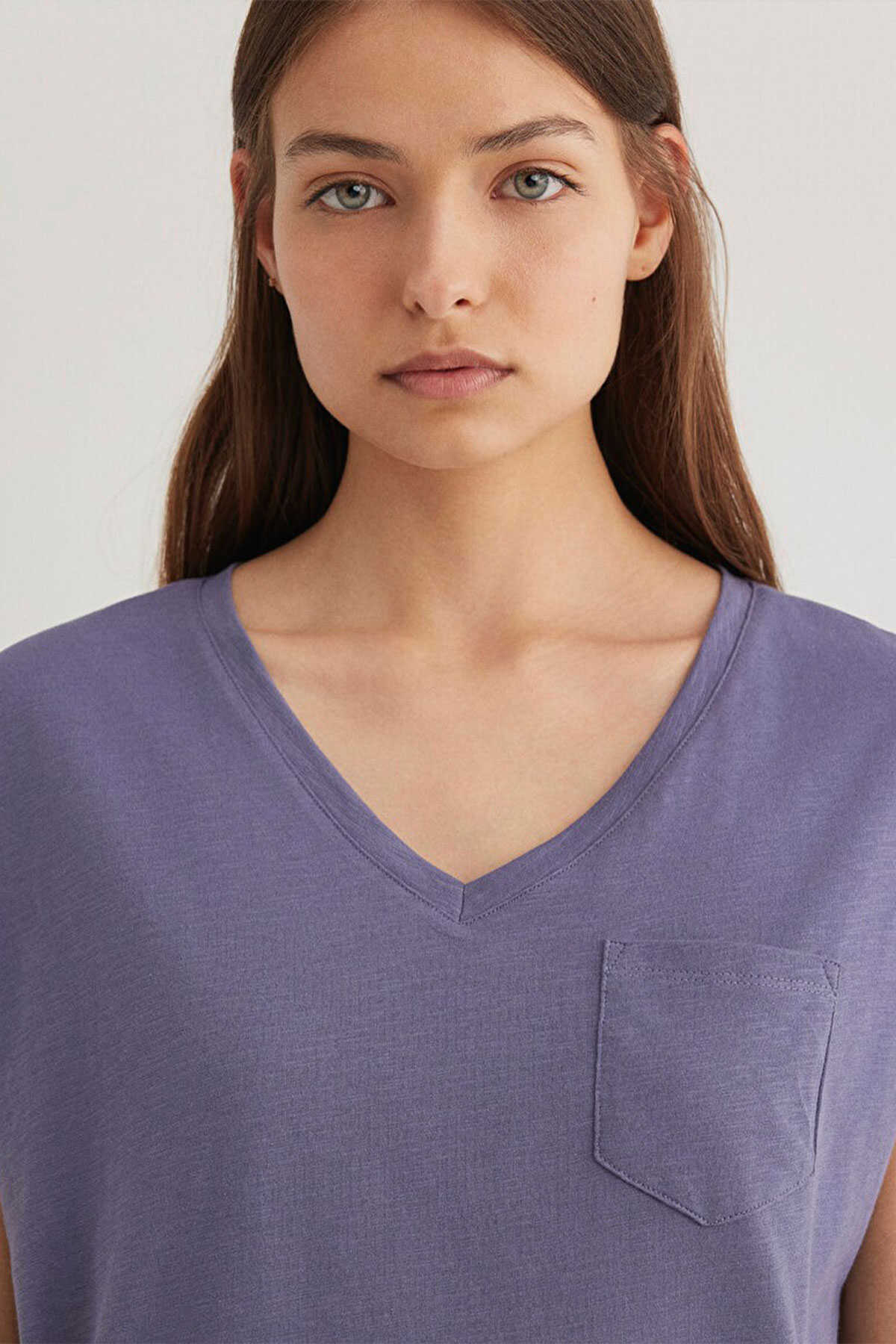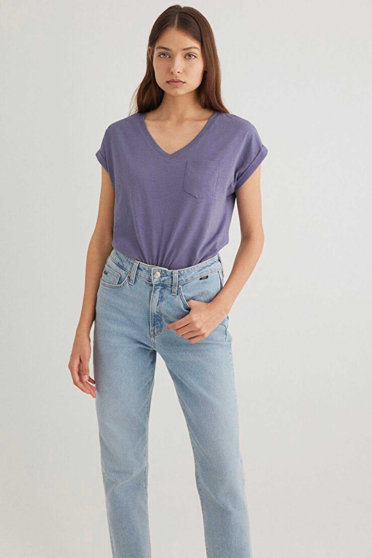 Mavi nin kadın koleksiyonundan V Yaka Mor Tişört-Loose Fit Bol Rahat Kesim-Ürün Kodu: 1600961-70608-Kumaş Bilgileri-%100 Pamuk