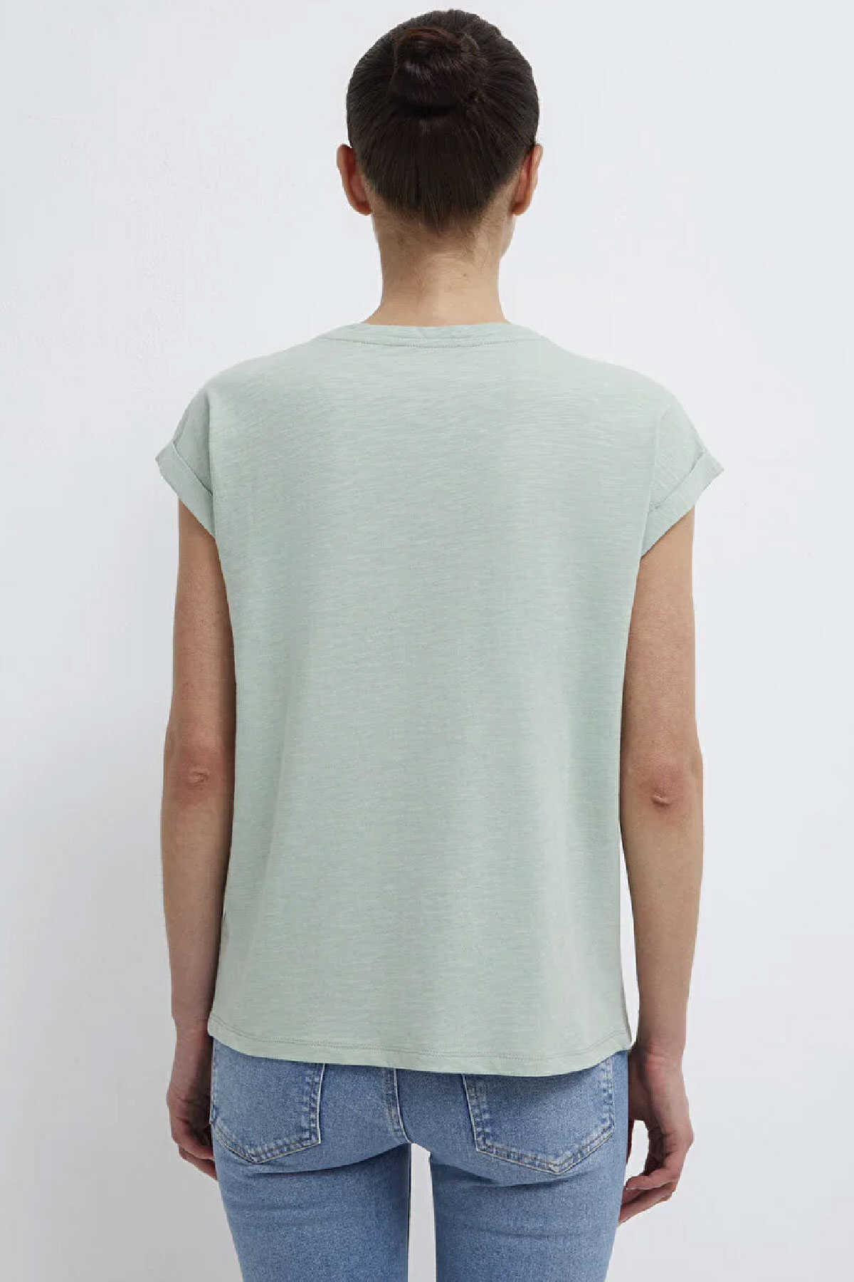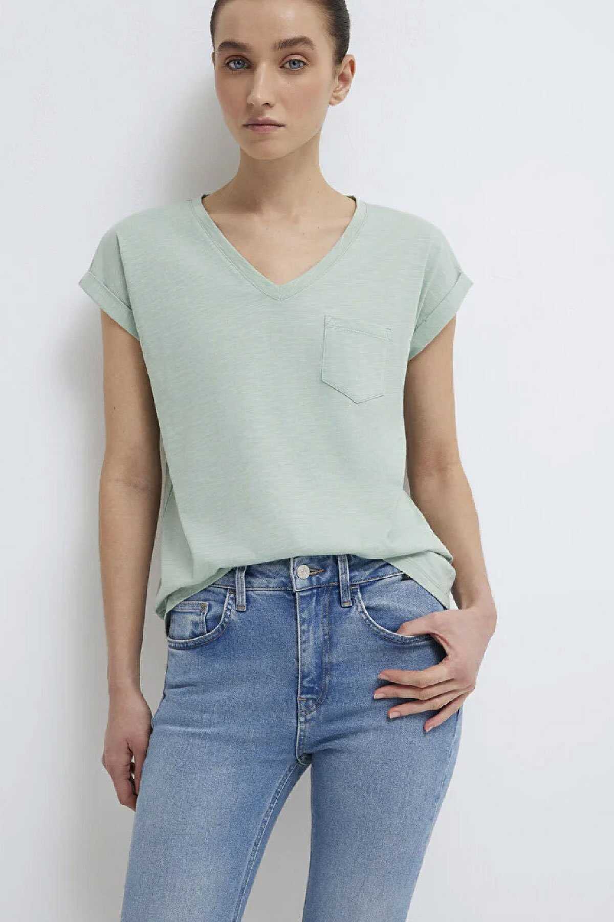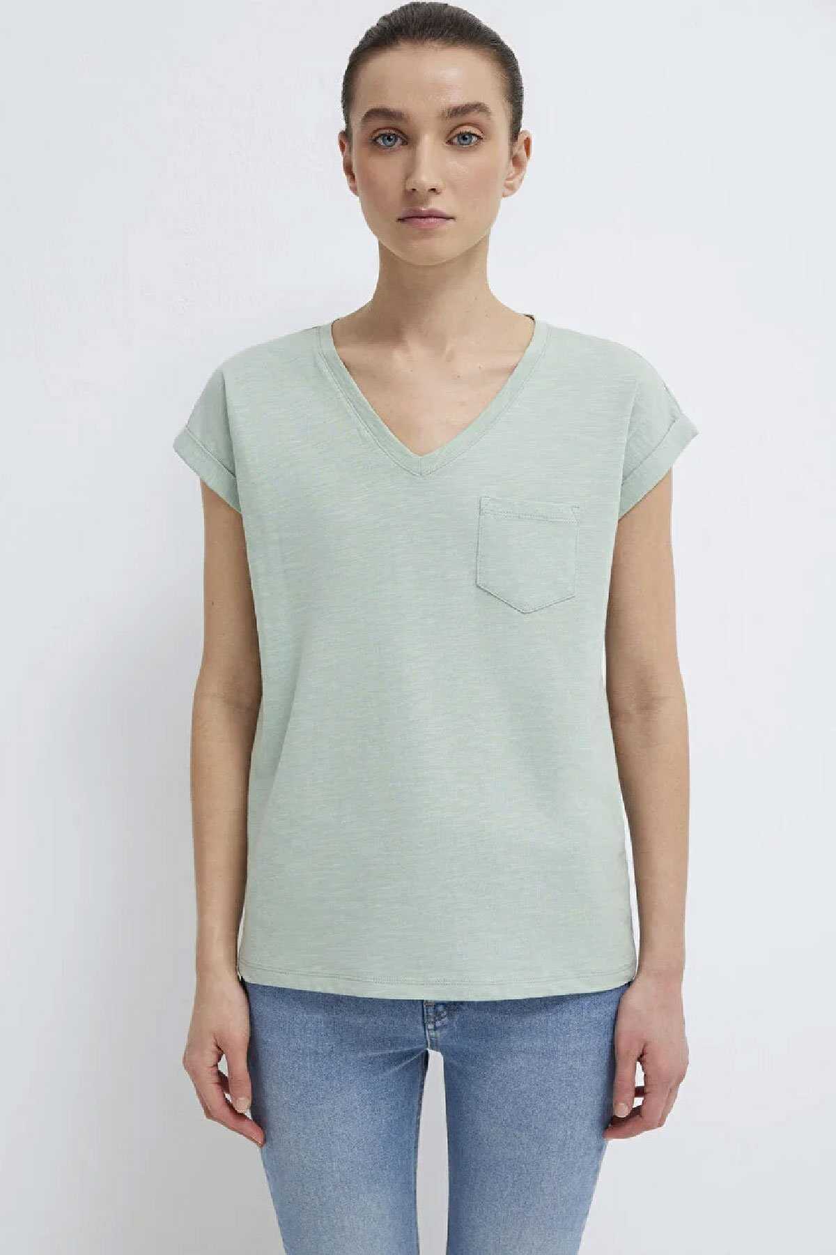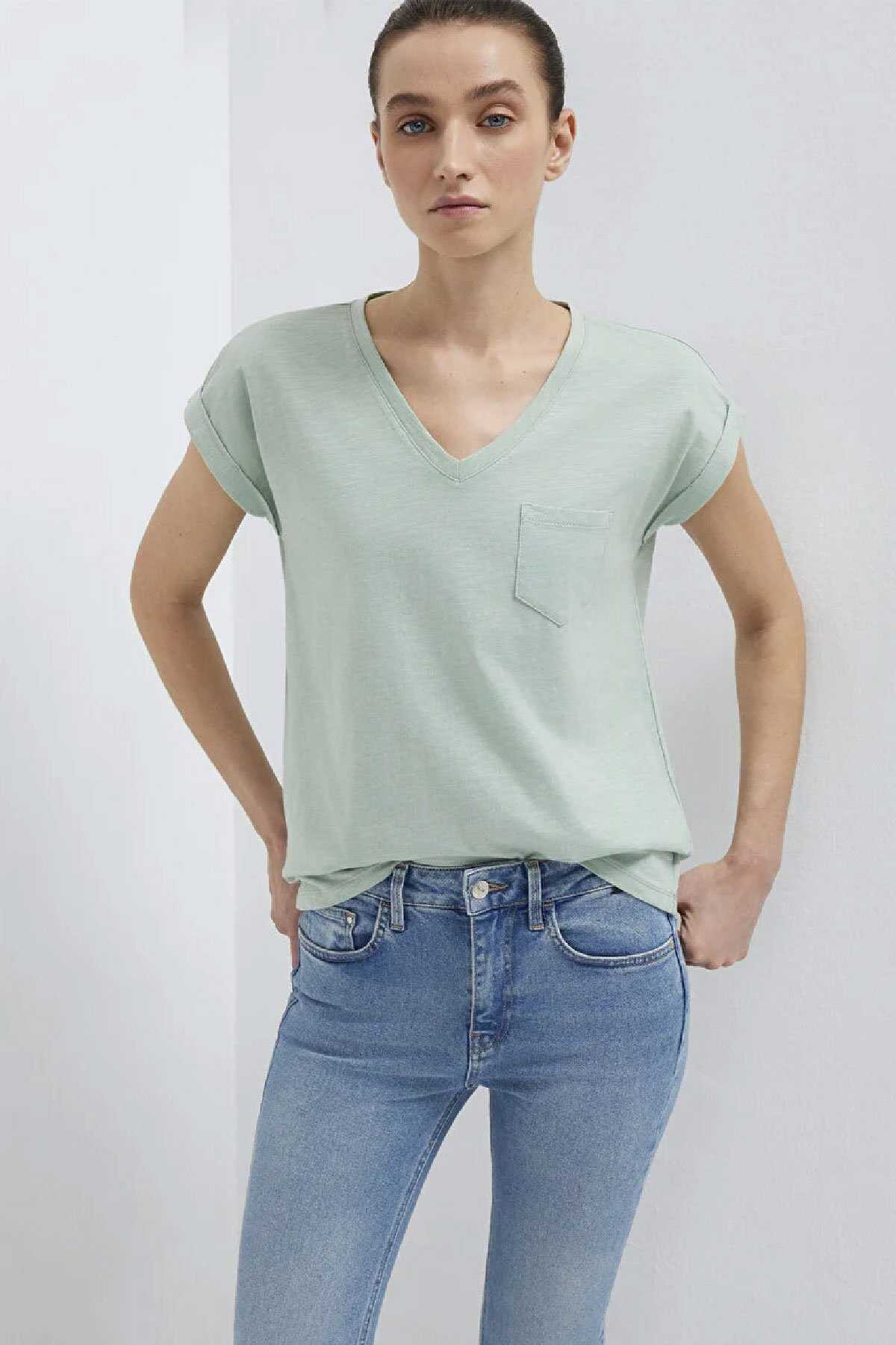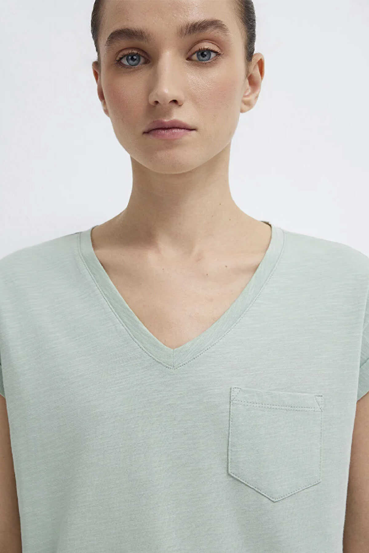 Mavi nin kadın koleksiyonundan V Yaka Yeşil Basic Tişört.-Loose Fit Bol Rahat Kesim-Ürün Kodu: 1600961-71780-Kumaş Bilgileri-%100 Pamuk-Manken Ölçüleri-Jean: Bel: 26 Boy: 32 Üst: S-Boy: 177 cm Bel: 62 cm Göğüs: 84 cm Kalça: 92 cm-Menşei: Gürcistan