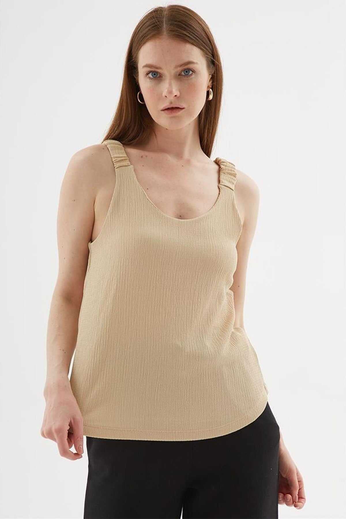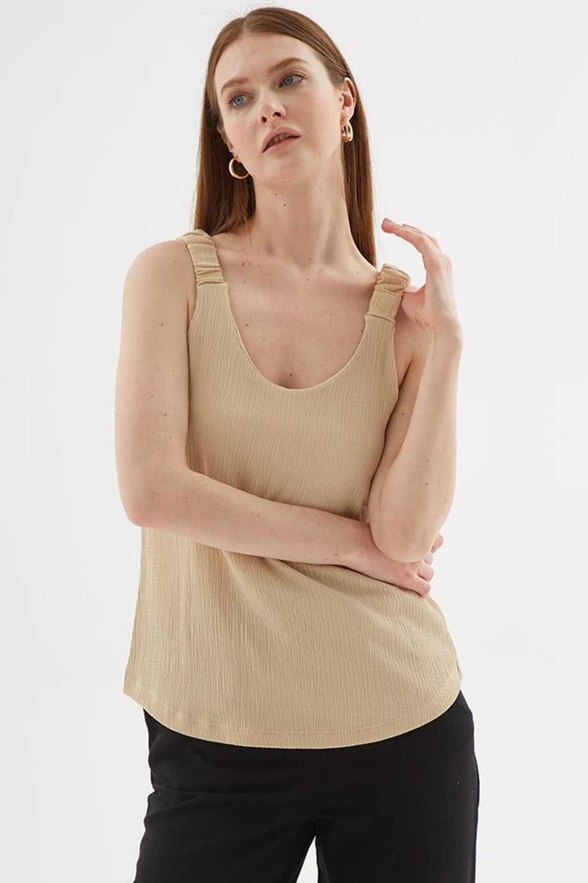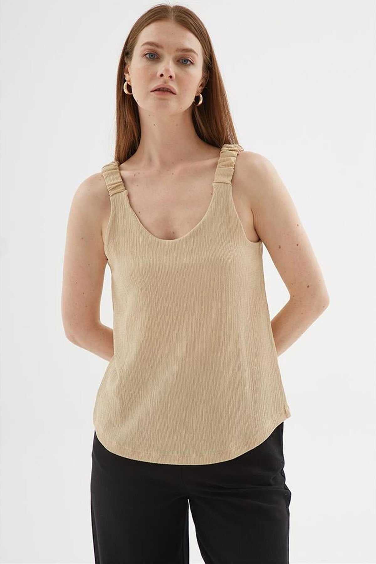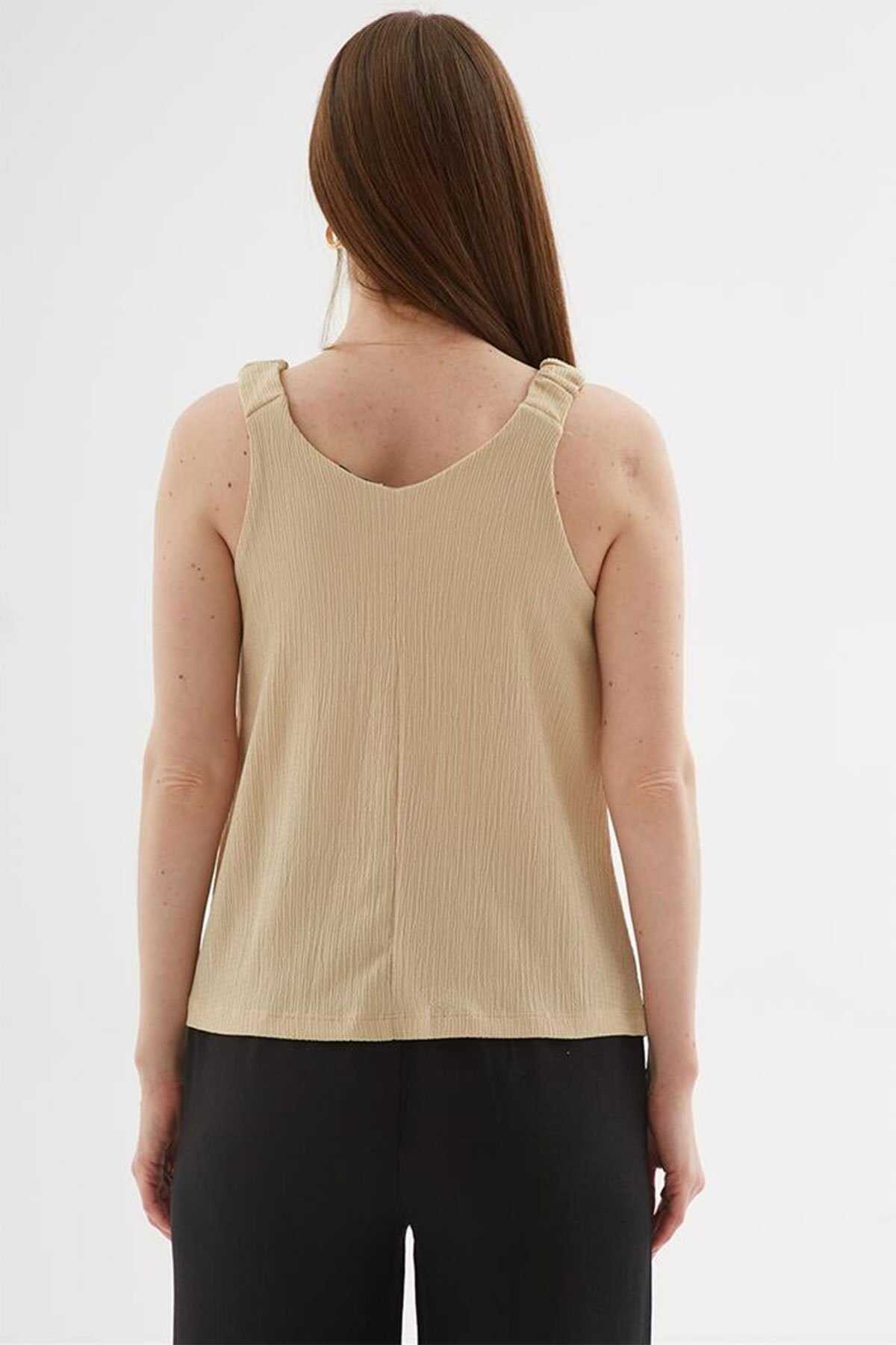 V Yaka Bluz -Model Ölçüleri: Boy:1.70 Göğüs:90 Bel:68 Basen:90-Mankenin üzerindeki ürün S2836 bedendir.-Cinsiyet: Kadın-Kalıp: Rahat-Yaka Tipi: V Yaka-Kol Tipi: Kolsuz-Kumaş: %98 Polyester %2 Elastan-Ürün Tipi: Örme-Ürün Kodu: 25Y0513K1-Menşei: Türkiye