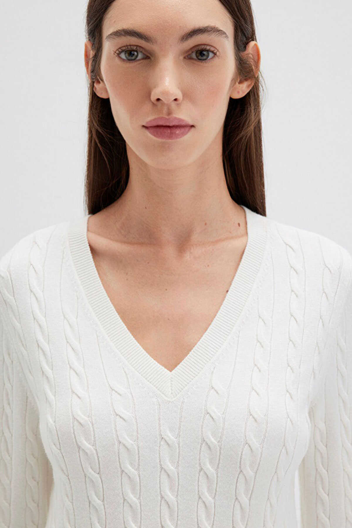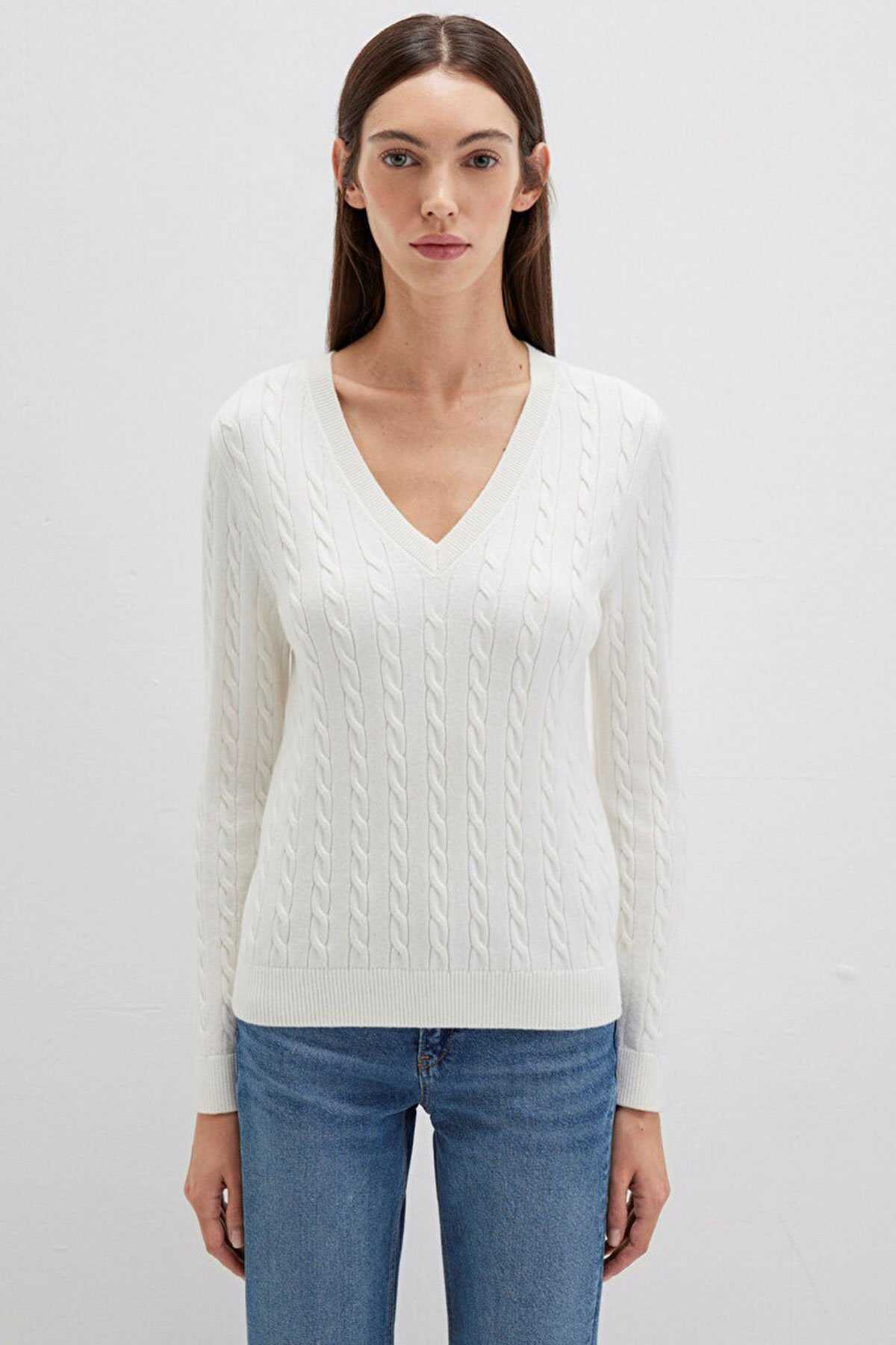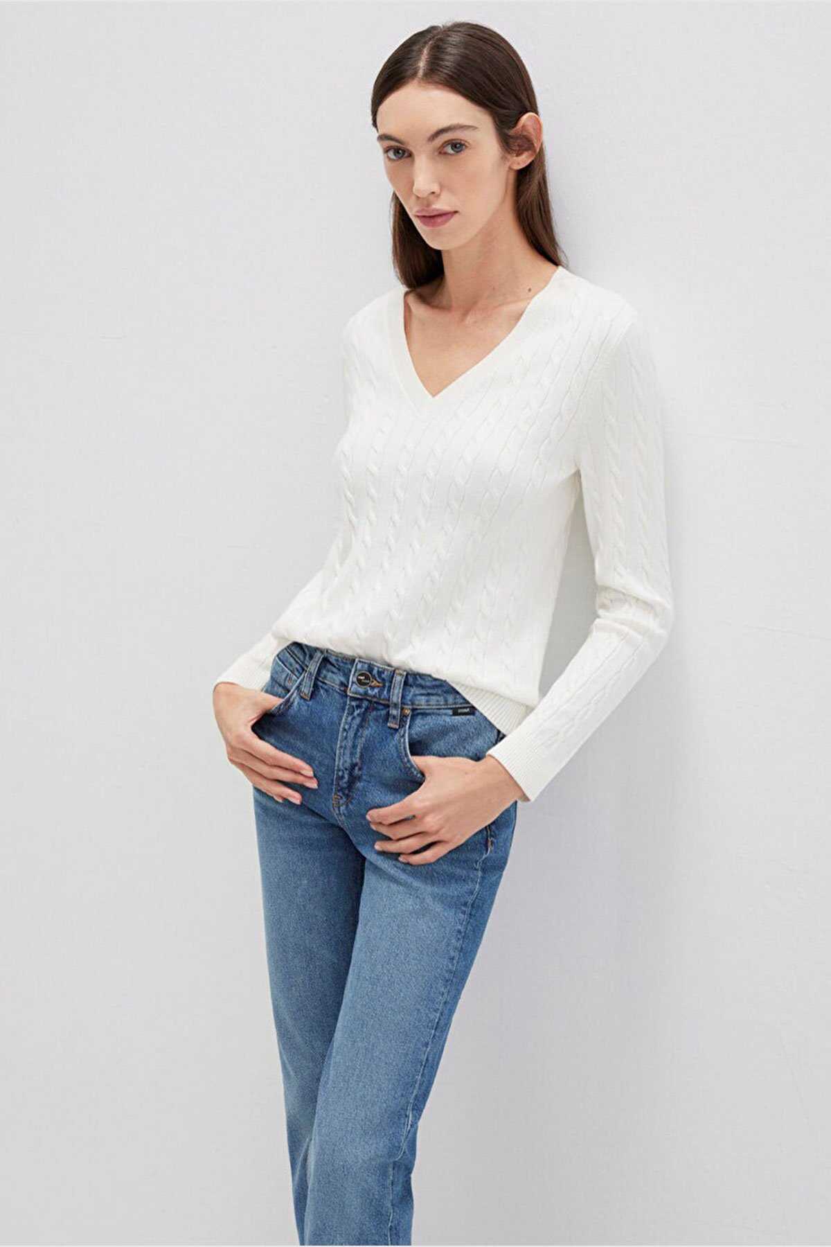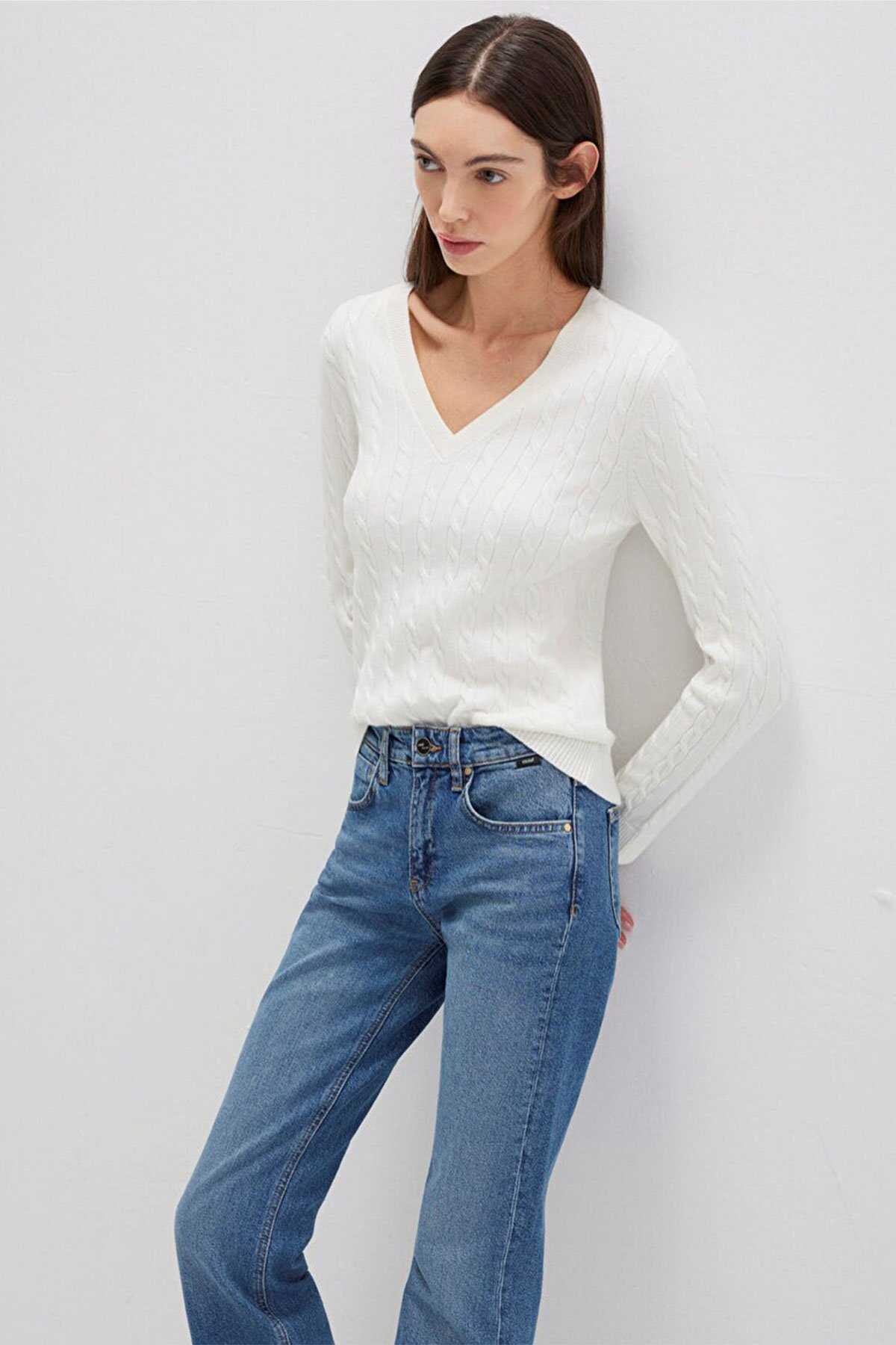 Mavi nin kadın koleksiyonundan V Yaka Beyaz Kazak - Slim Fit Dar Kesim - Ürün Kodu: 1710340-70057 - Kumaş Bilgileri - %49 Viskoz - %30 Polyester - %21 Polyamit - Manken Ölçüleri - Jean: Bel: 26 Boy: 32 Üst: S - Boy: 177 cm Bel: 58 cm Göğüs: 83 cm Kalça: 89 cm - Menşei: Türkiye
